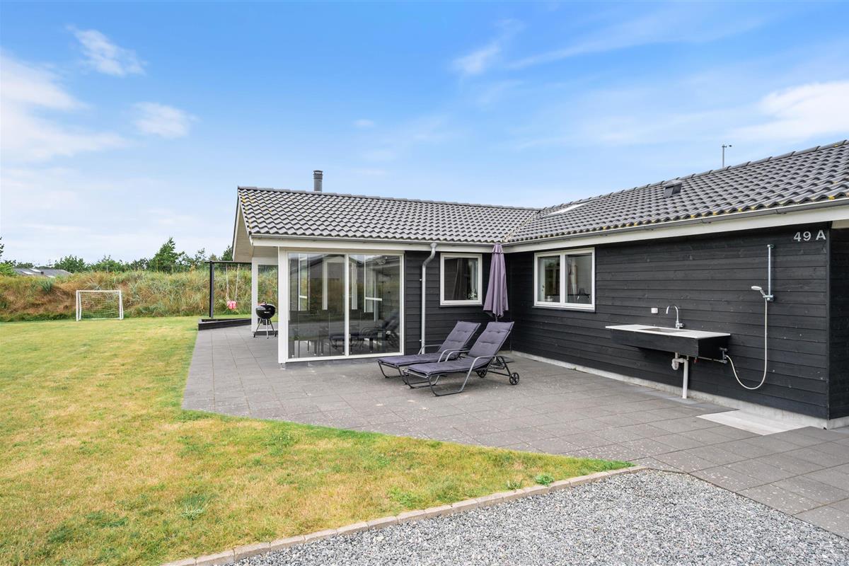 You'll find this modern holiday home at Sønder-Vasevej 49A - centrally located yet peaceful with a fantastic position.