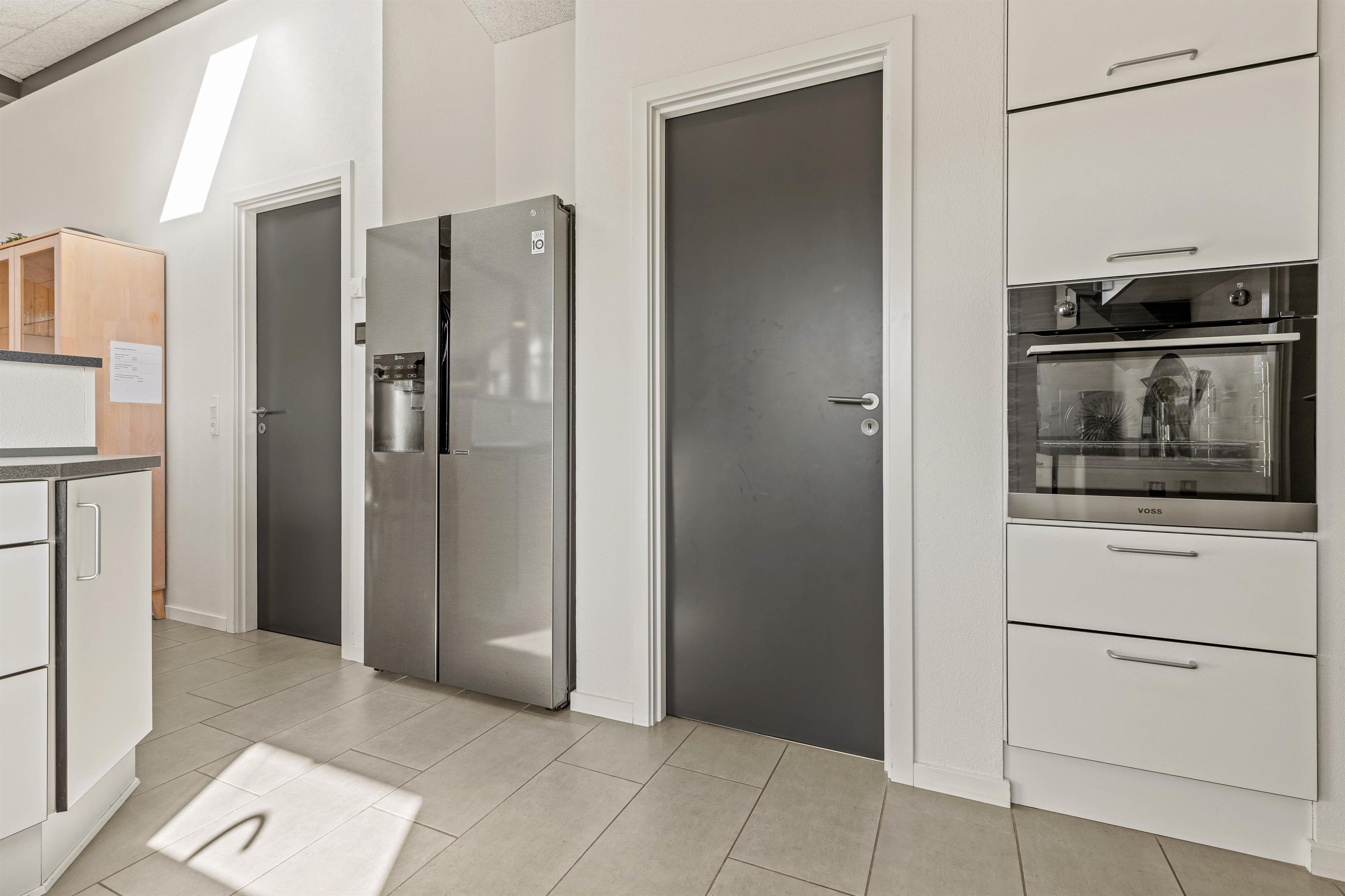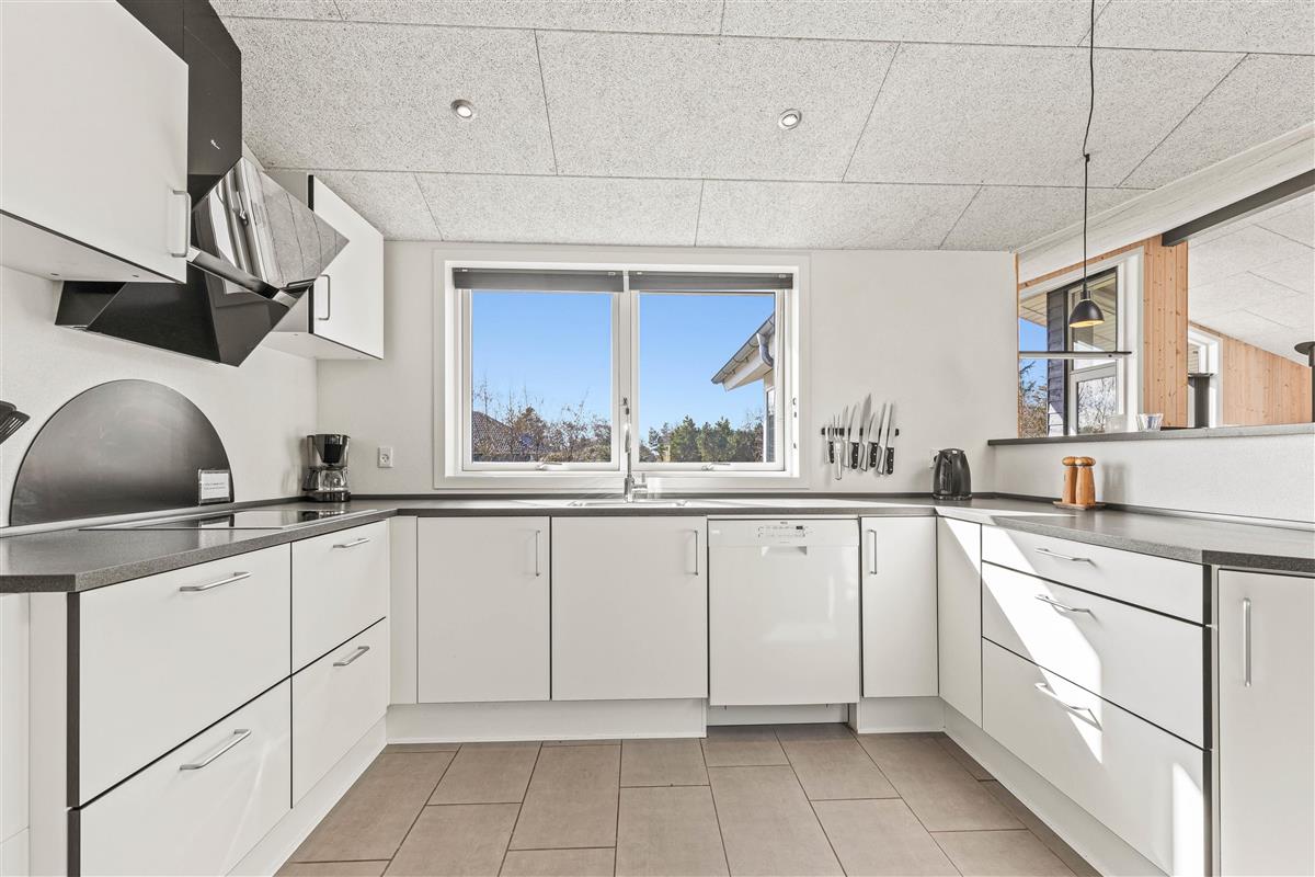 The open-plan, modern kitchen integrated into the living space offers cooking enthusiasts all they need to treat fellow guests to culinary delights. You're sure to find willing helpers to prepare delicious meals featuring regional West Coast specialities, to be enjoyed together at the large dining table. The outdoor kitchen, perfect for al fresco cooking on warm summer days, and the American-style fridge with ice dispenser for drinks are particularly popular features.