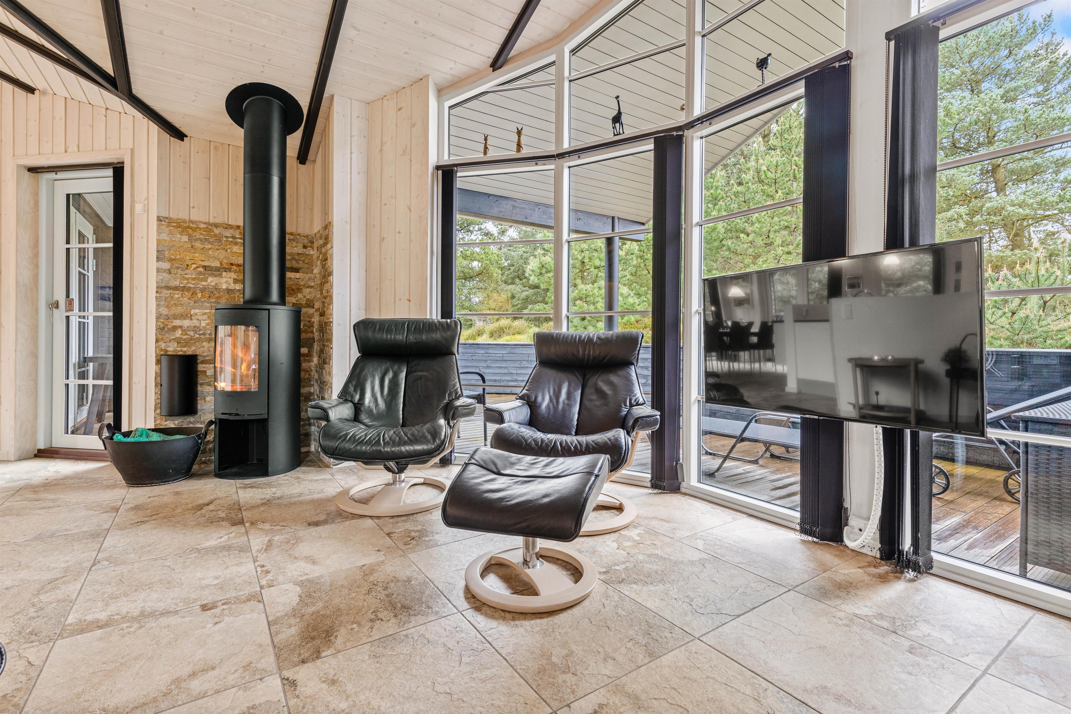 This holiday home, built in 2019, is situated in the heart of the holiday resort of Blavand. The holiday home features a whirlpool and sauna, alongside modern and stylish furnishings. Outside, the terrace wraps around half of the holiday home, with extensive grounds at your disposal.