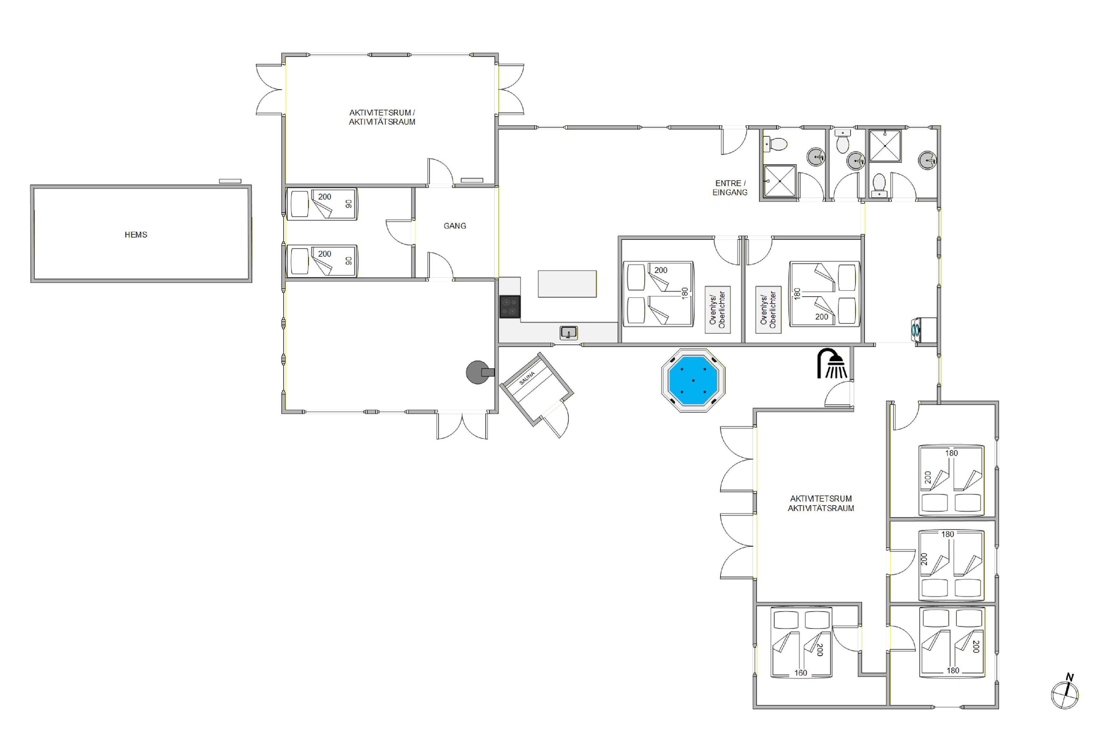 The holiday home has seven beautiful bedrooms for rest and relaxation. There are also two bathrooms and an additional guest toilet to share in the mornings. All rooms feature underfloor heating.