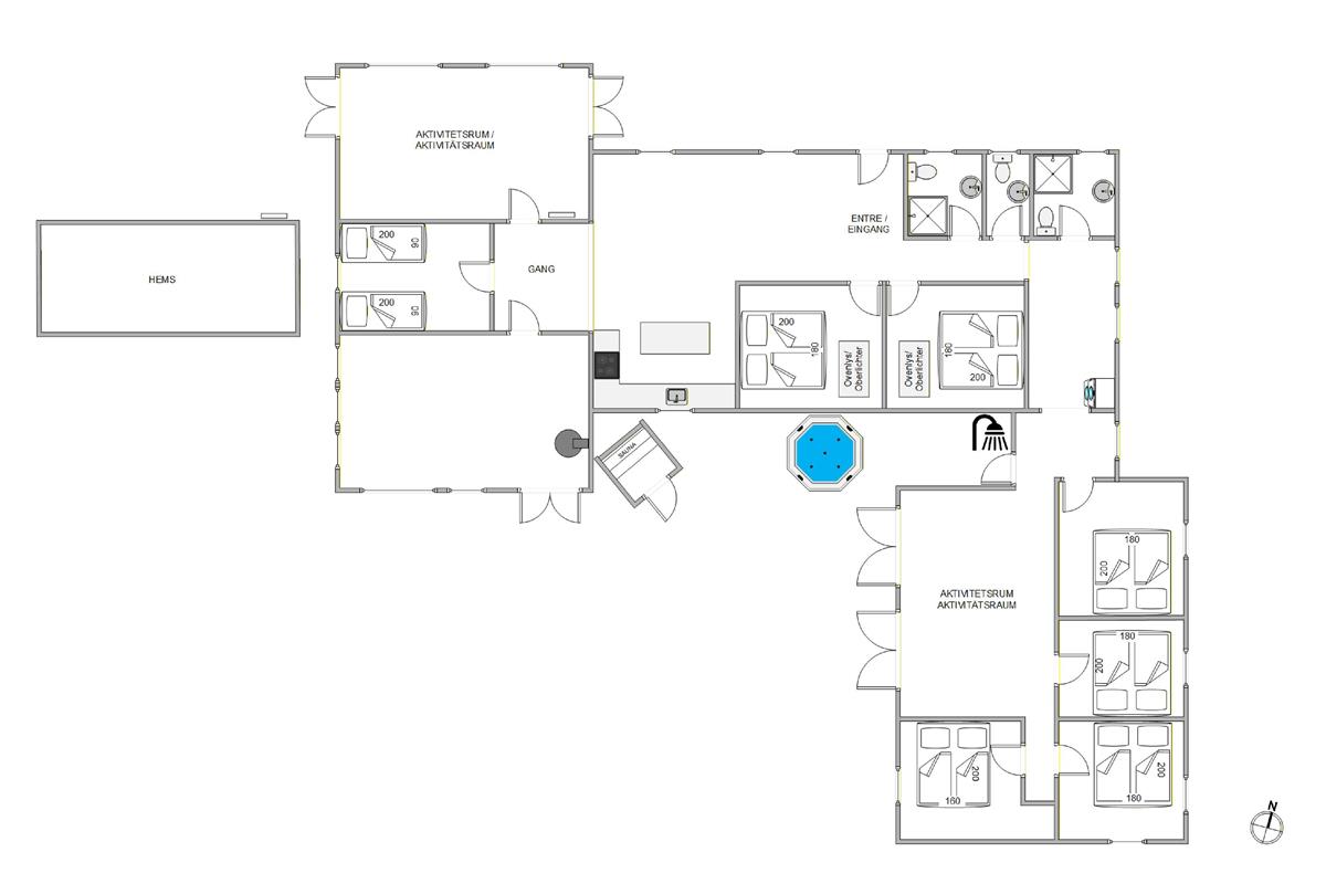 The free-standing hot tub and barrel sauna are particular highlights. Relaxing in the bubbling warm water under Blåvand's uniquely beautiful starry sky will surely be an unforgettable holiday experience. If you need to cool off, an outdoor shower is available from 1st April to 31st October.