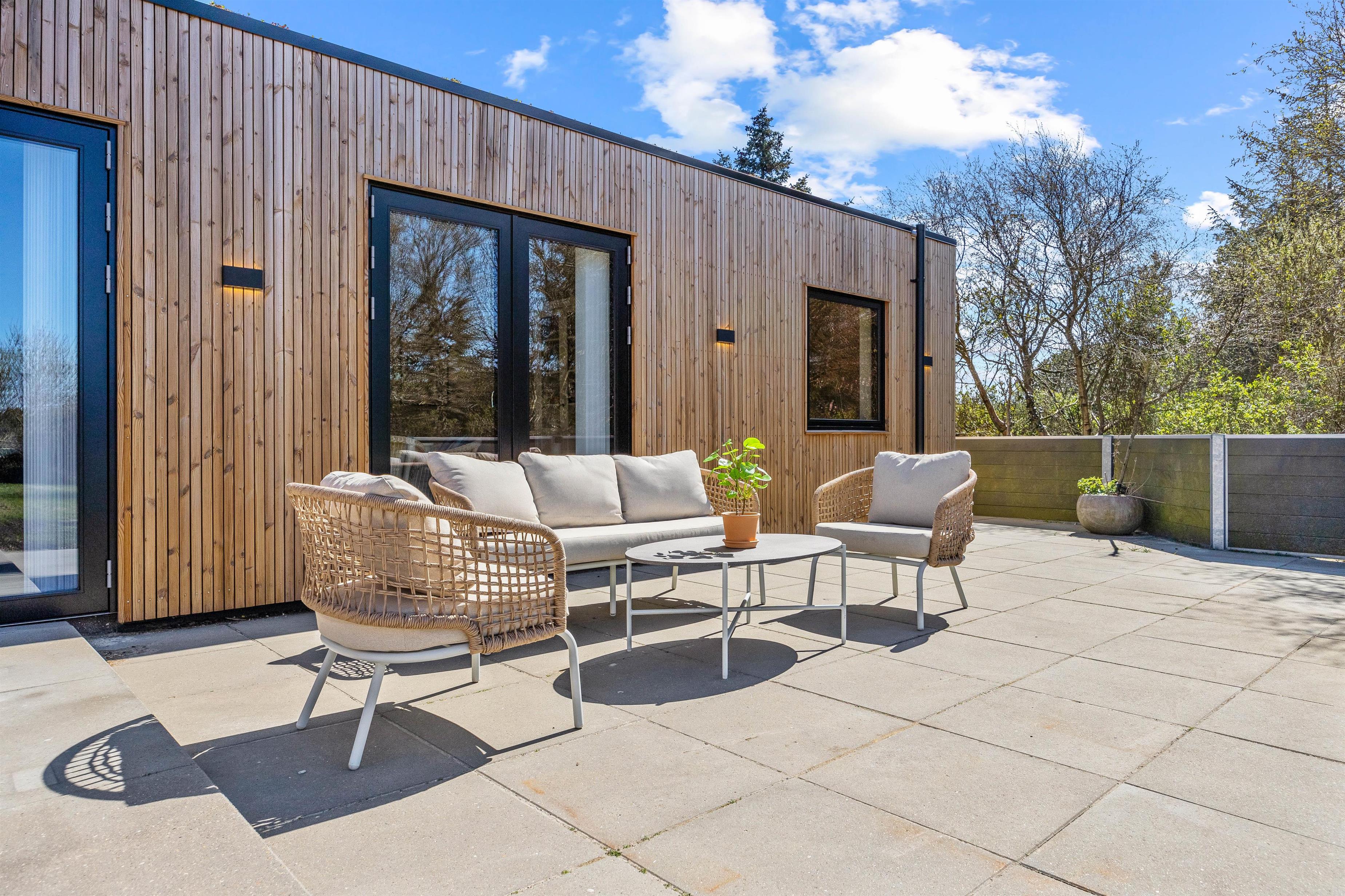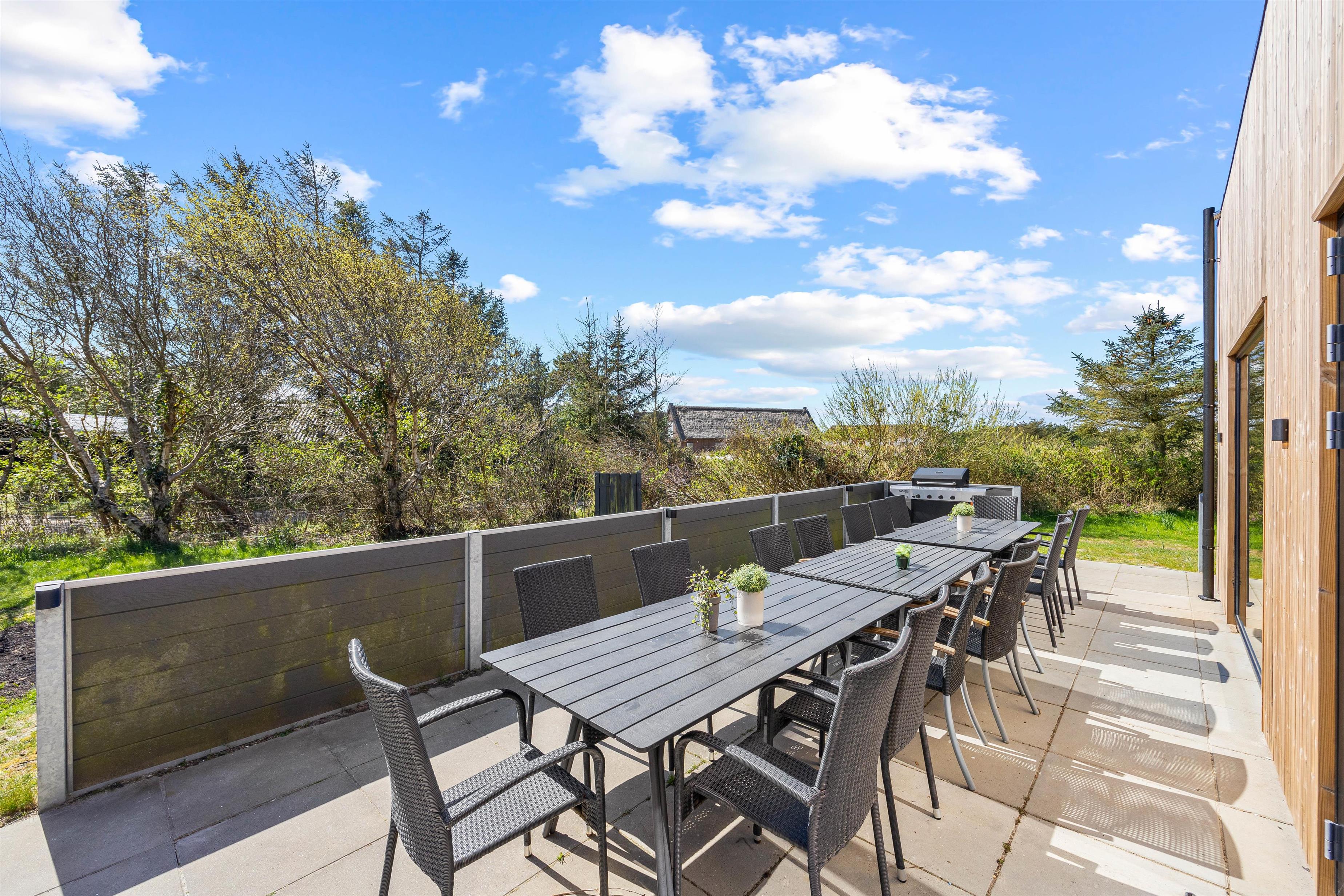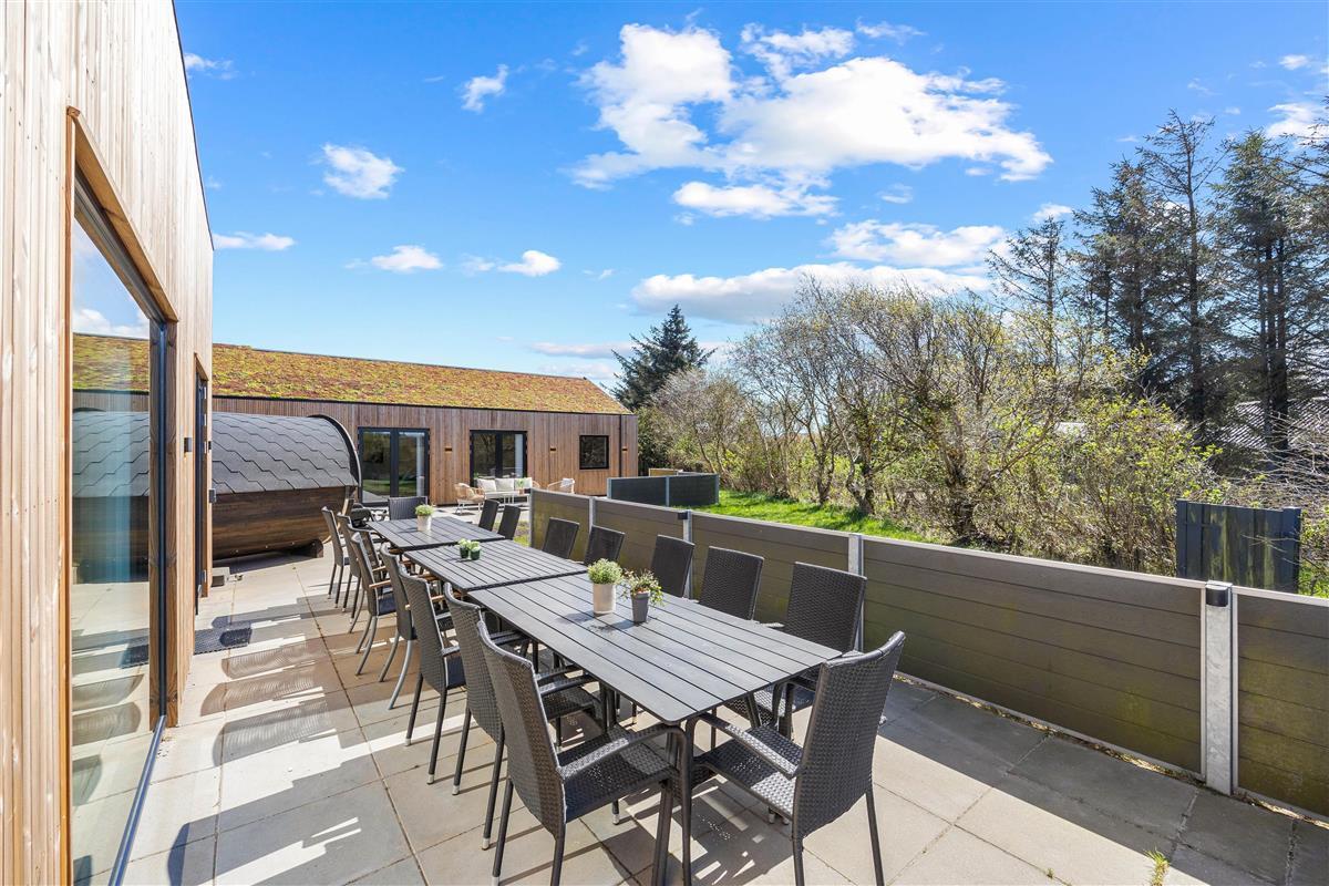 A large terrace wraps around this beautiful holiday home, ensuring you'll always find a sunny spot to recharge. Sun loungers and garden furniture are provided for barbecue gatherings or coffee breaks with delicious Danish pastries.
