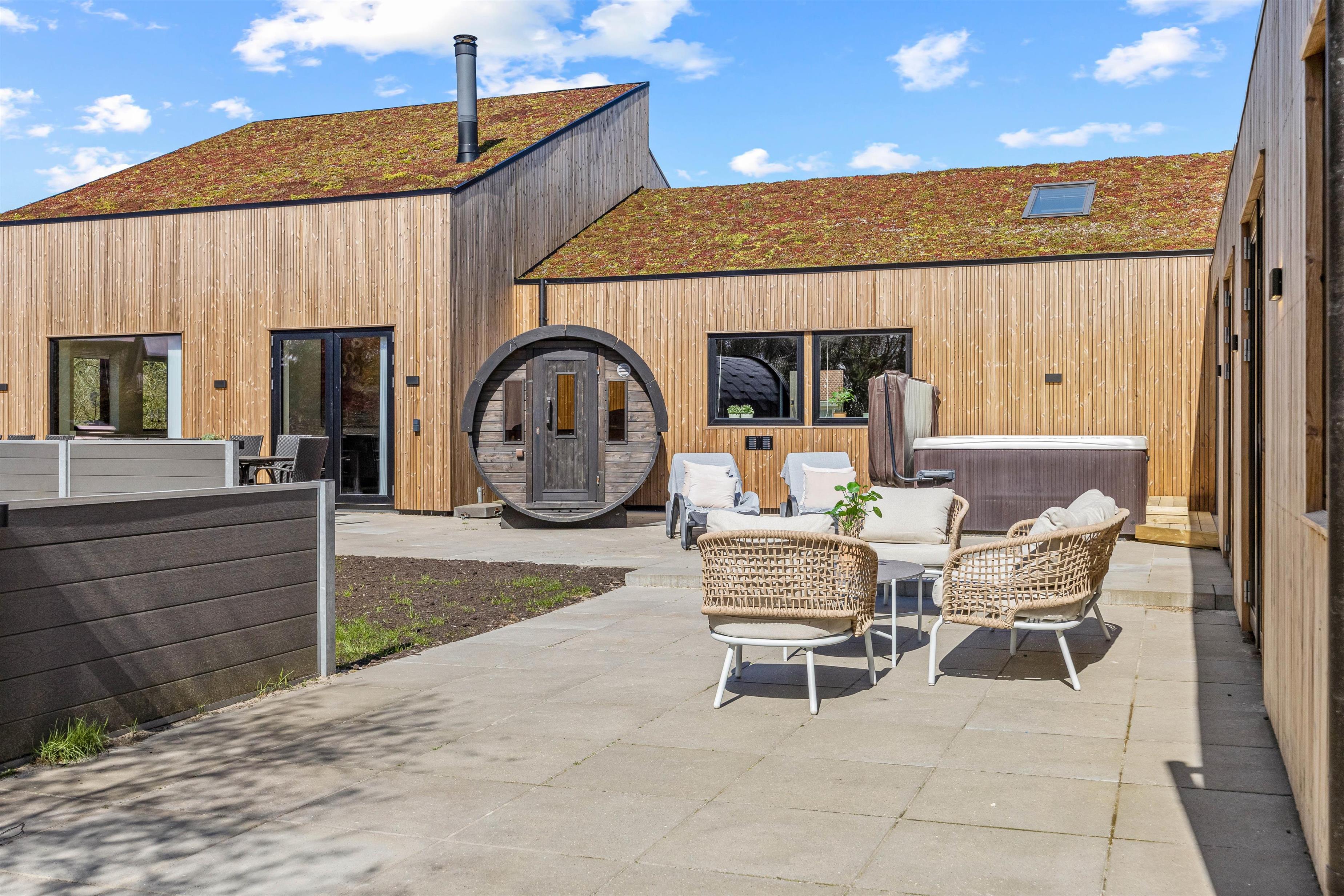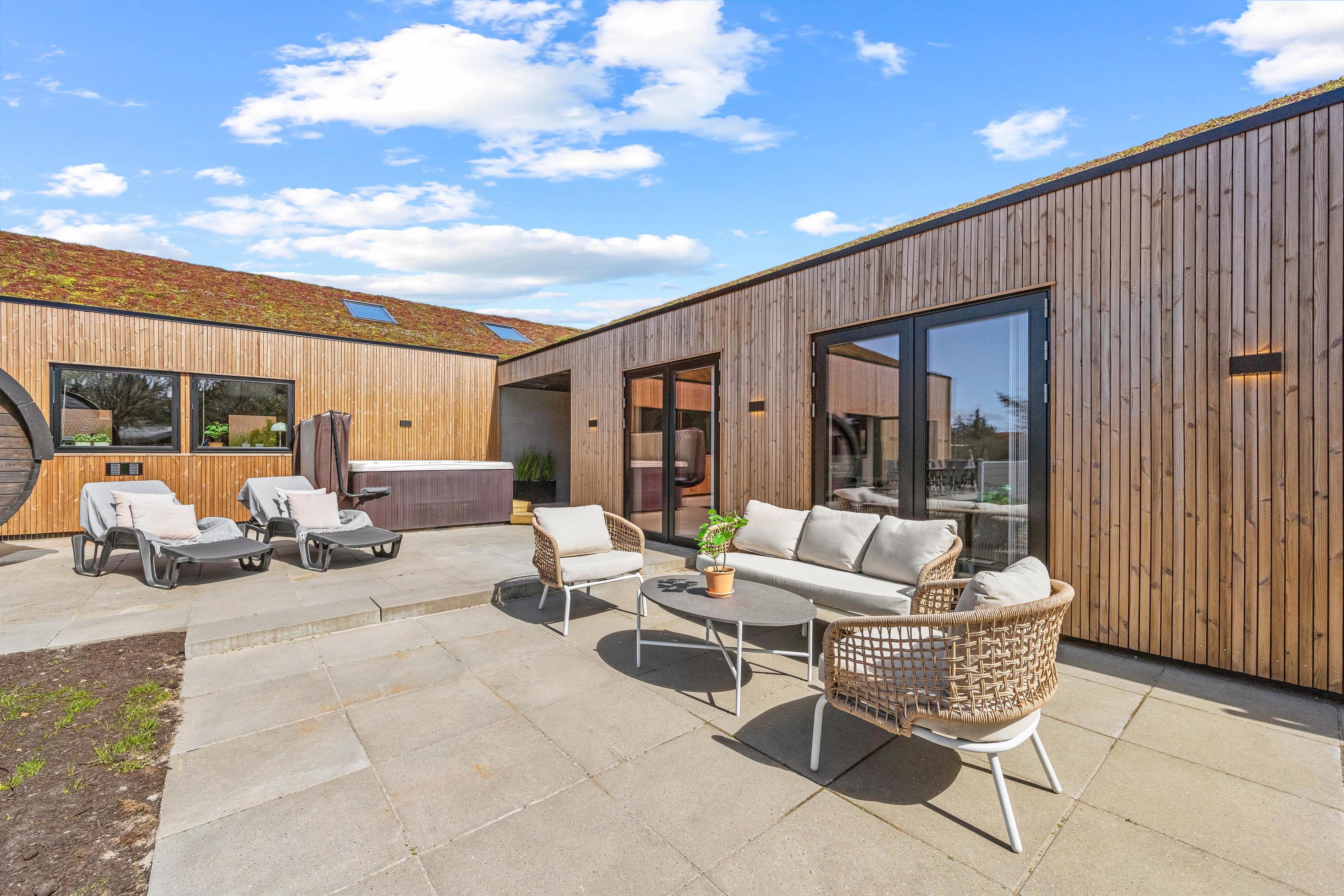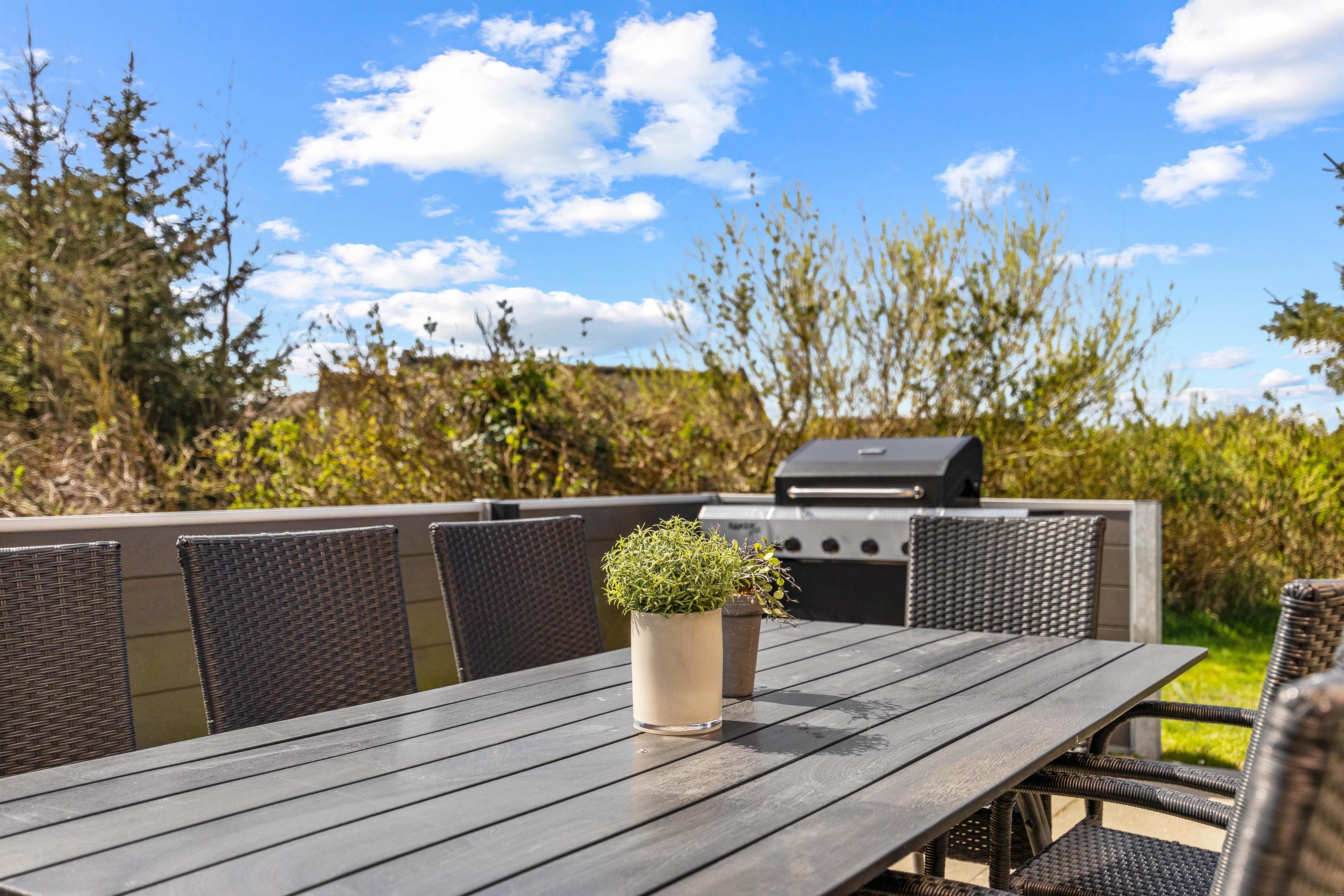 A large terrace wraps around this beautiful holiday home, ensuring you'll always find a sunny spot to recharge. Sun loungers and garden furniture are provided for barbecue gatherings or coffee breaks with delicious Danish pastries.