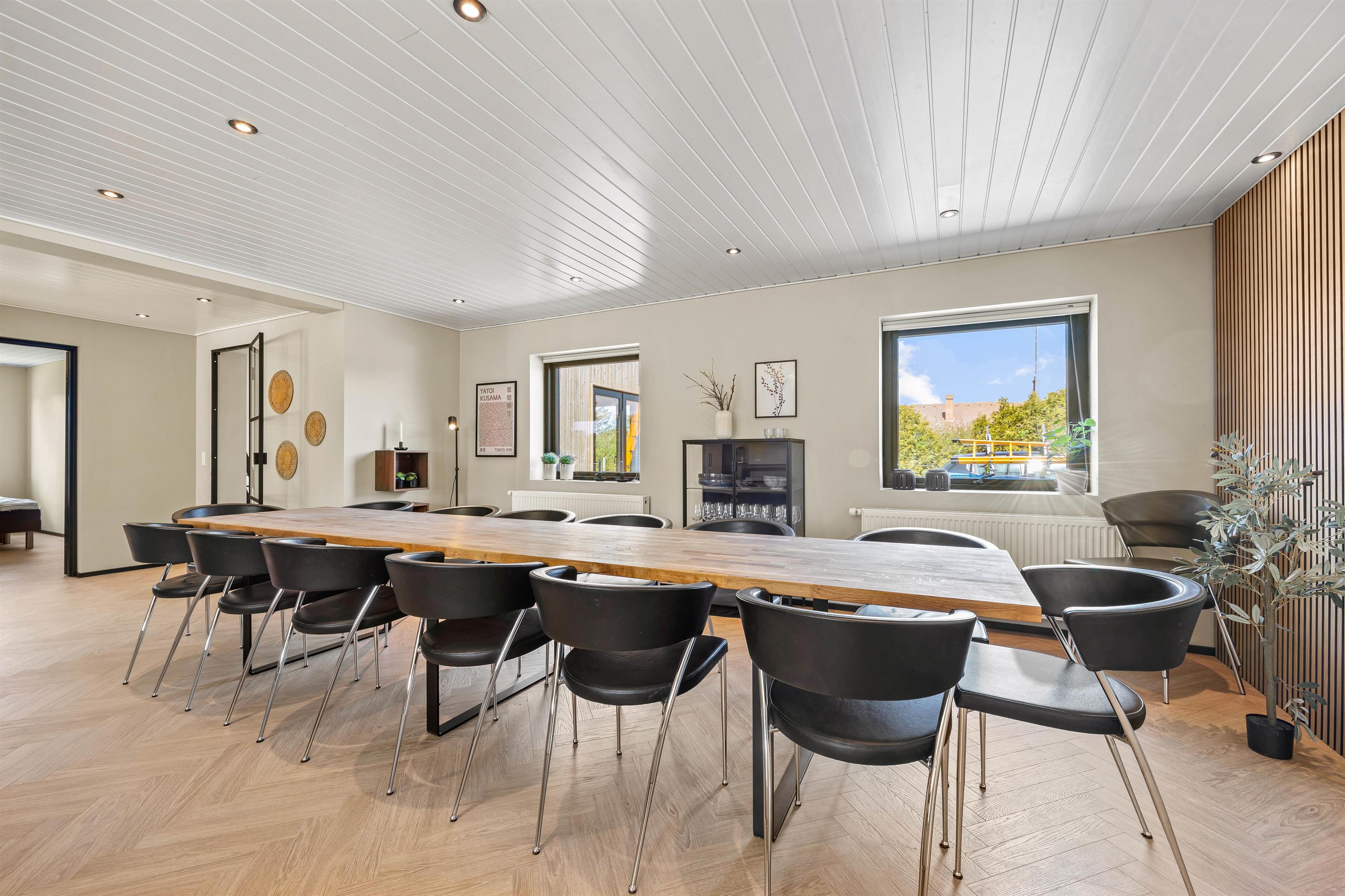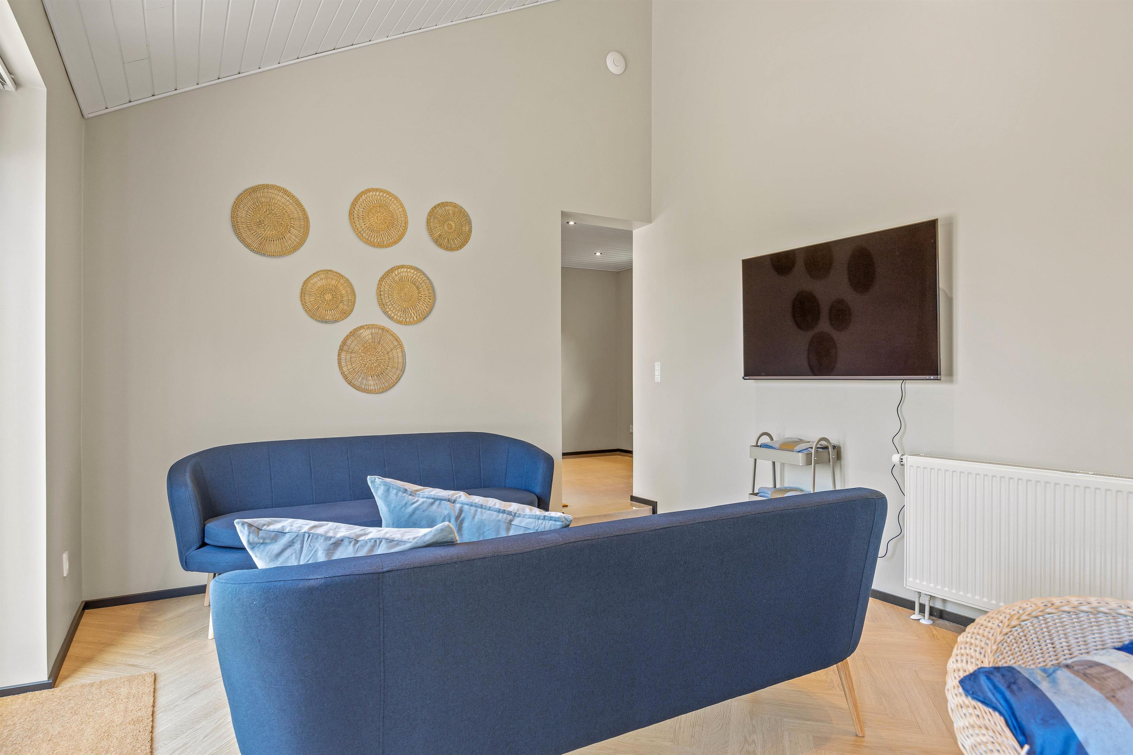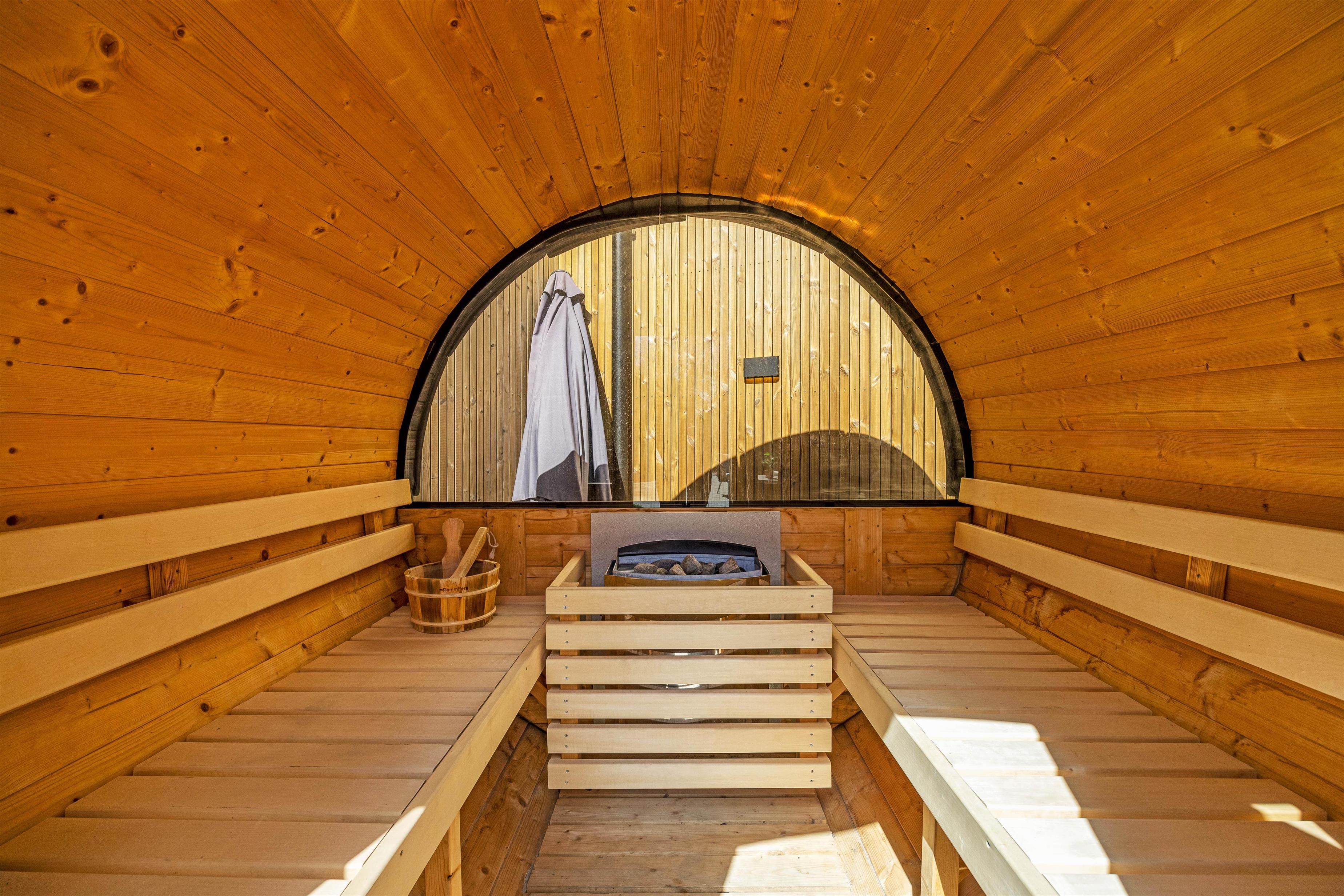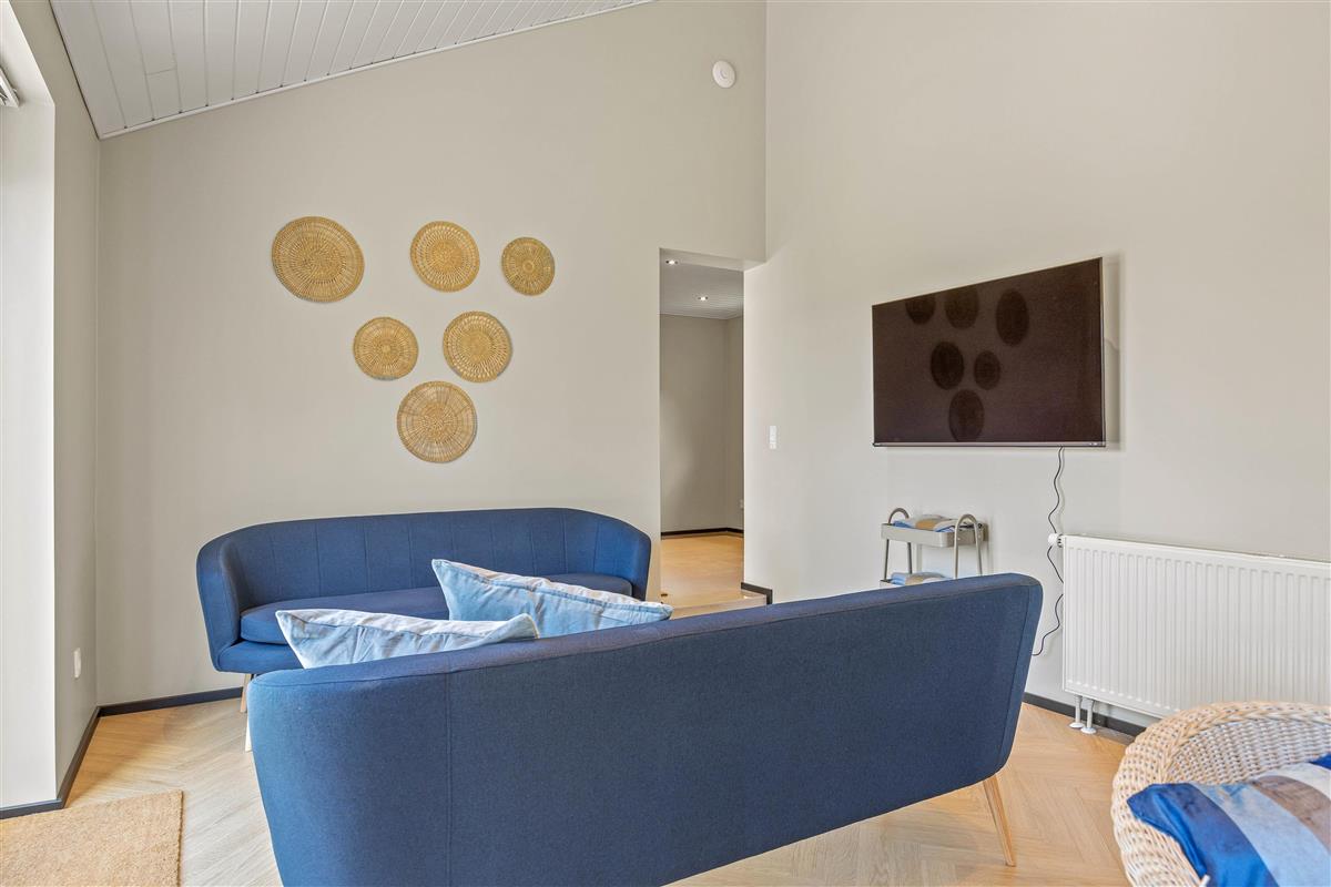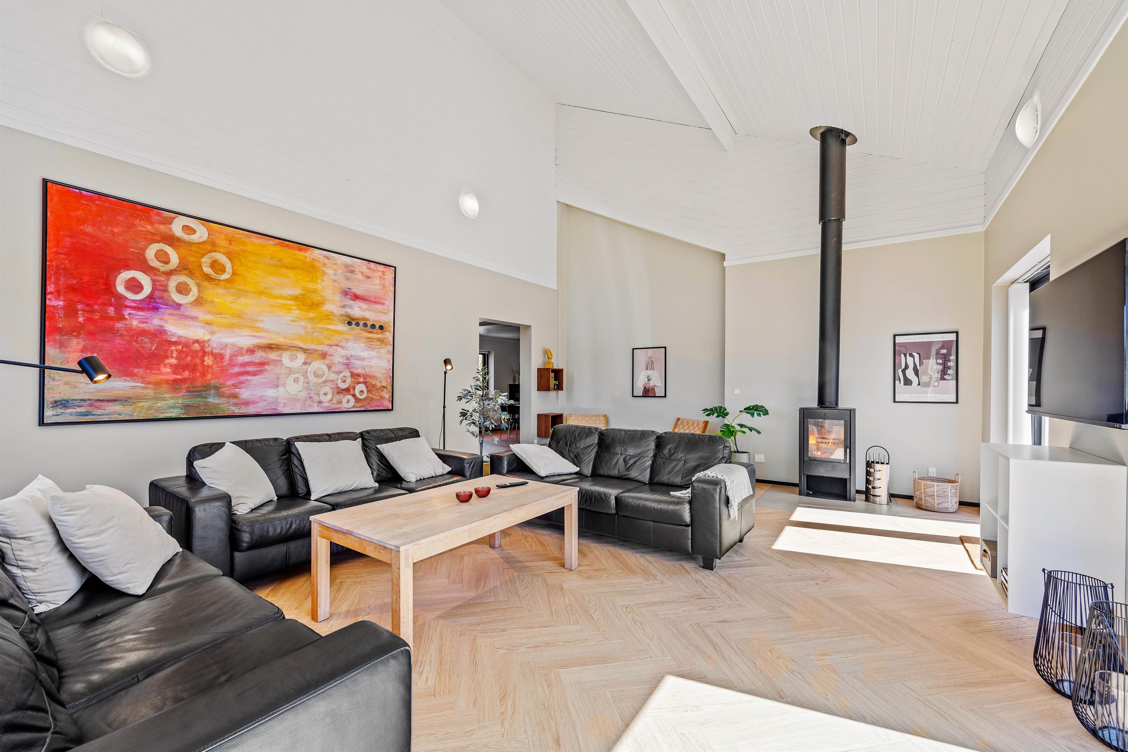 Spread across 313 square metres, there's ample space for up to 14 people. The unique layout offers plenty of quiet spaces when you need to escape the hustle and bustle. The main living area provides space for everyone to gather for a cosy film evening by the crackling wood-burning stove. There's also a smaller separate living room with TV.