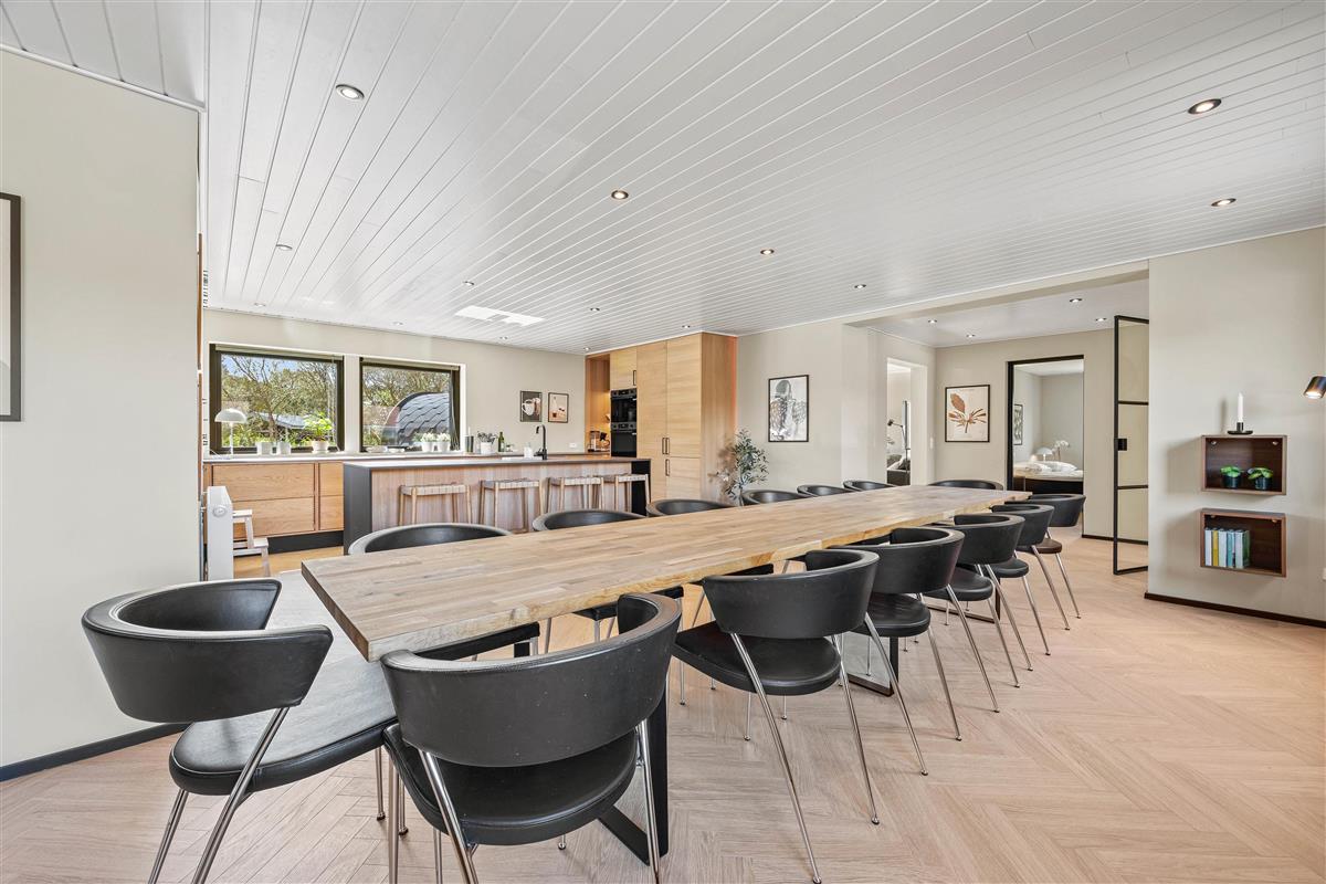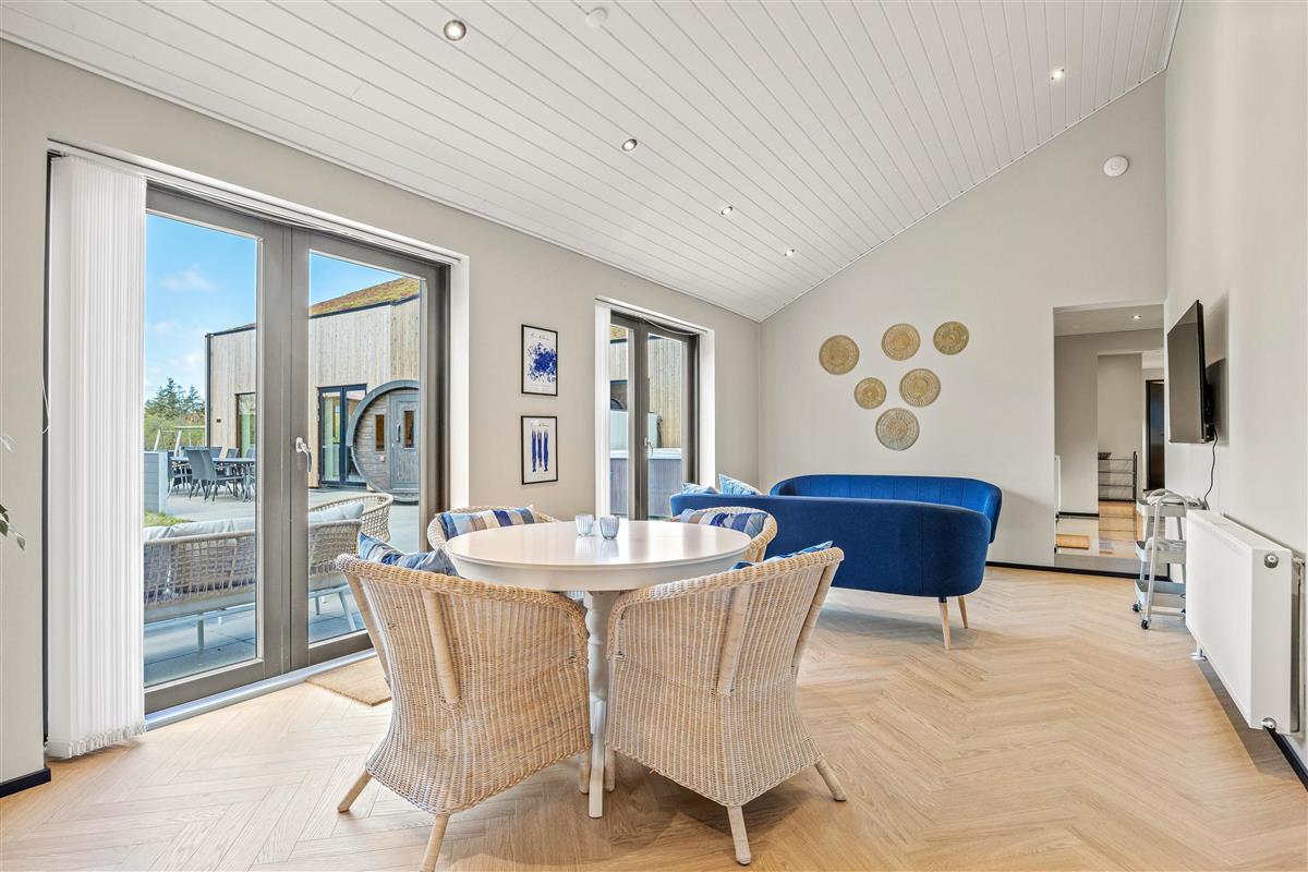The spacious open-plan kitchen allows everyone to prepare delicious evening meals together, enjoying them at the long dining table. Perhaps organise your own "Perfect Dinner" evening in Blåvand-style for a fun cooking event.