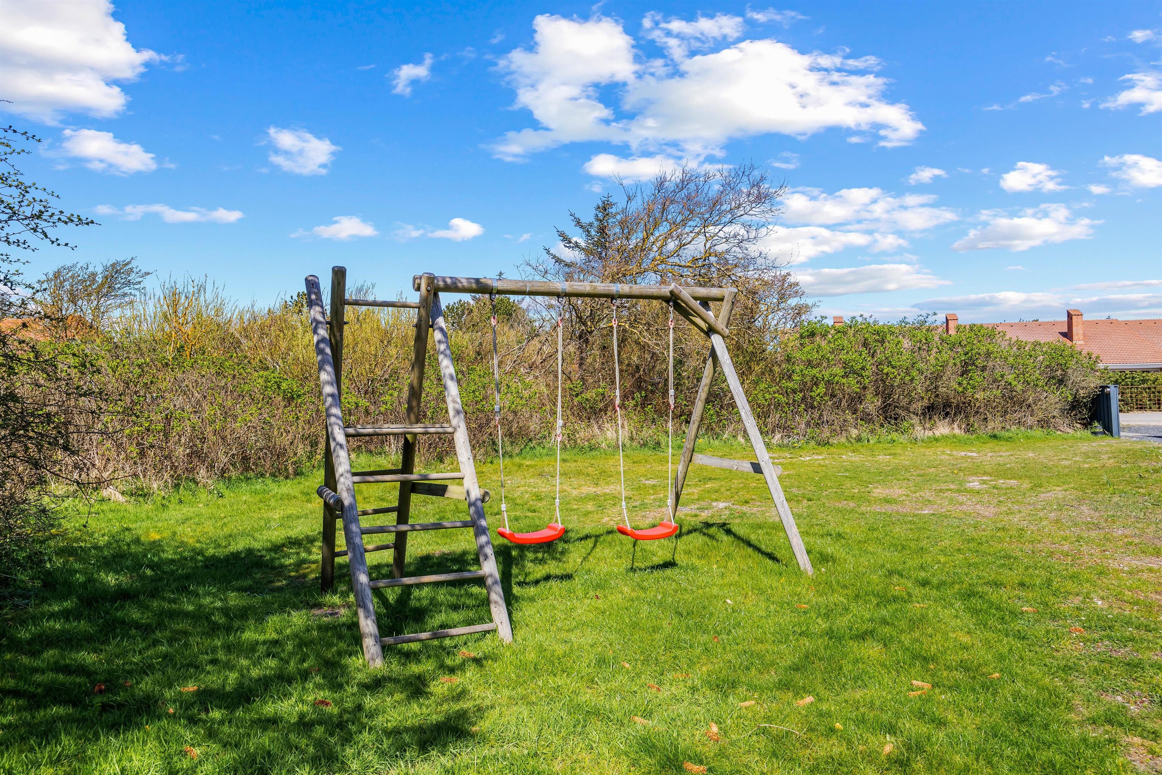 For children, there are swings and a sandpit for outdoor play.