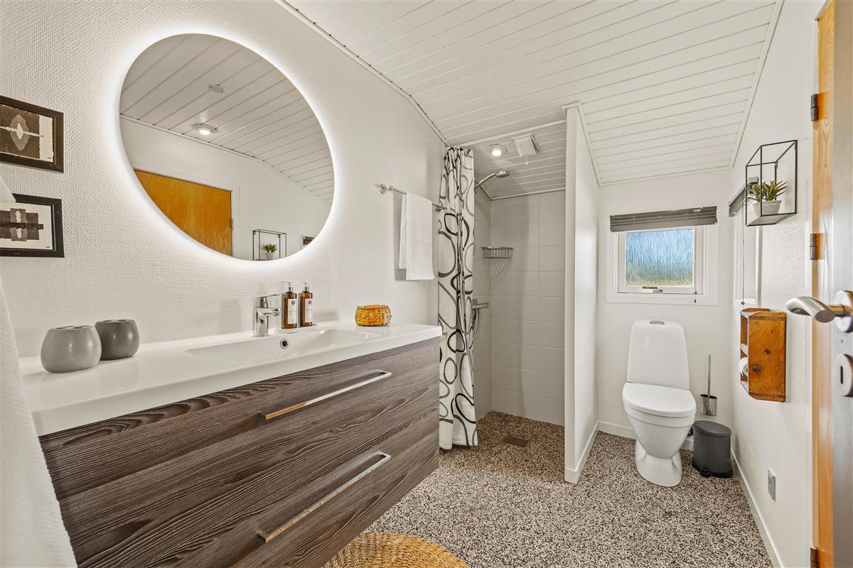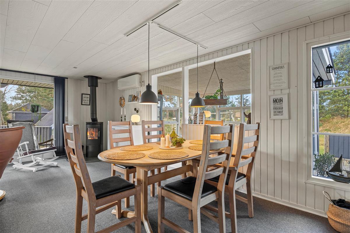 Your holiday begins the moment you step through the front door of this beautiful summer house. Drop your shoulders, take a deep breath, and enjoy your holiday to the fullest. The heart of the holiday home is the charming living room, decorated in the Danish 'hygge' style, which flows into the dining area and kitchen. The colour scheme, combined with carpeted floors and the warmth of the fireplace, creates the perfect setting for relaxation. Enjoy time together while listening to the crackling of wood in the background - firewood is provided free of charge by the owner.