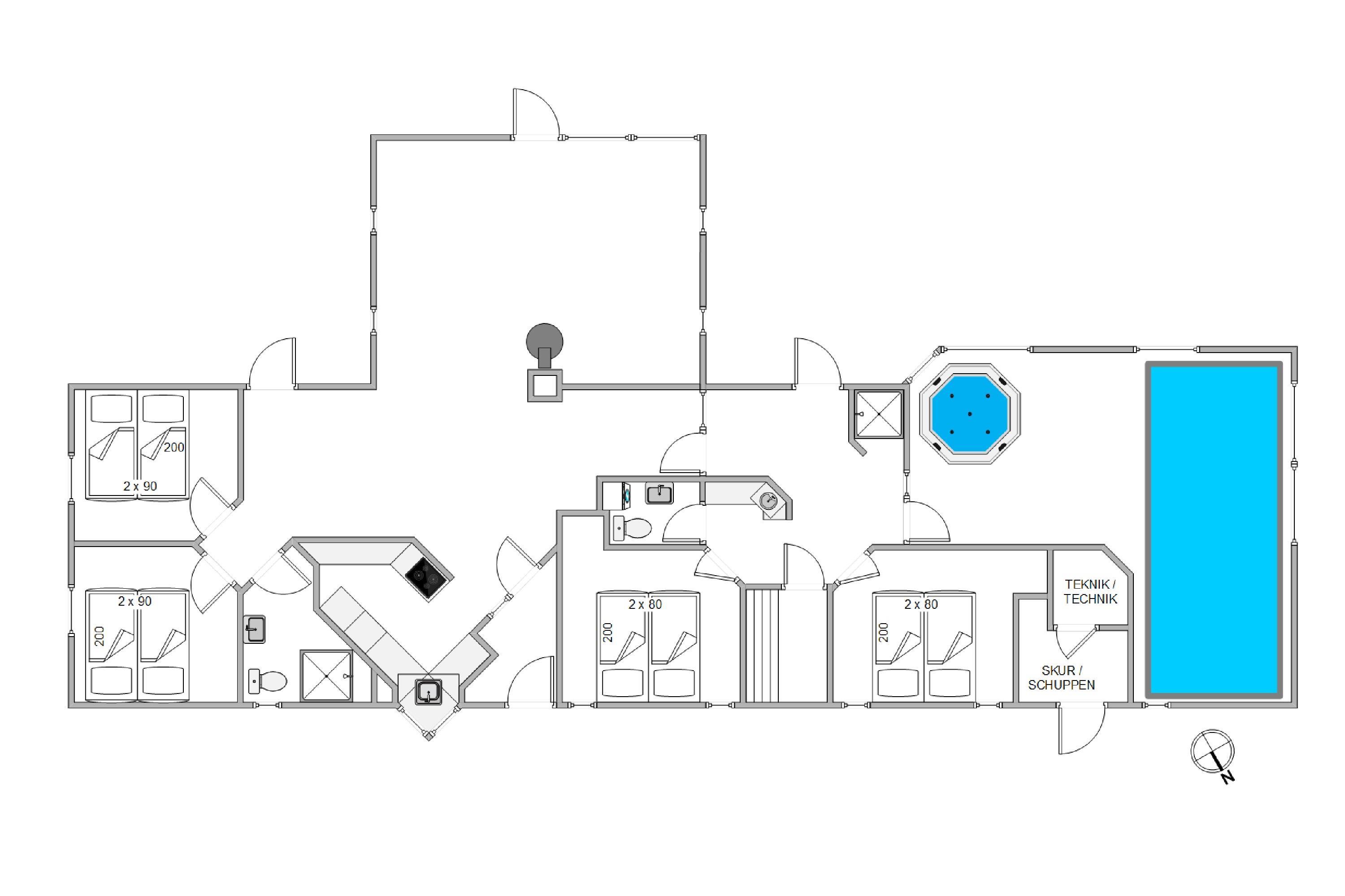 You'll feel completely at home in this holiday house's modern yet cosy atmosphere, furnished with attention to detail. The practical layout, with four bedrooms and two bathrooms with underfloor heating, allows all guests to find their own space when needed. Modern conveniences such as dishwasher, washing machine and tumble dryer make your holiday even more carefree. The house features an energy-efficient air-to-water heat pump.