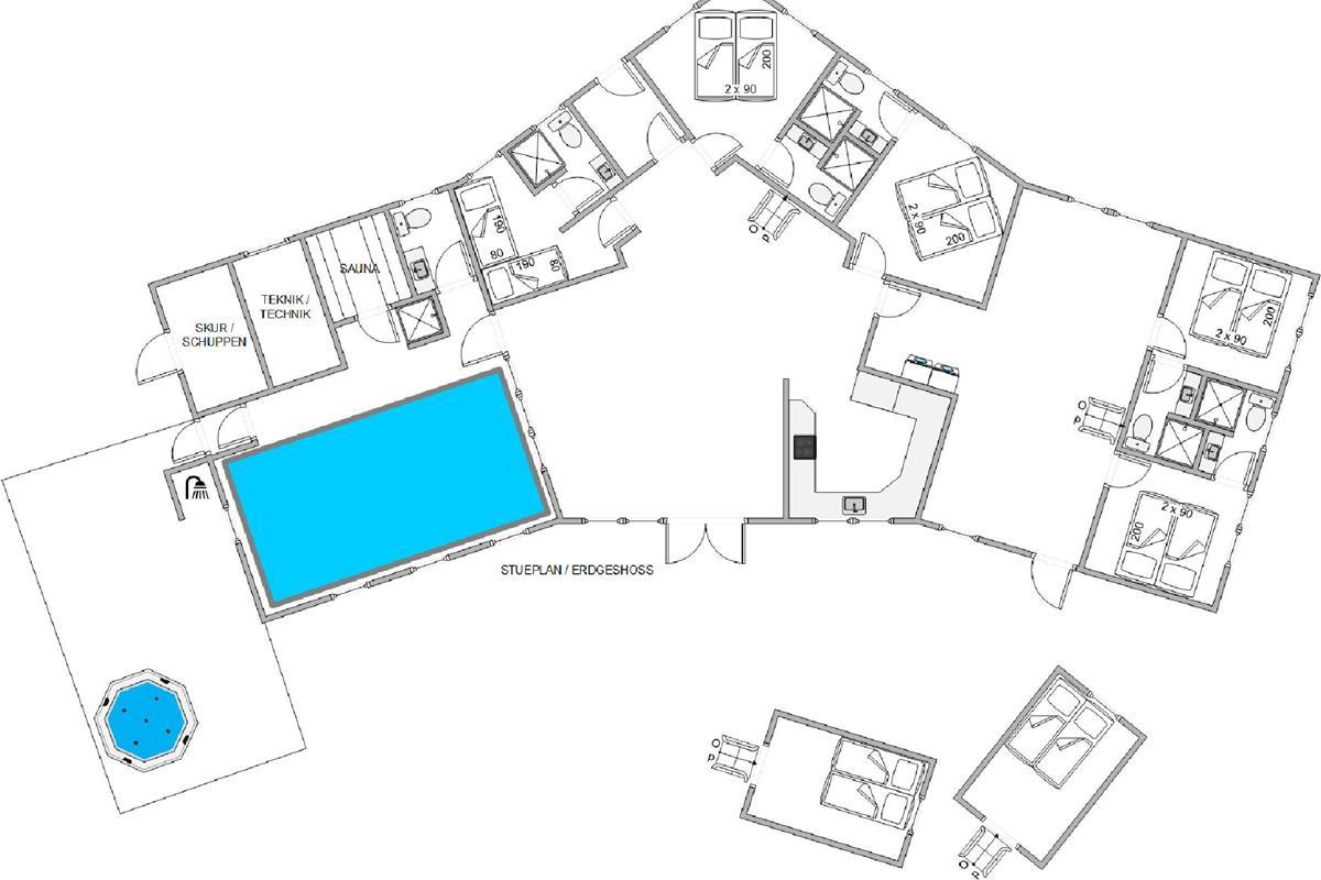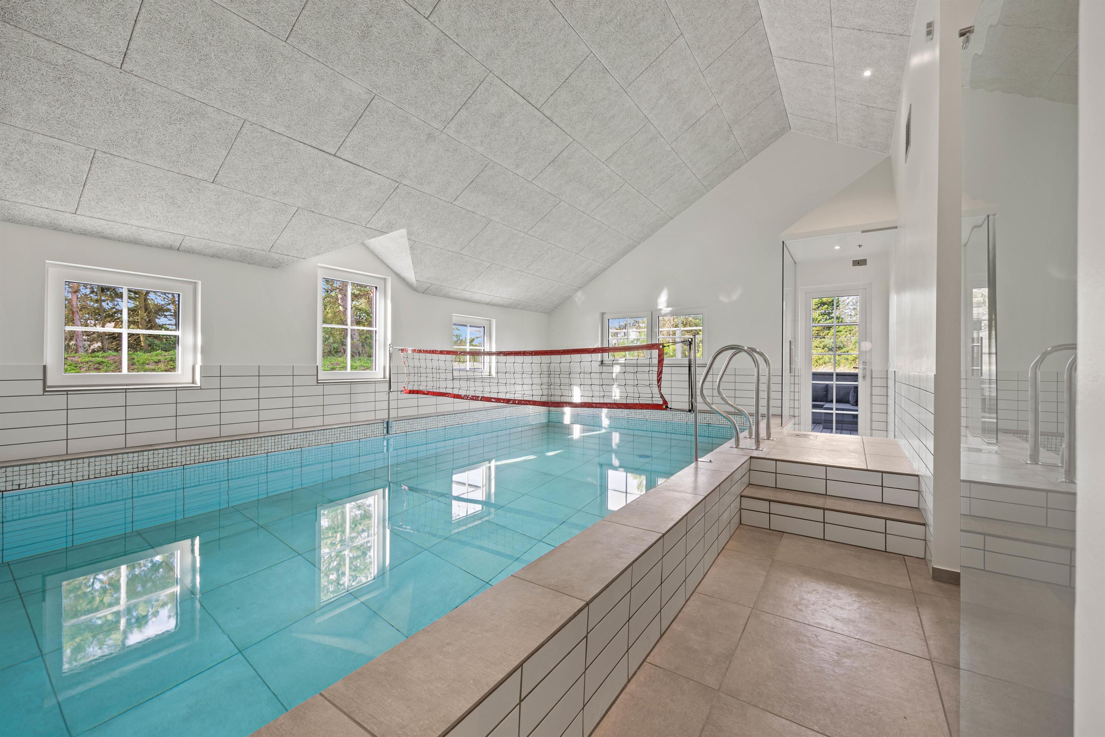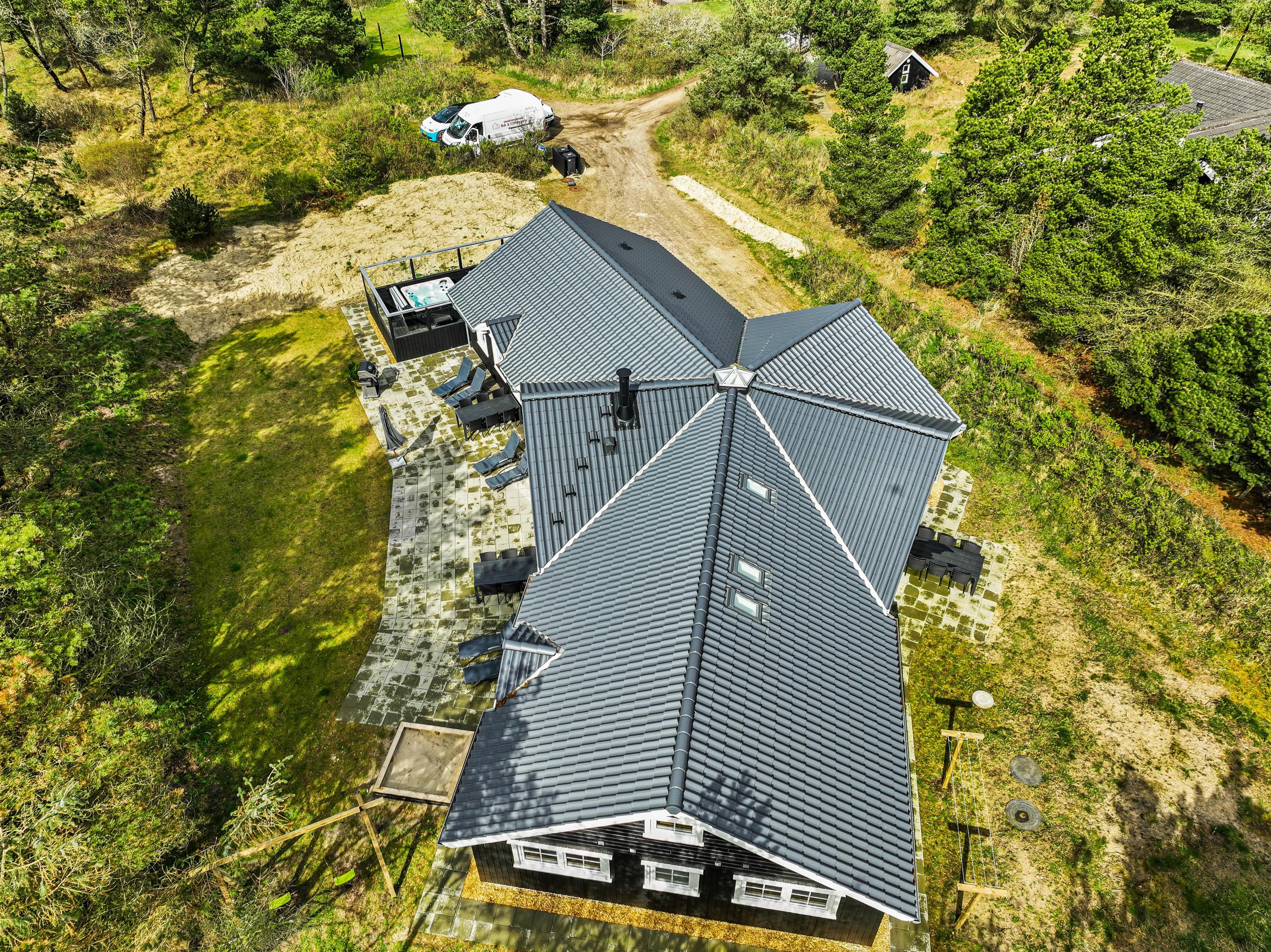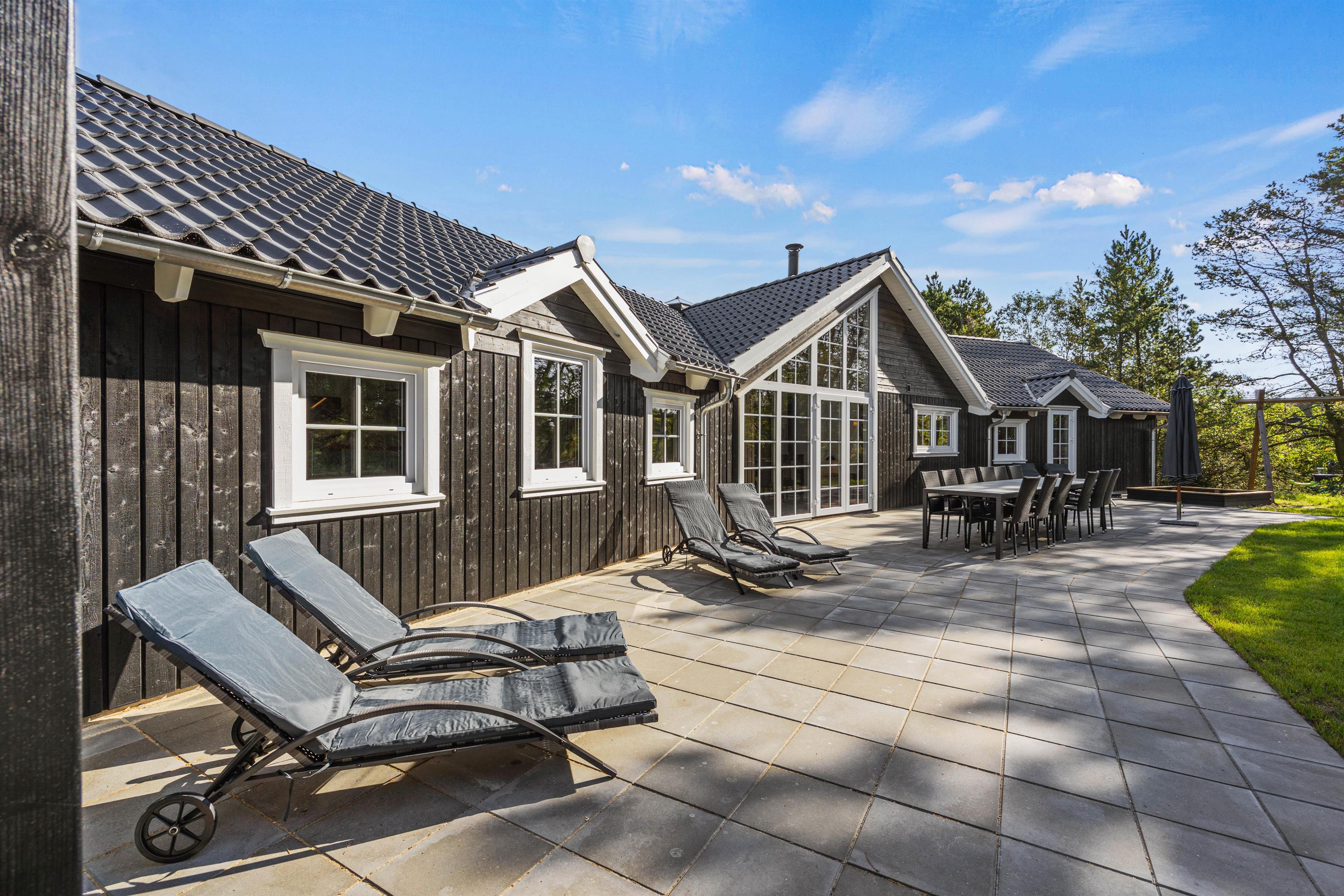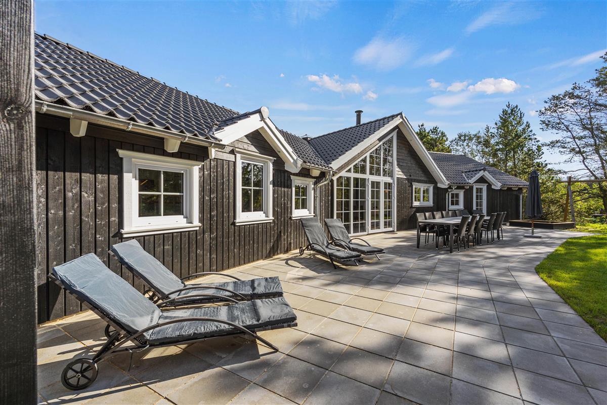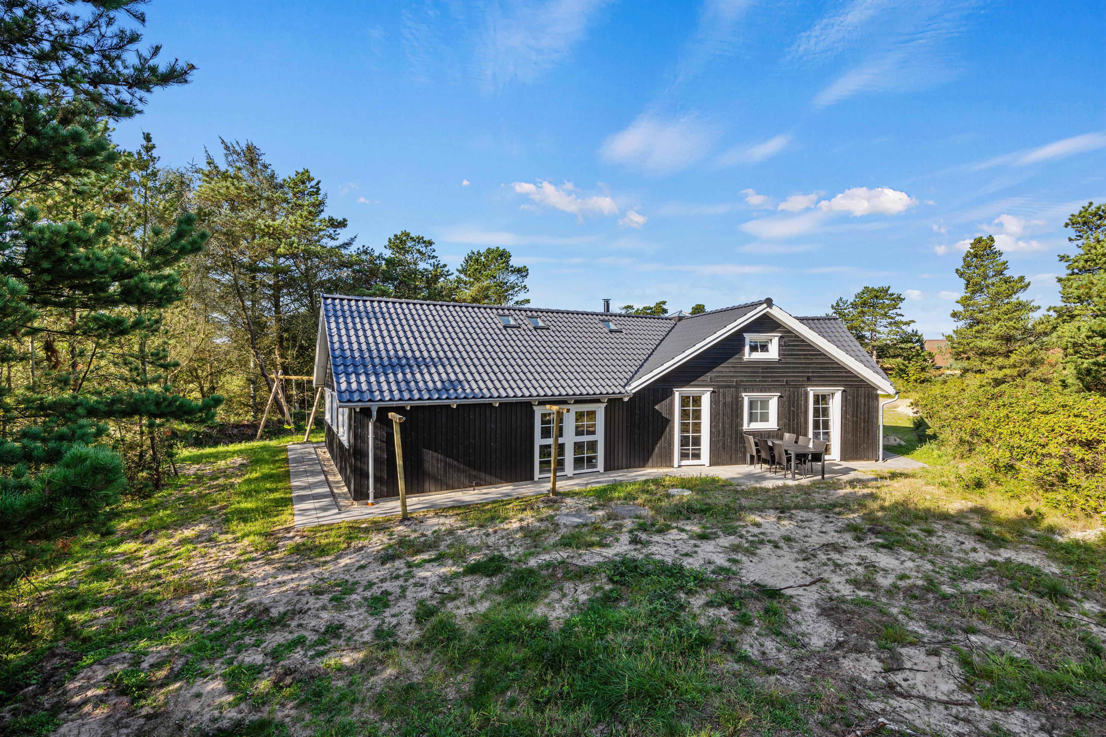 This spacious holiday home, newly built in 2023 in Scandinavian style, is located close to the centre of Blåvand at Pouls Bjerge 6. Perfect for holidays with friends or multiple families, this holiday home offers outstanding features including a steam room, swimming pool, outdoor hot tub, pool table and table tennis. Electric car charging is available on-site for guests arriving in electric vehicles.