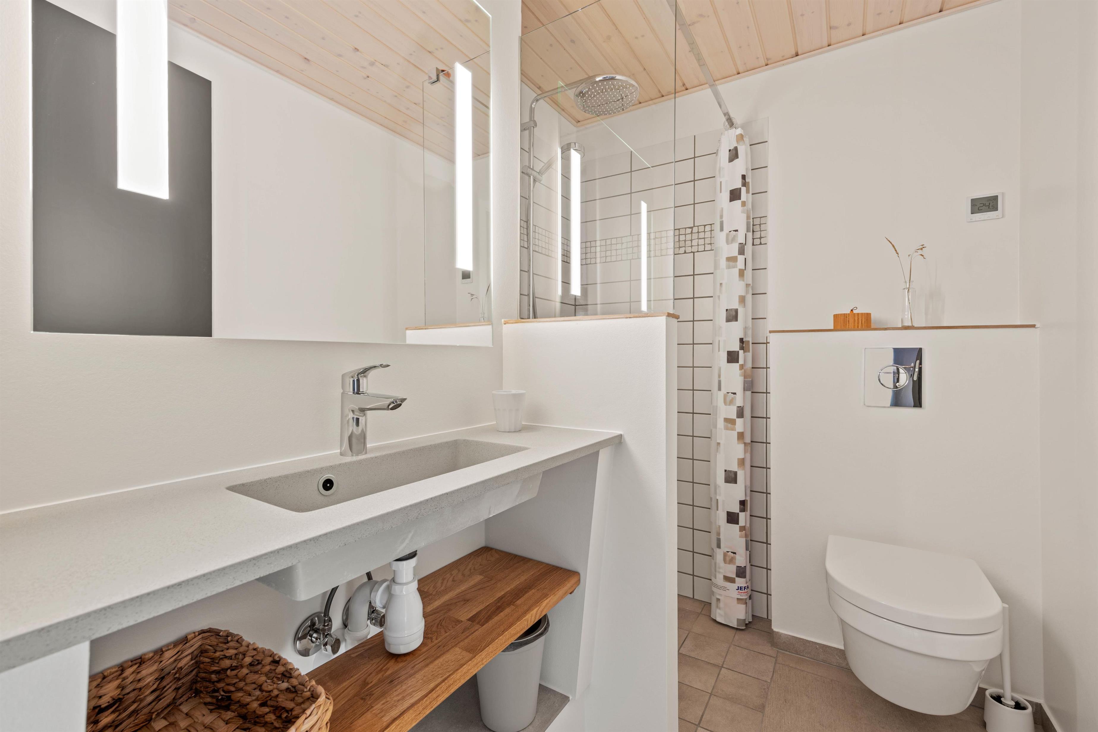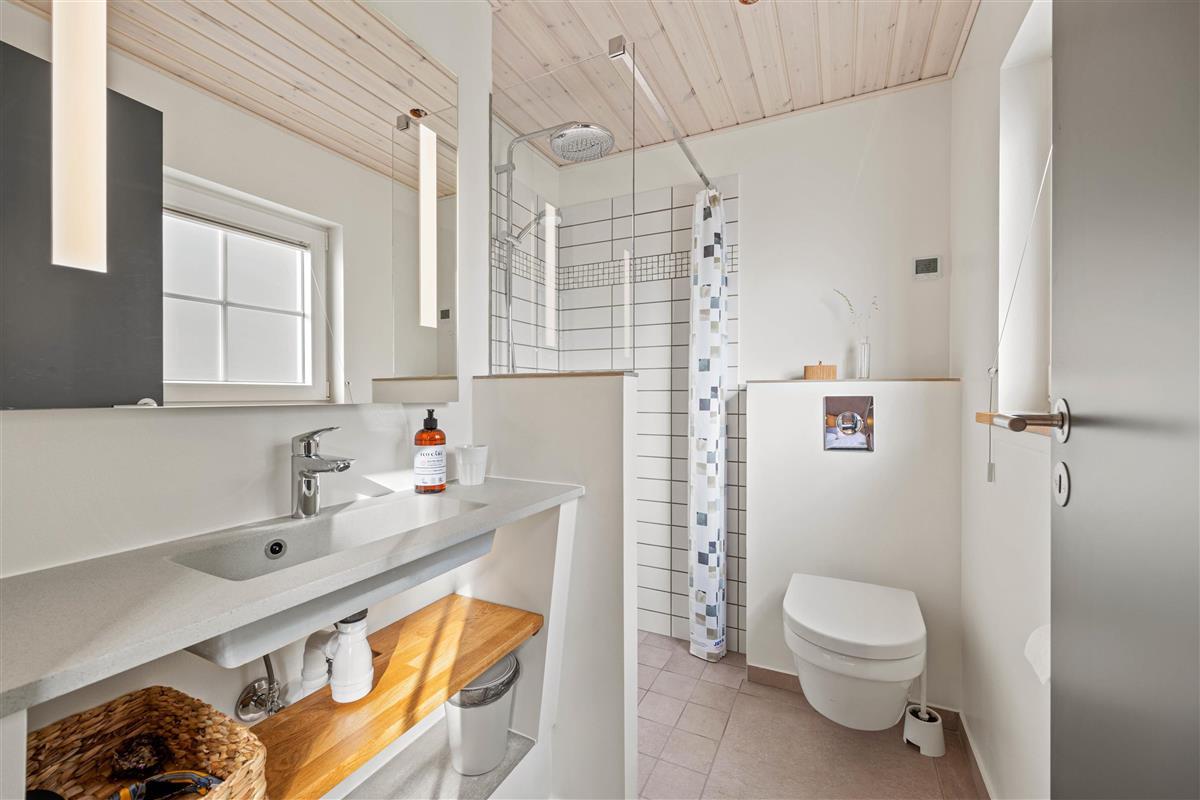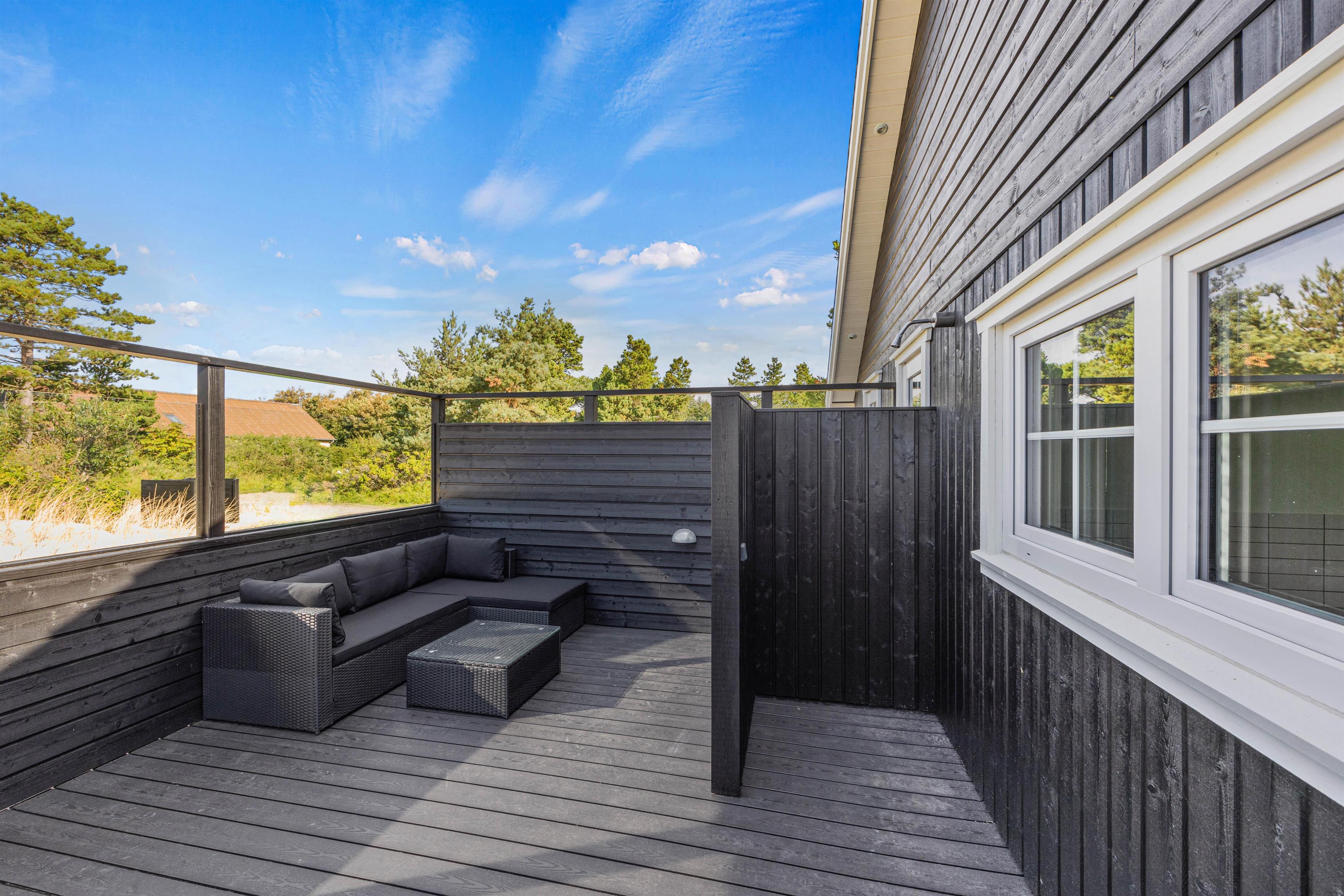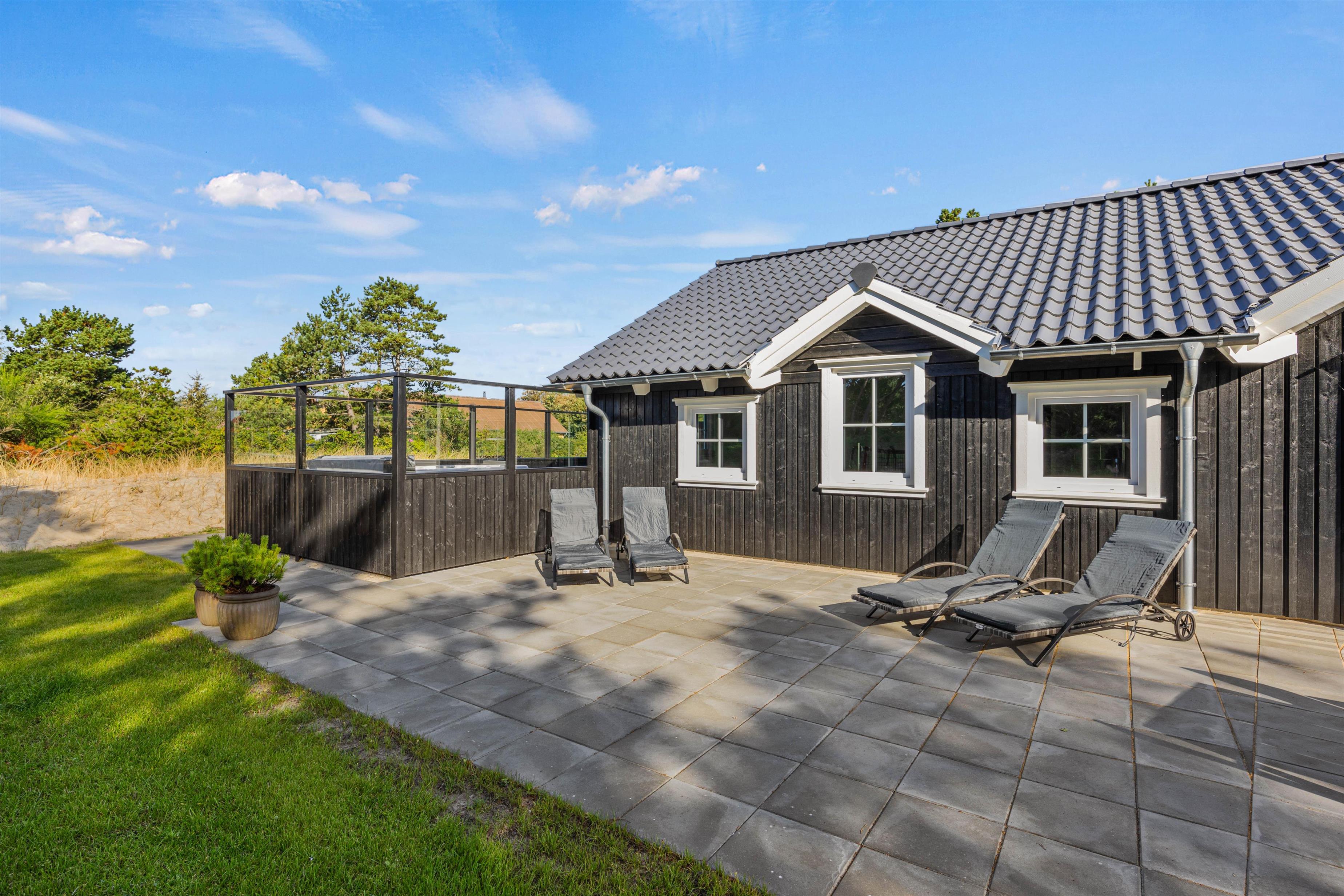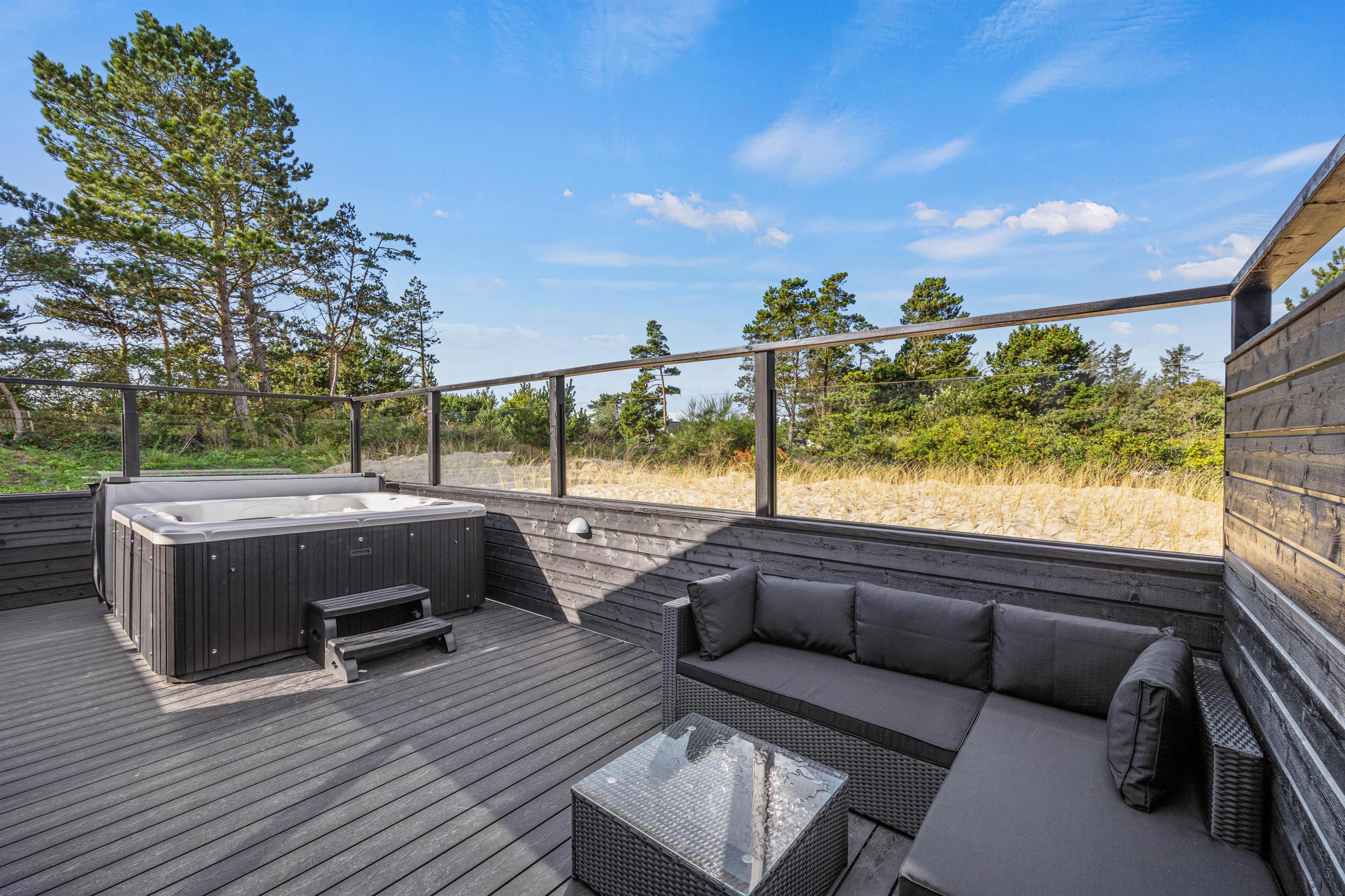 The outdoor area lacks nothing. You'll find a wonderful terrace with sun loungers and a large dining table for barbecue evenings. The fenced terrace area includes an outdoor shower, hot tub and lounge sofa. End your day perfectly by relaxing in the warm, bubbling water under Blåvand's unique starry sky. The outdoor shower is available from 1st April to 31st October.