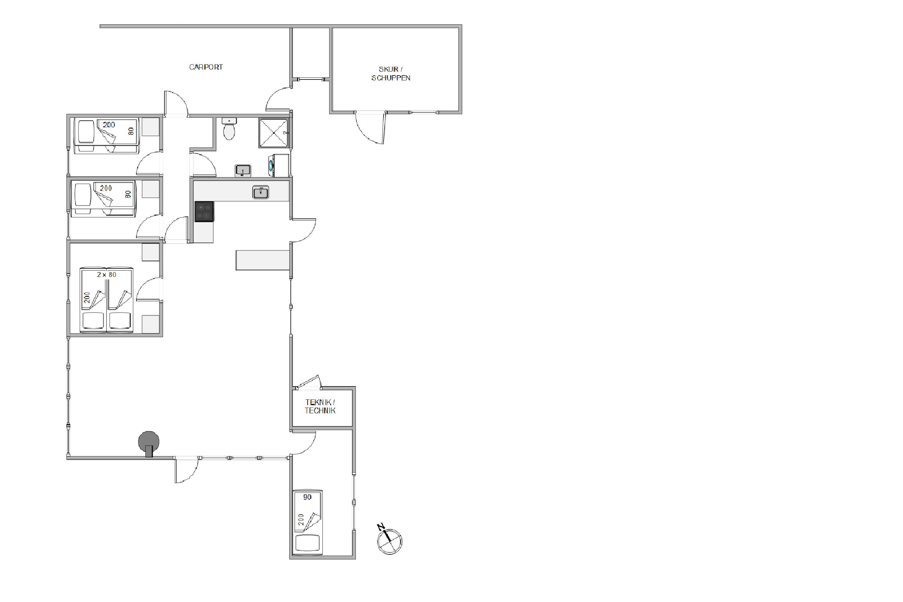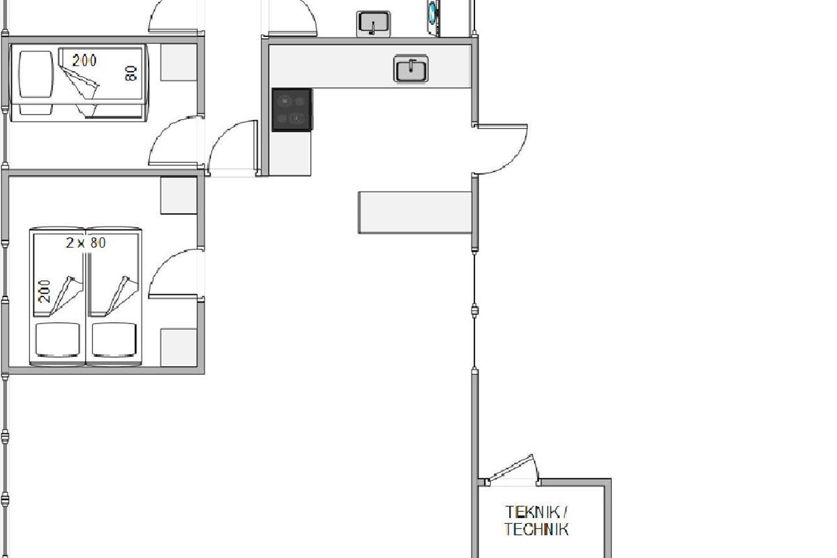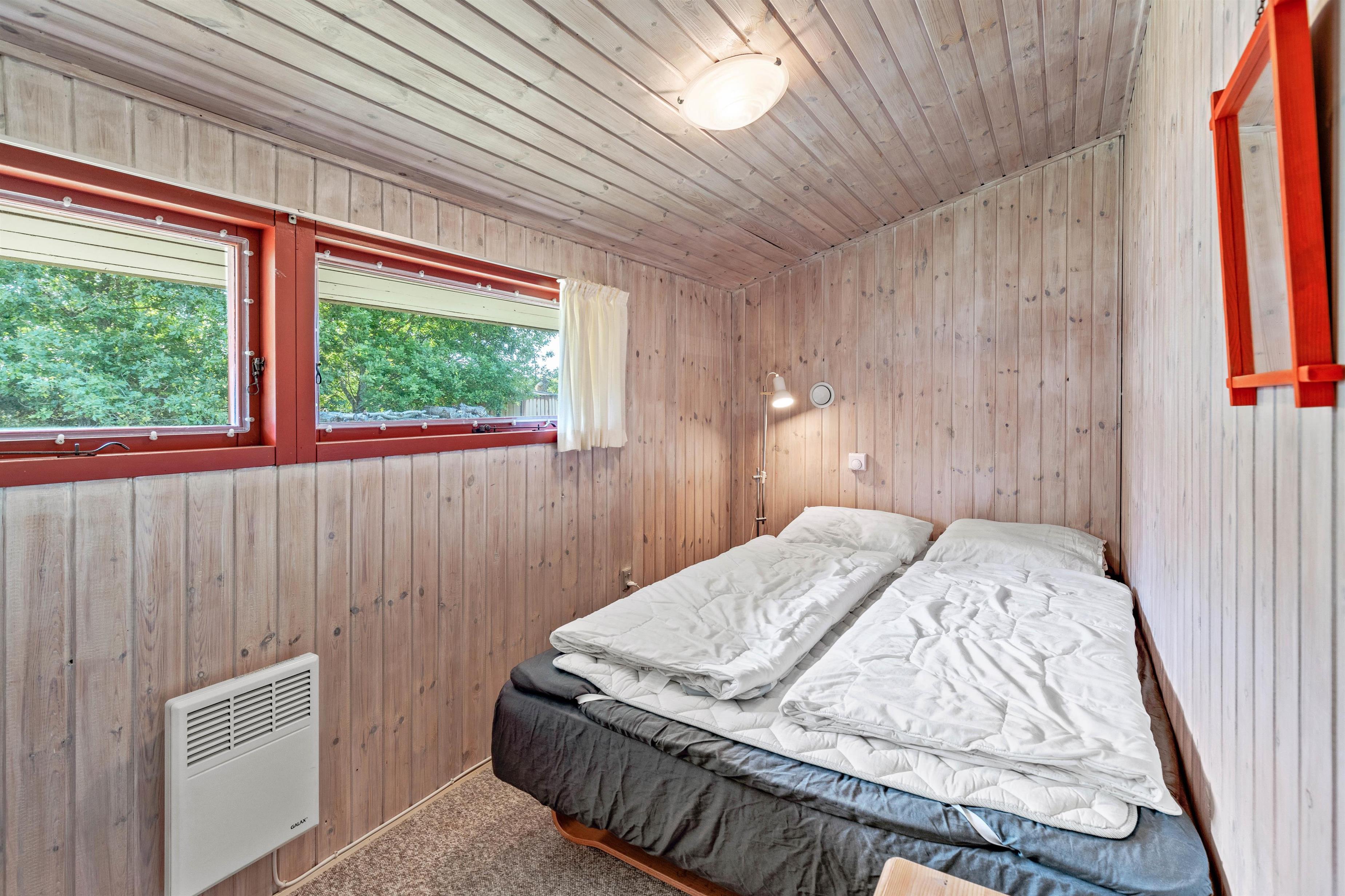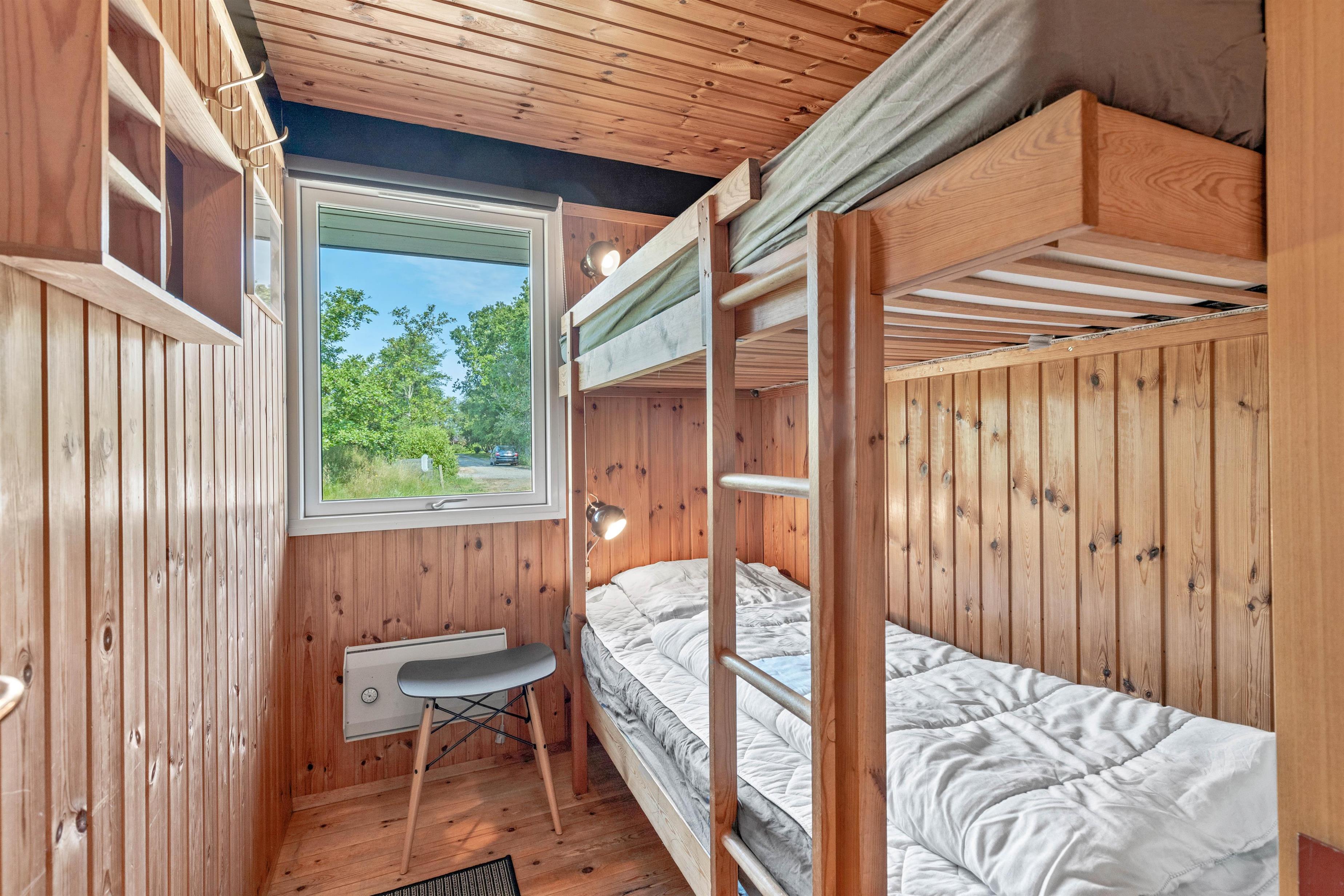 The holiday home has four bedrooms in total: one with a double bed, two with single beds each and another with bunk beds. Surrounded by the tranquility of nature, you're sure to enjoy restful holiday sleep. The bathroom features comfortable underfloor heating and includes a washing machine.