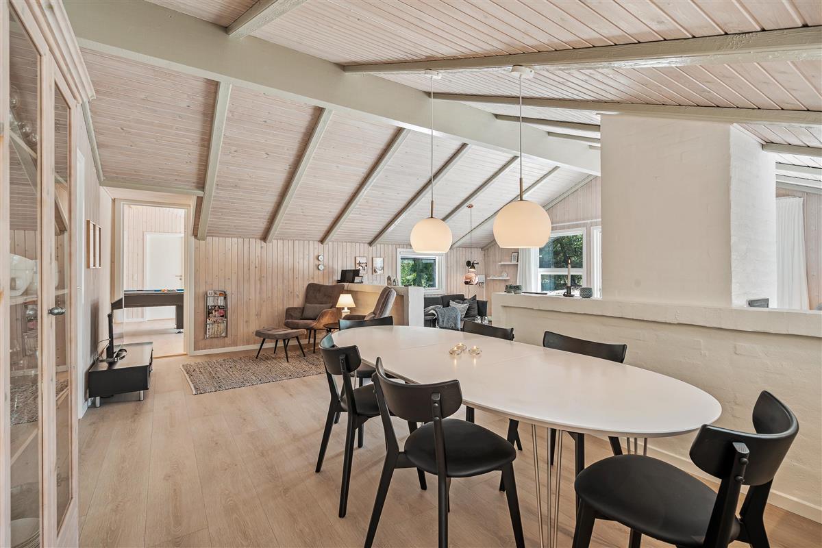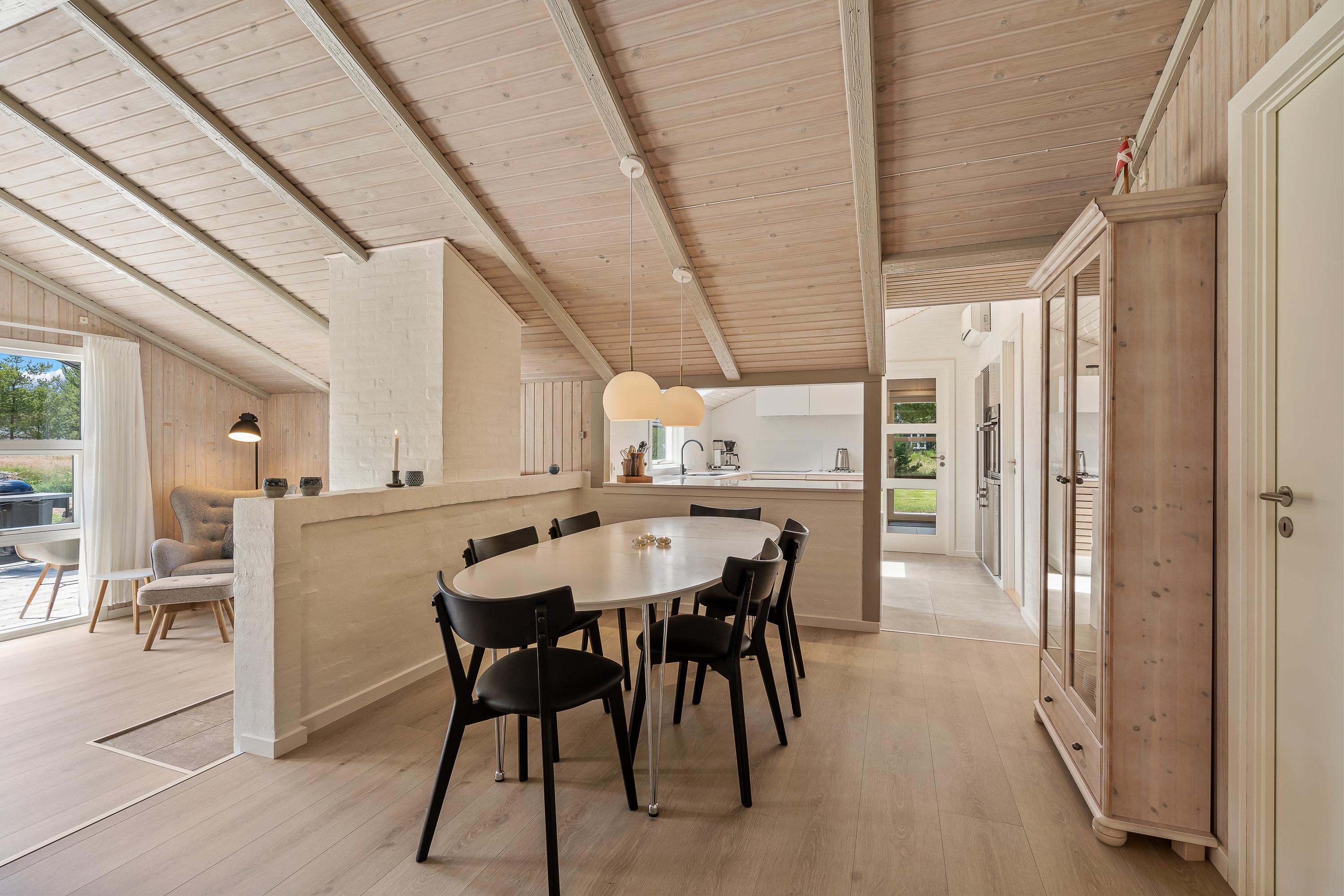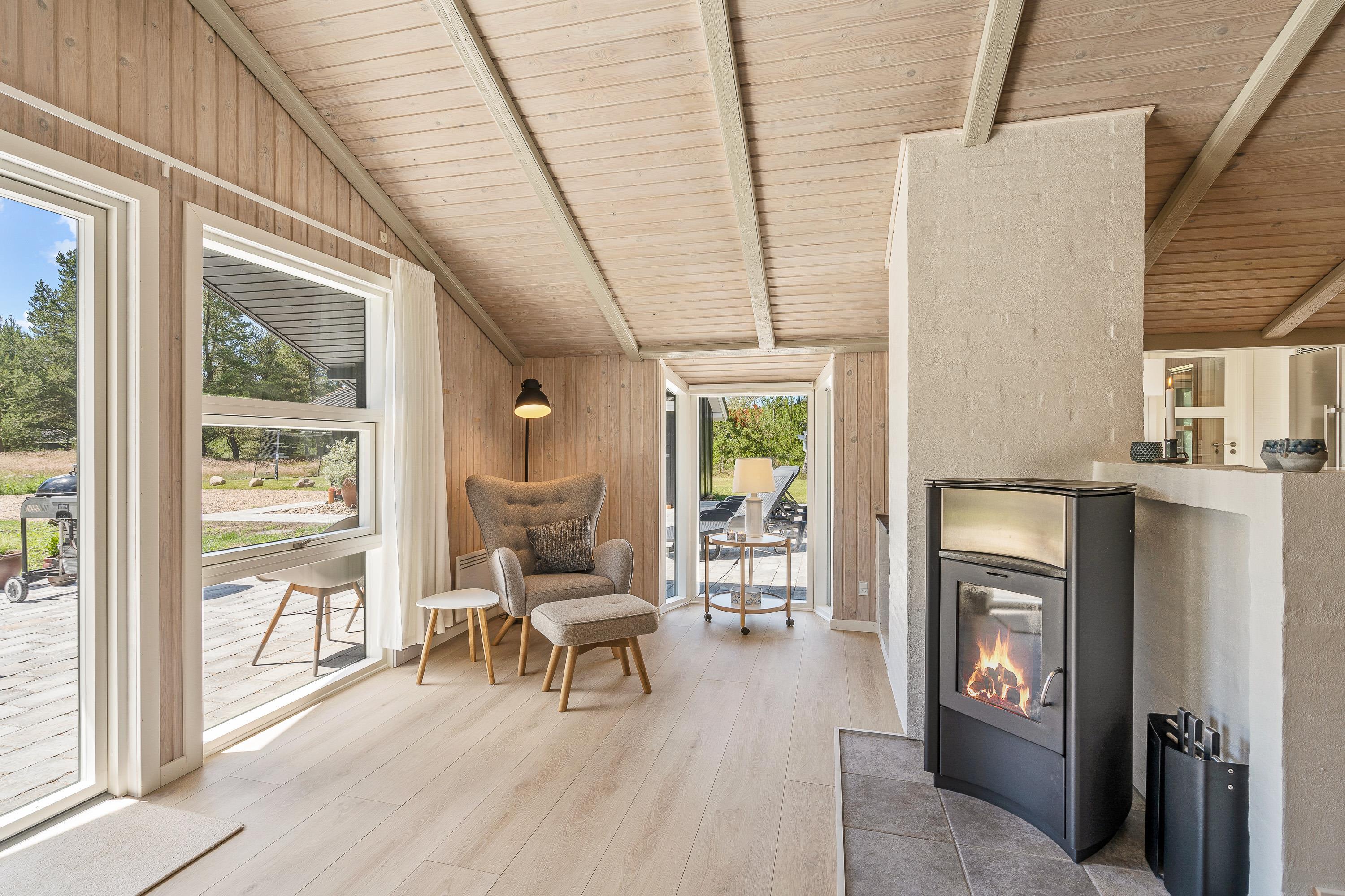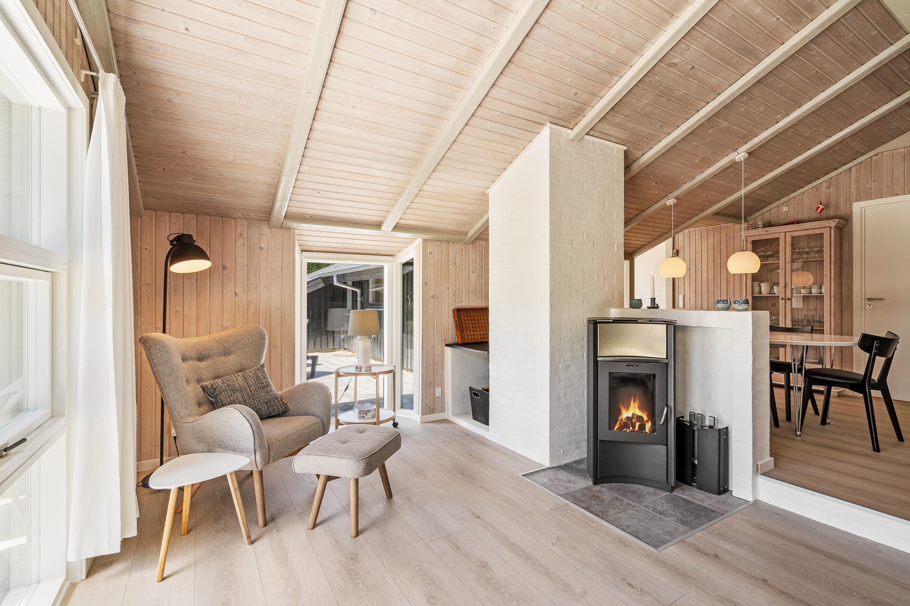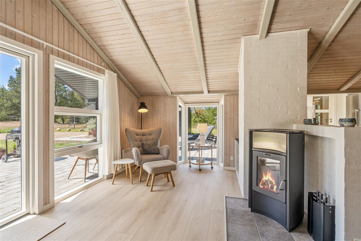 A bright and welcoming interior greets you at the holiday home at Lommen 11 in Blåvand. The motto here is arrive and feel at home. The comfortable furnishings offer plenty of space for spending time together. A wood-burning stove in the living room not only provides warmth but creates a particularly cosy atmosphere. Comfortable warmth also comes from the underfloor heating.