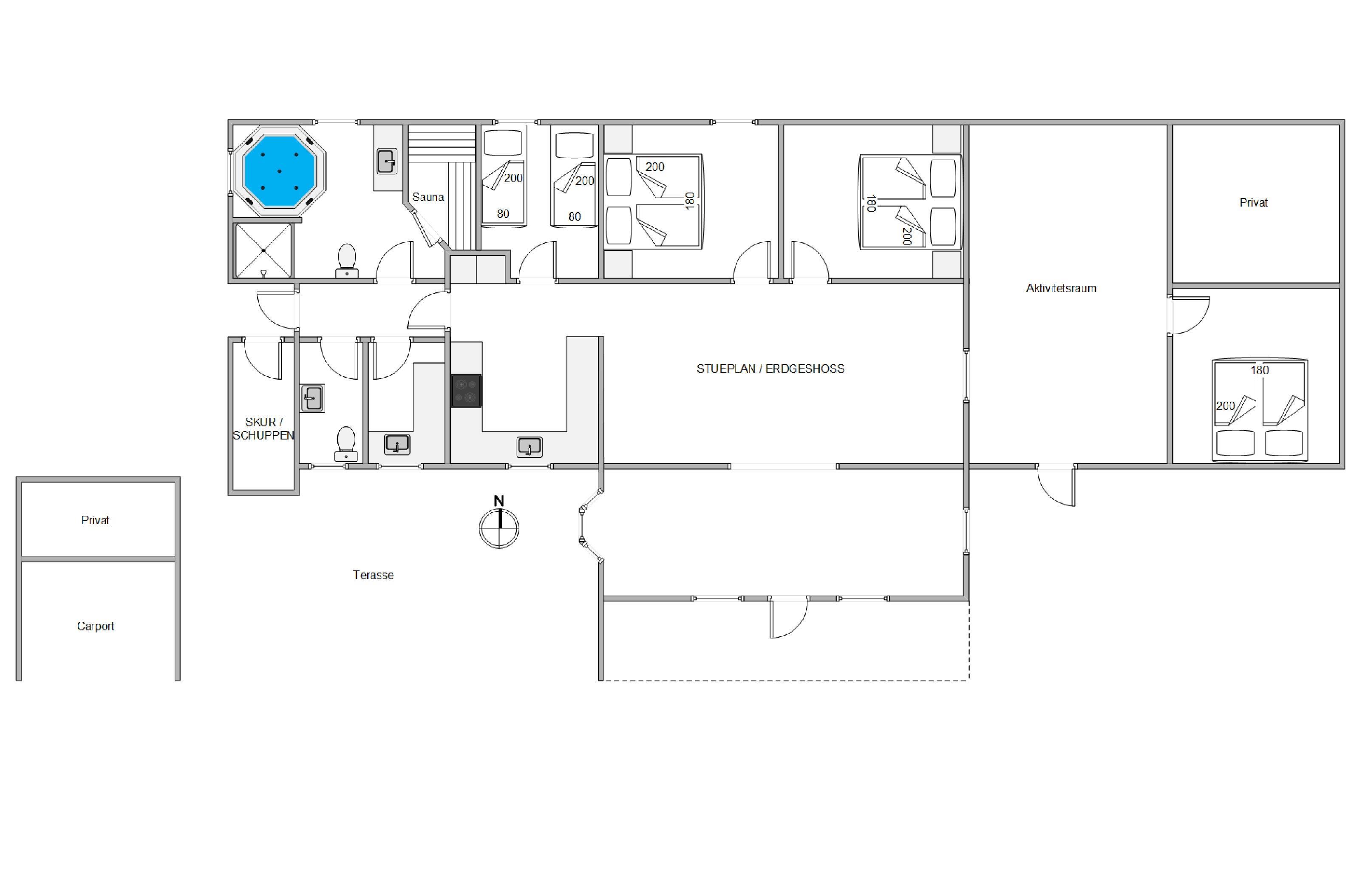 While the younger ones are busy with their activities, adults can relax on the partially covered terrace. Various garden furniture is available for your comfort. There's also a barbecue ready for a delicious outdoor feast. Enjoy tasty steaks and grilled potatoes under the open sky.