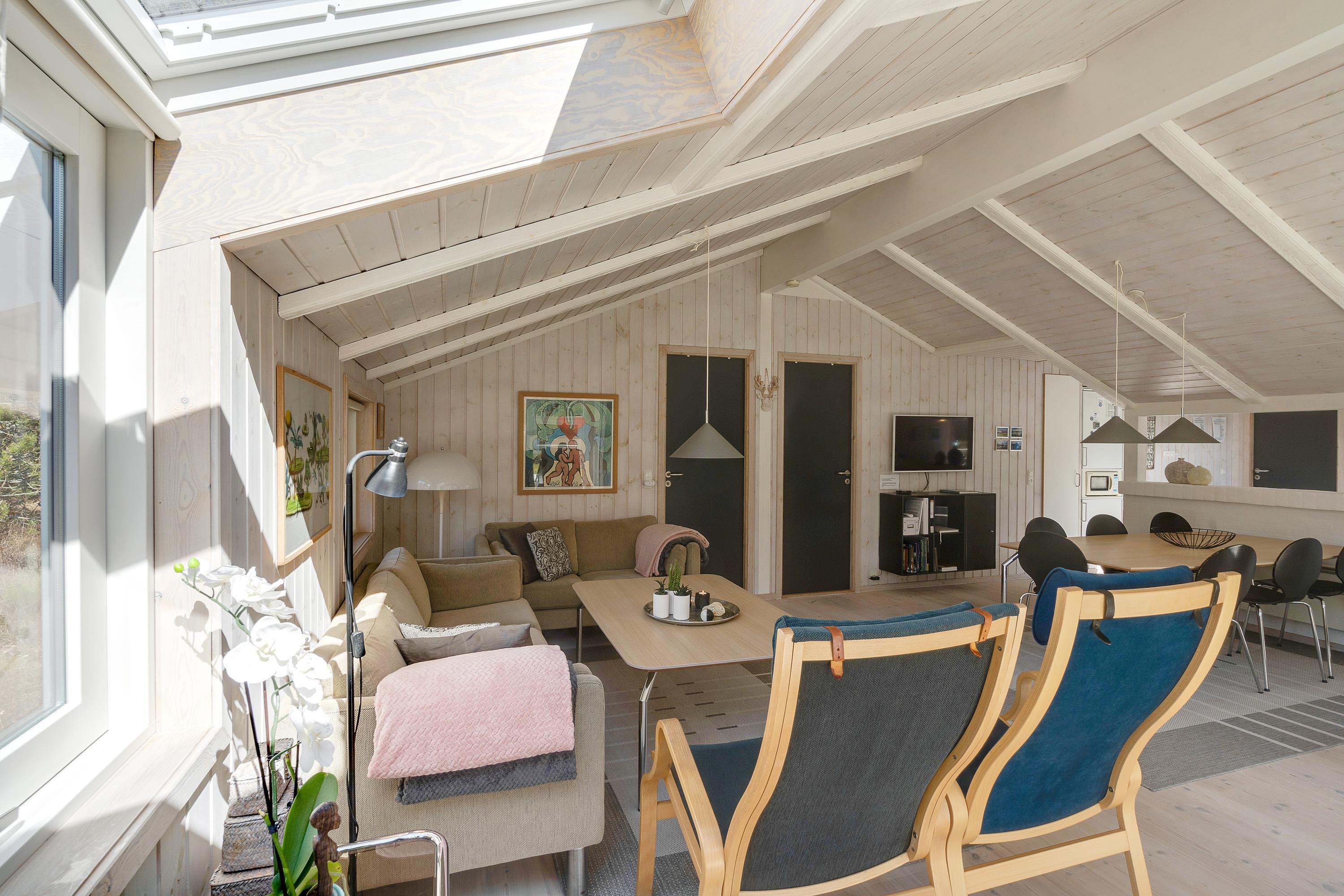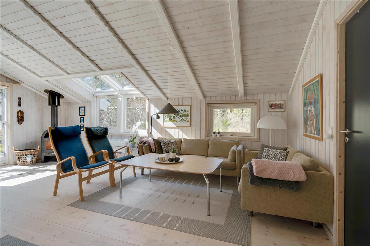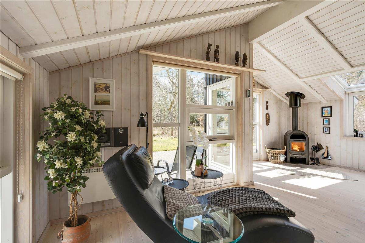 This idyllically situated holiday home on Poul Helgesensvej 6 is perfect for nature lovers. Here you'll find traditional holiday charm with sloping ceilings and a wood-burning stove. Extended roof windows flood the rooms with natural light, and you'll feel at ease in the comfortable furnishings.