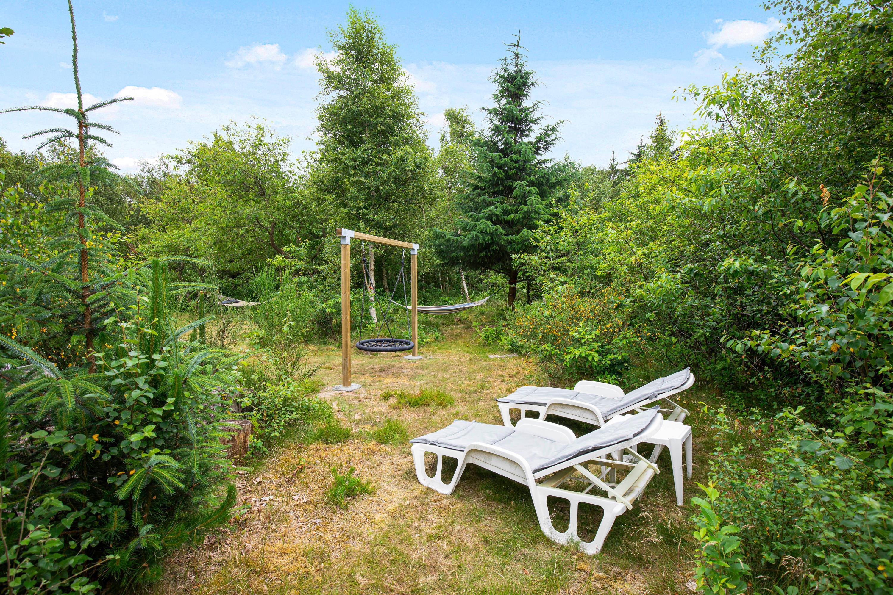 A particular highlight of this holiday home is its location on a completely private, tree-surrounded plot in natural surroundings. Both the sun terrace and the covered section invite you to enjoy this tranquillity outdoors as often as possible. Five sun loungers are provided, and a baby swing and hammock hang in the shade of the trees.