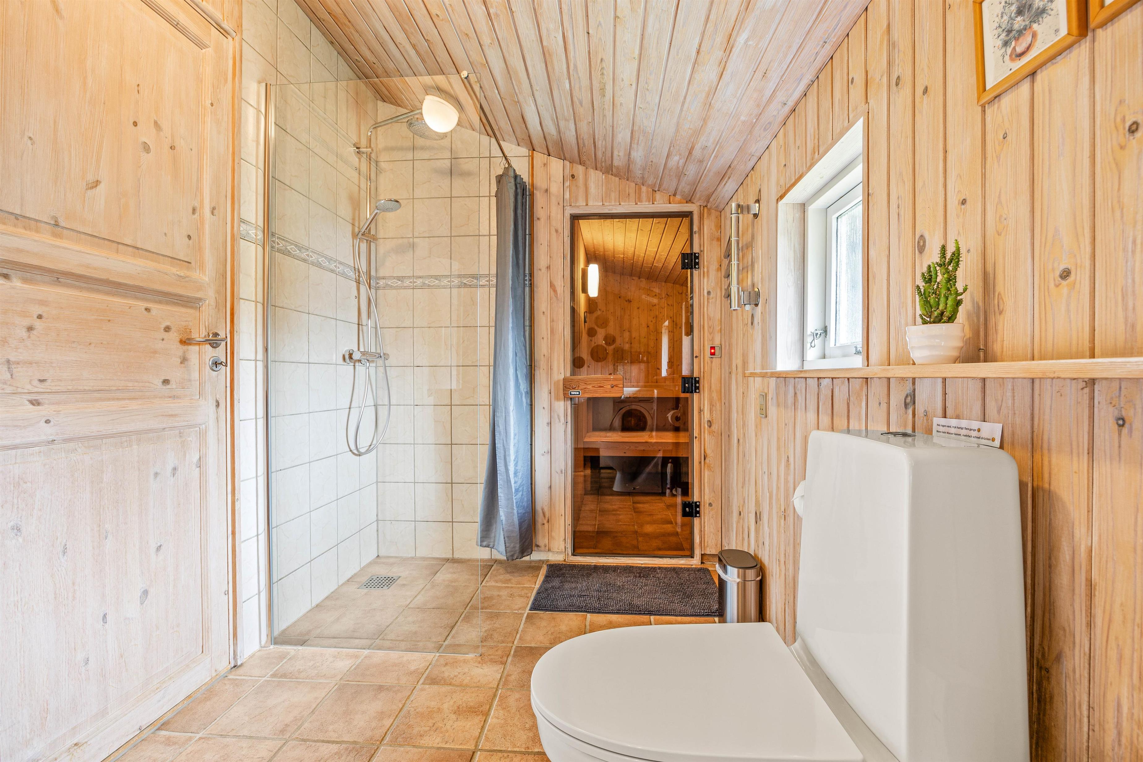 The sauna is accessed directly from the bathroom - perfect for warming up after a long walk in the North Sea breeze.
