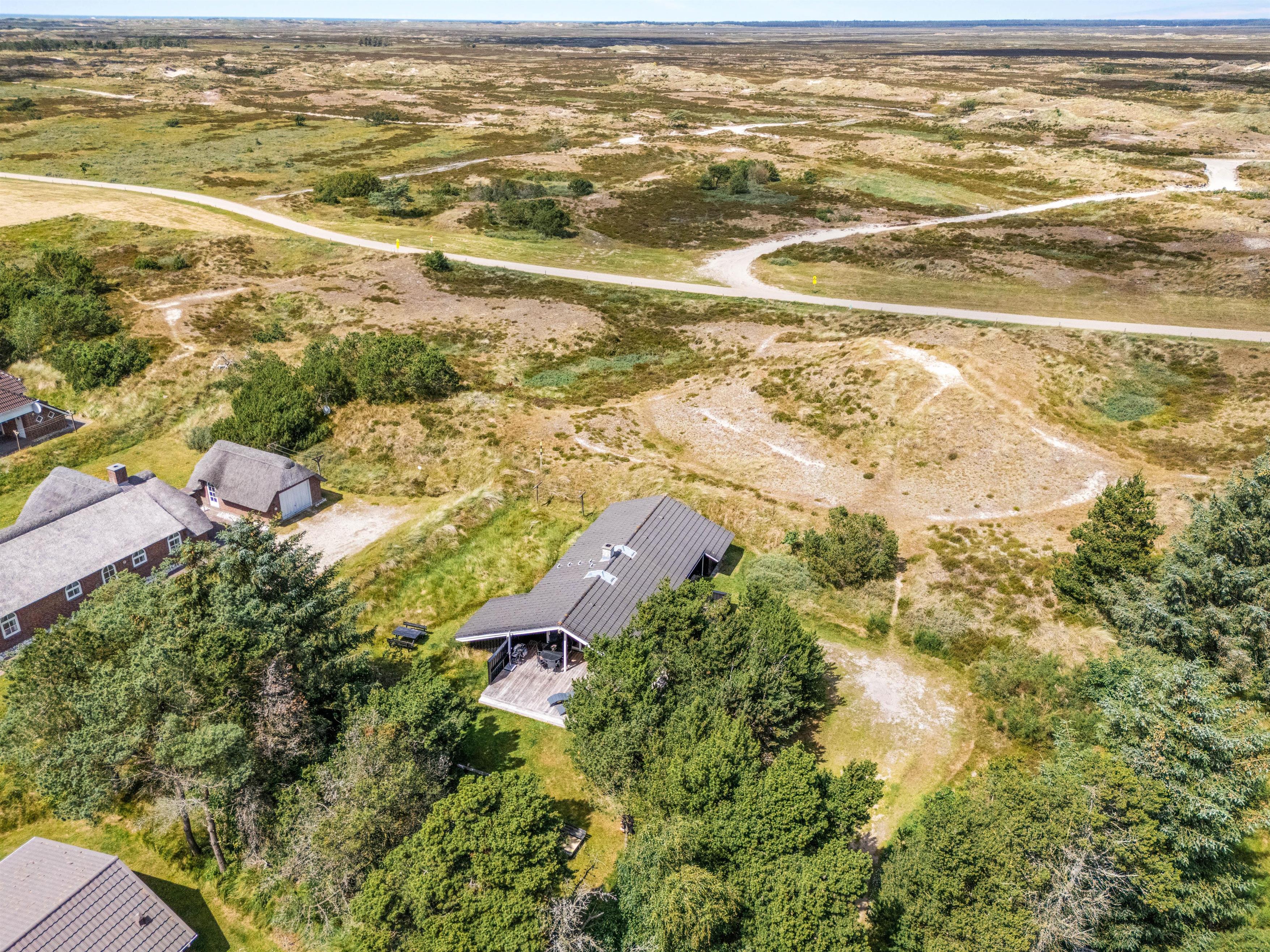 This cosy holiday home for 6 people is surrounded by the unique nature of Denmark's west coast. Located at Hedetoftvej 78 in Blåvand, it offers a relaxing holiday for the whole family. Children have plenty of space to play on the large natural grounds, complete with swing and sandpit. The bright, modern interior featuring a sauna and wood-burning stove creates a perfect setting for comfortable holiday moments.