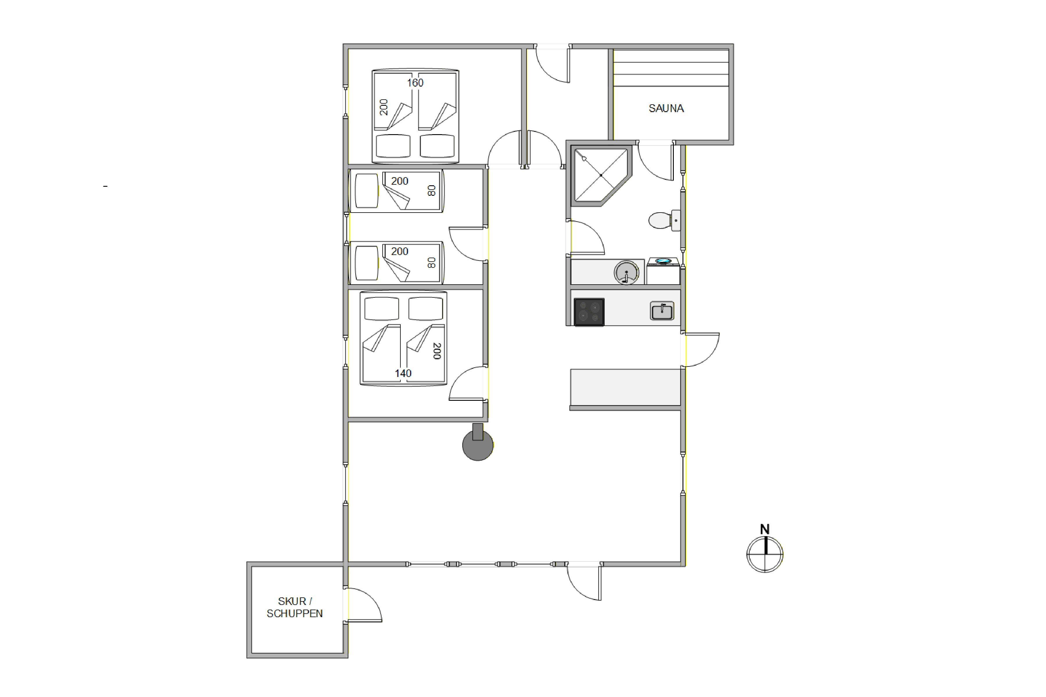 The holiday home has three bedrooms in total - one with twin beds and two with double beds. Surrounded by the tranquility of nature, you're sure to enjoy restful holiday sleep.