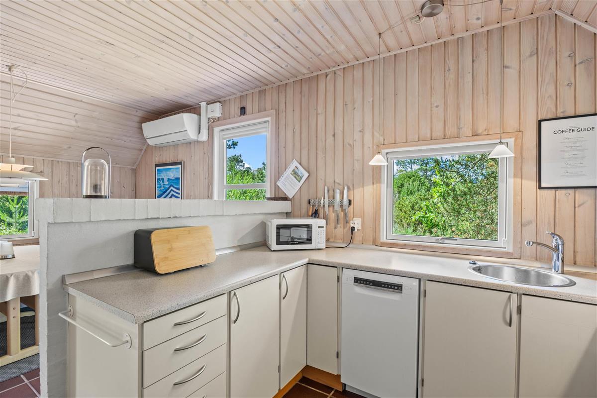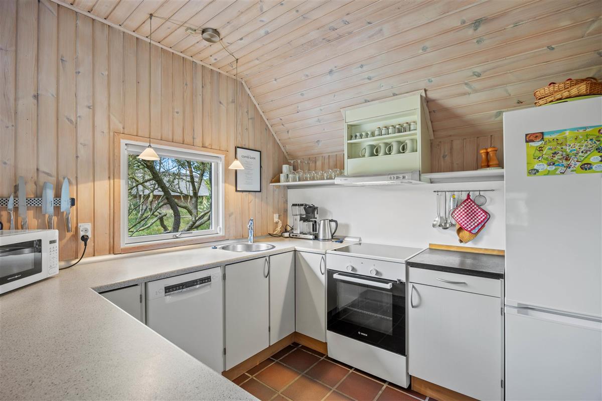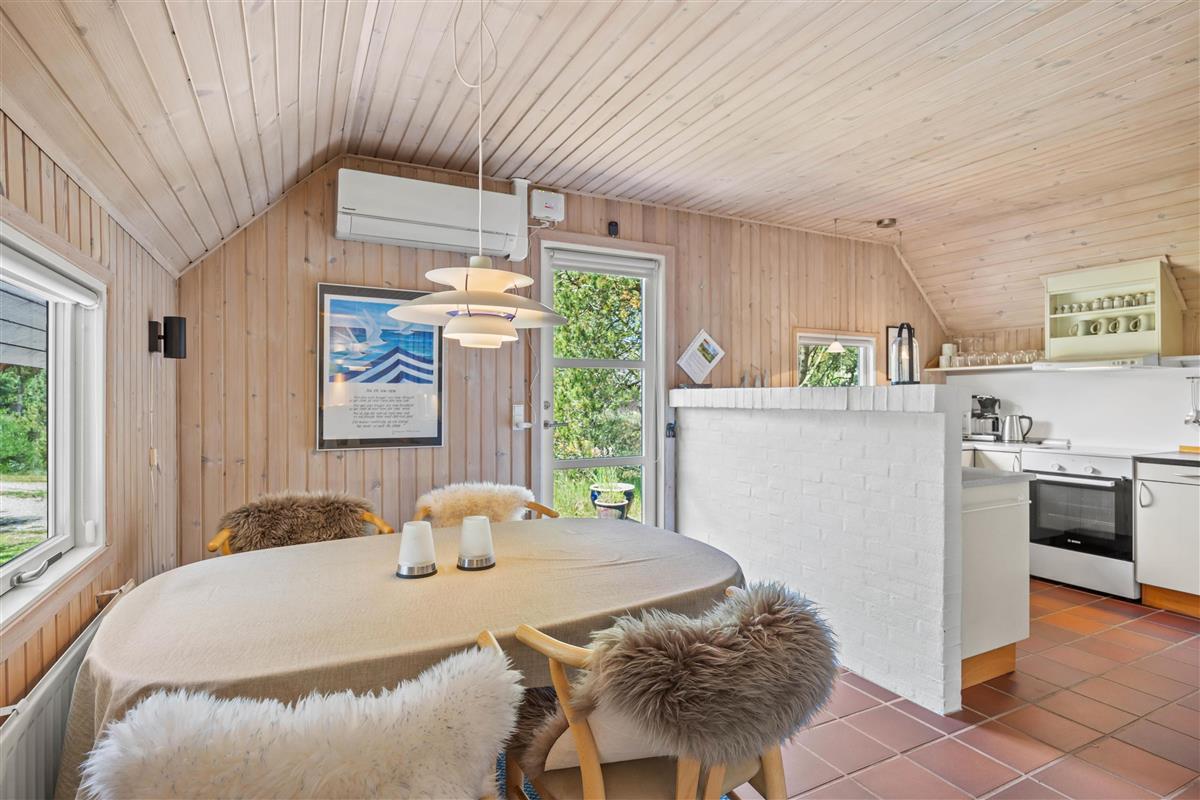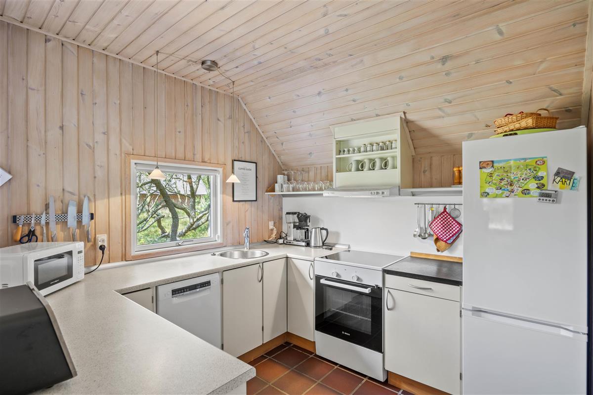 This cosy holiday home, accommodating 4 people, is situated on an idyllic plot surrounded by pine trees. Relaxation is the main focus at this holiday holiday home at Kallesmærskvej 16.