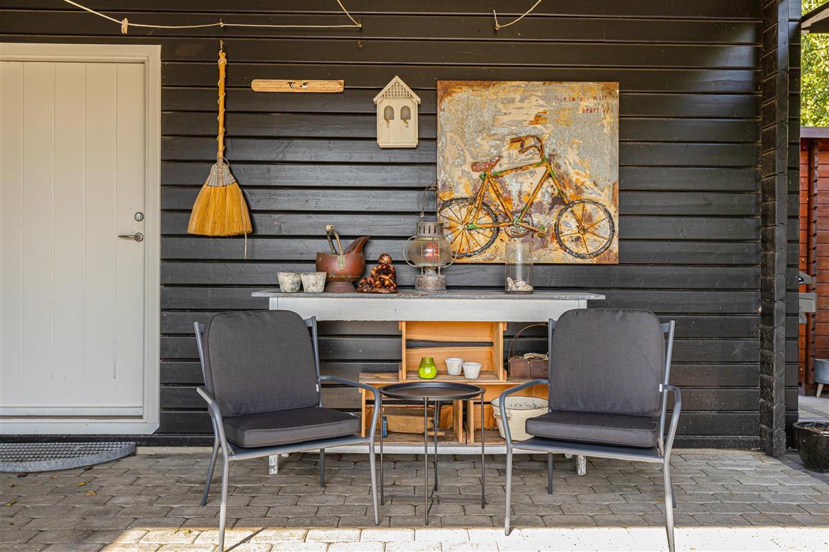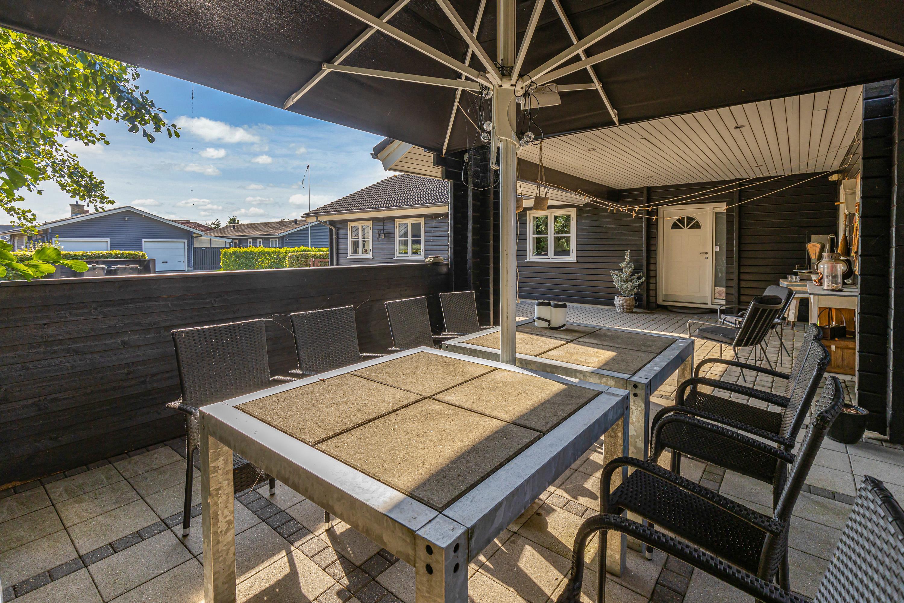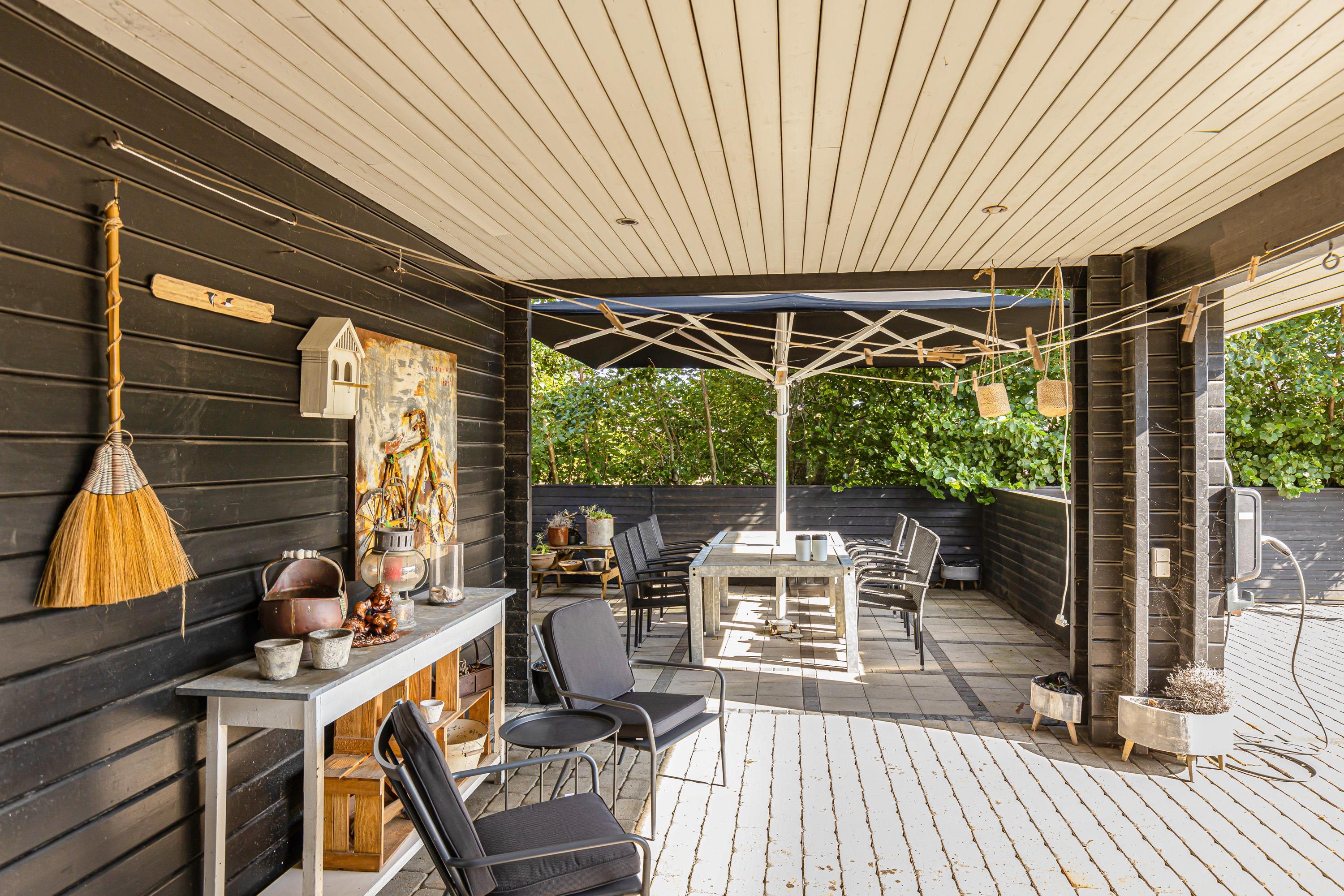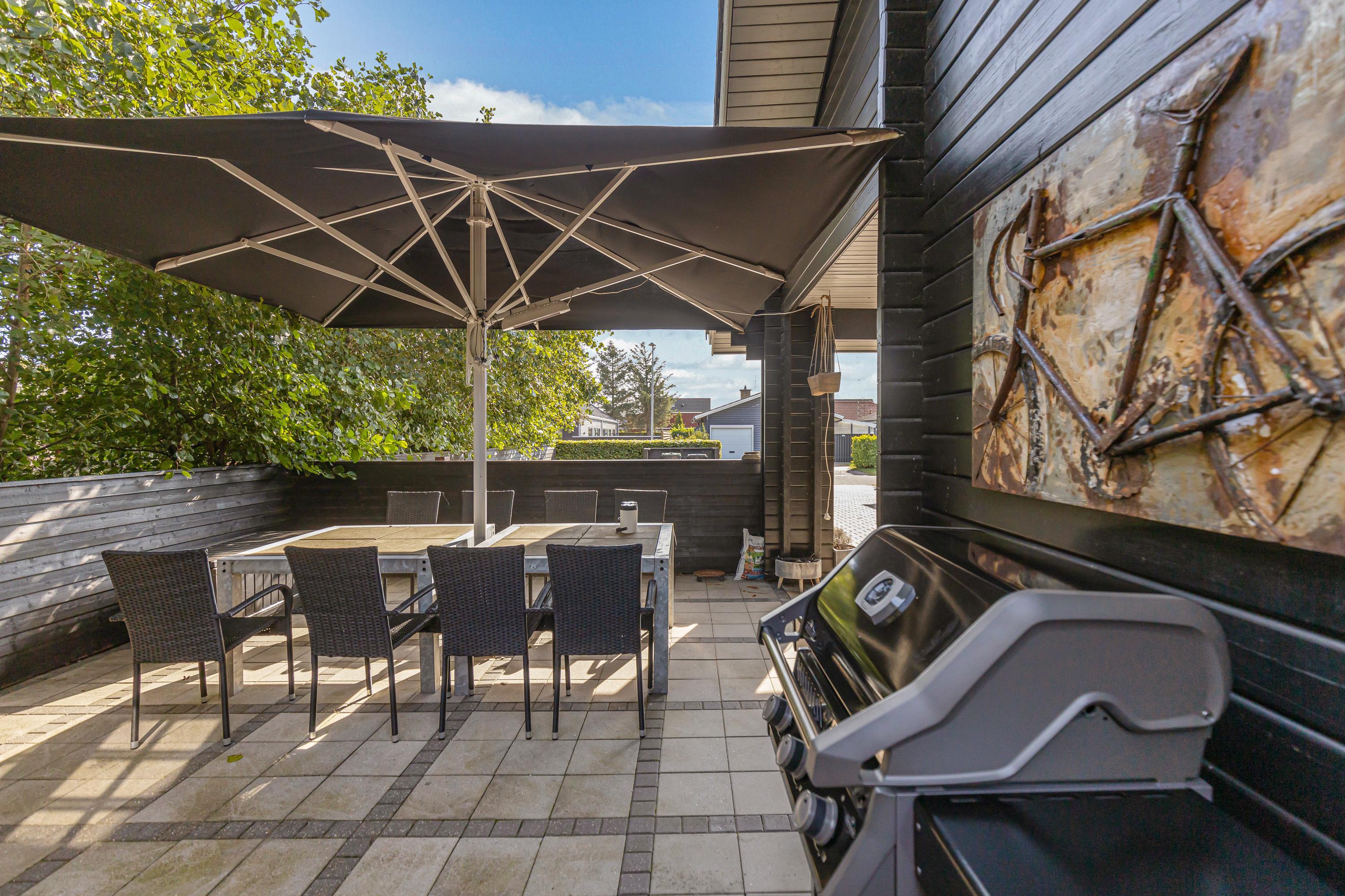 The outdoor area is perfect for social gatherings such as barbecue evenings, with the choice of an open terrace or covered terrace on the opposite side of the house, depending on the weather.