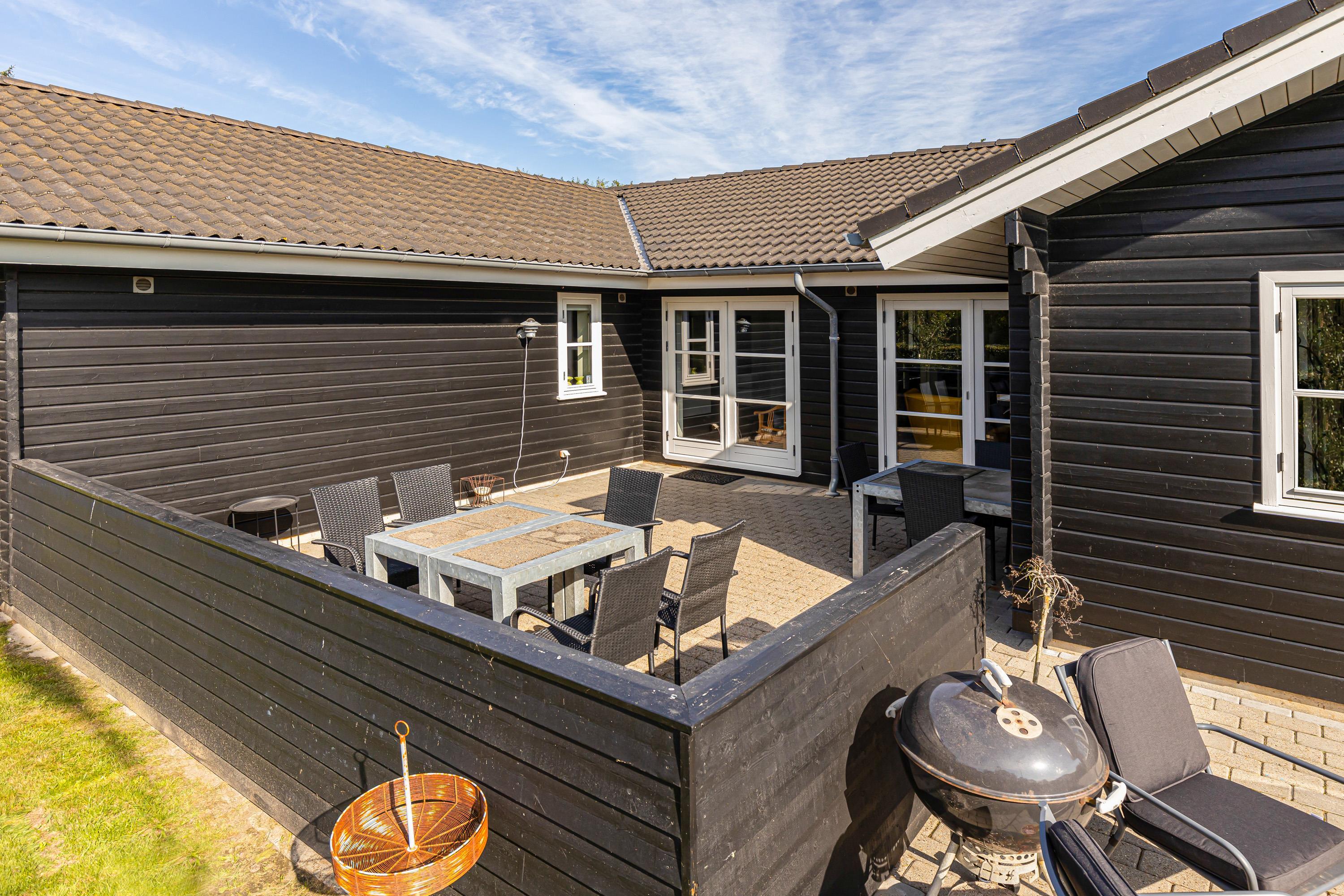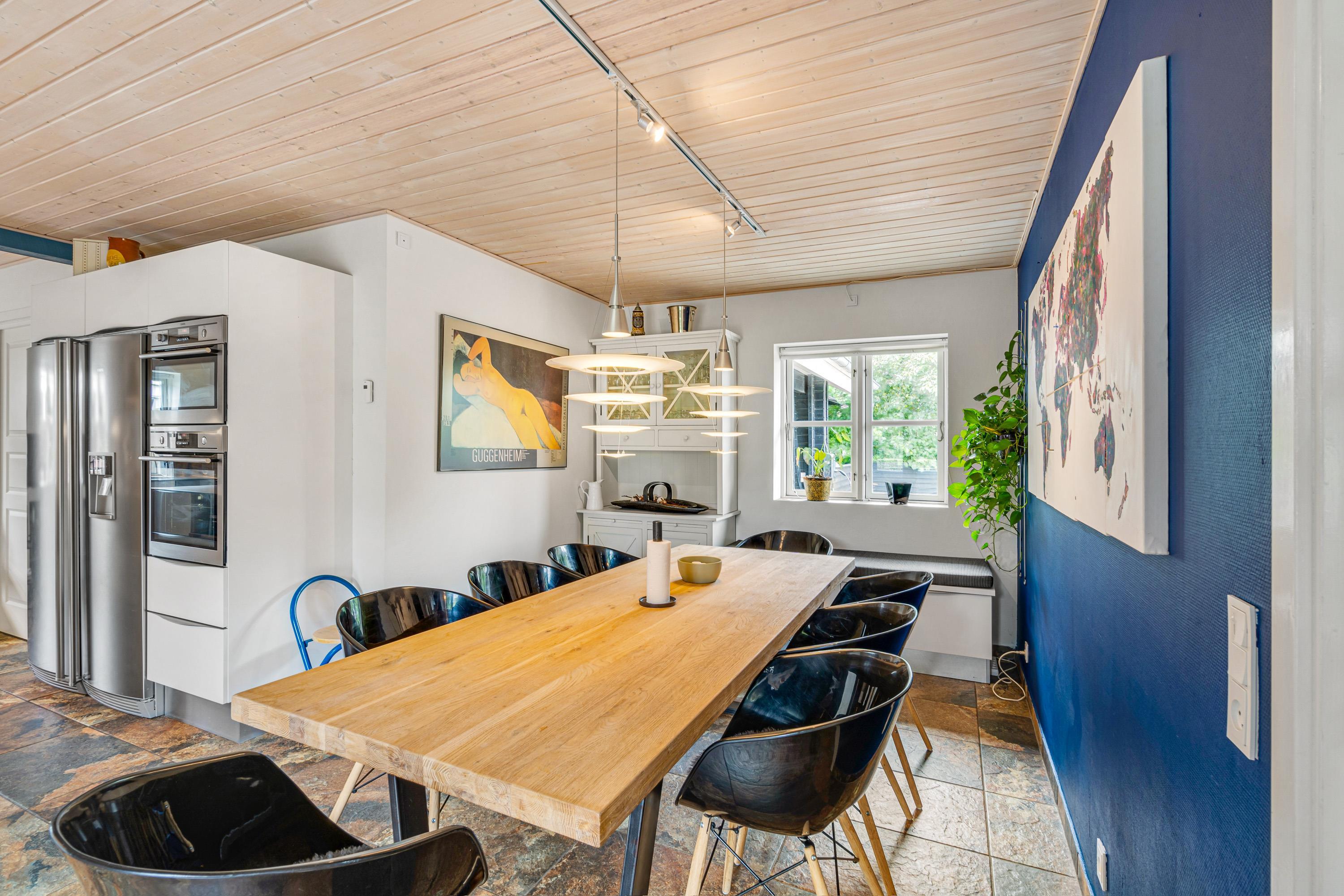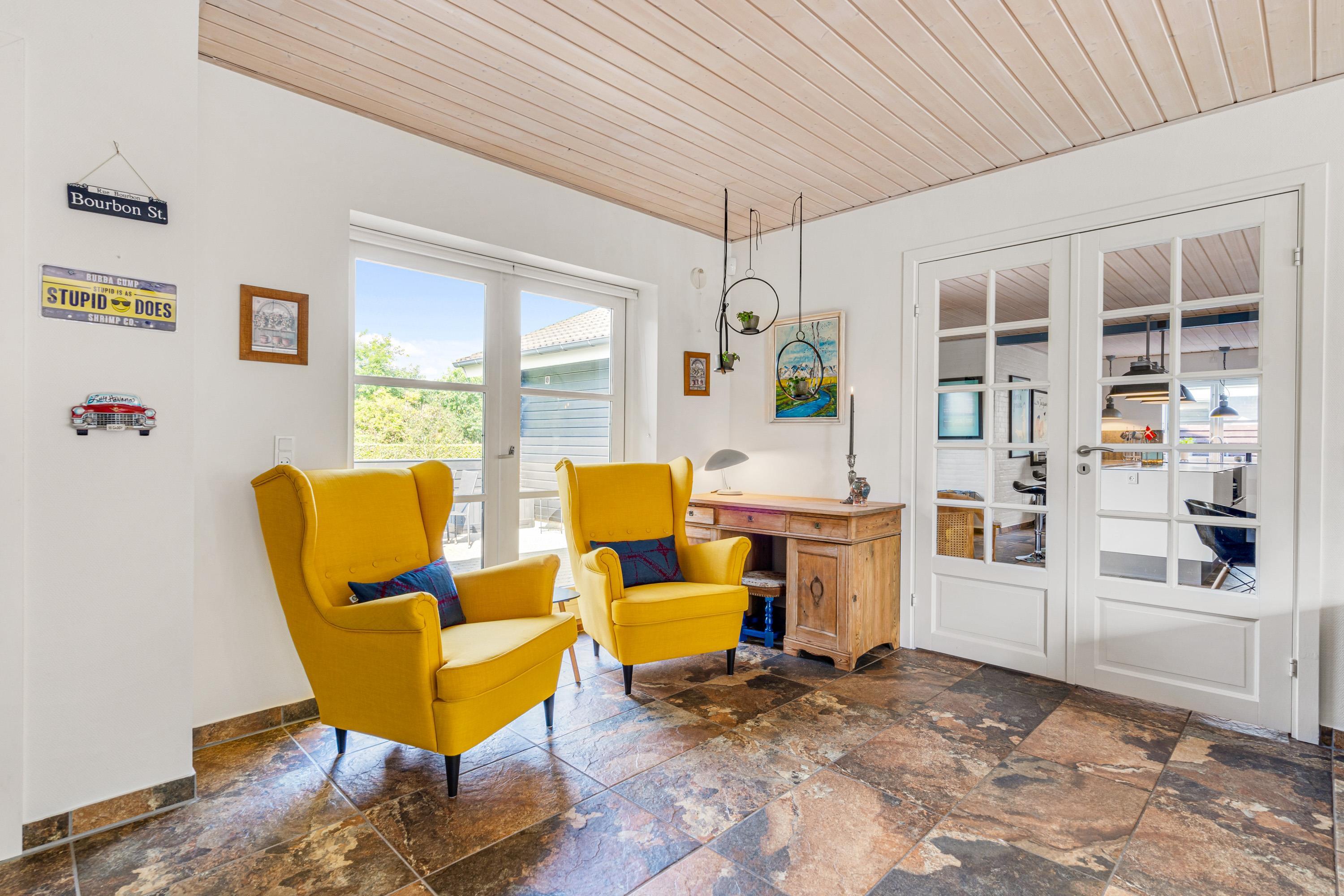 The holiday home at Bytoften 1 is ideal for socialising whilst offering plenty of private space. With five televisions and Chromecast available, there's no need to compromise on entertainment choices. The crackling wood-burning stove adds to the cosy atmosphere in the living room.