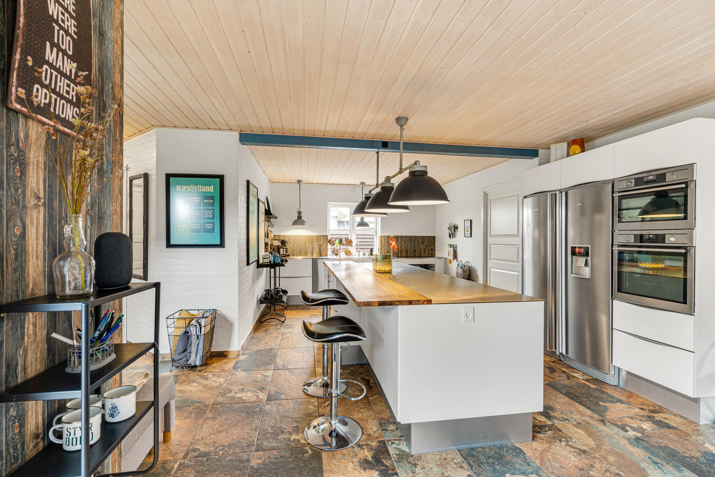 As you enter the spacious living and dining area, cooking enthusiasts will be delighted by the high-quality kitchen featuring a large central island, Quooker boiling water tap and wine fridge - perfect for experimenting with Danish cuisine. If you've forgotten anything, the centre of Blåvand is just 500 metres away.