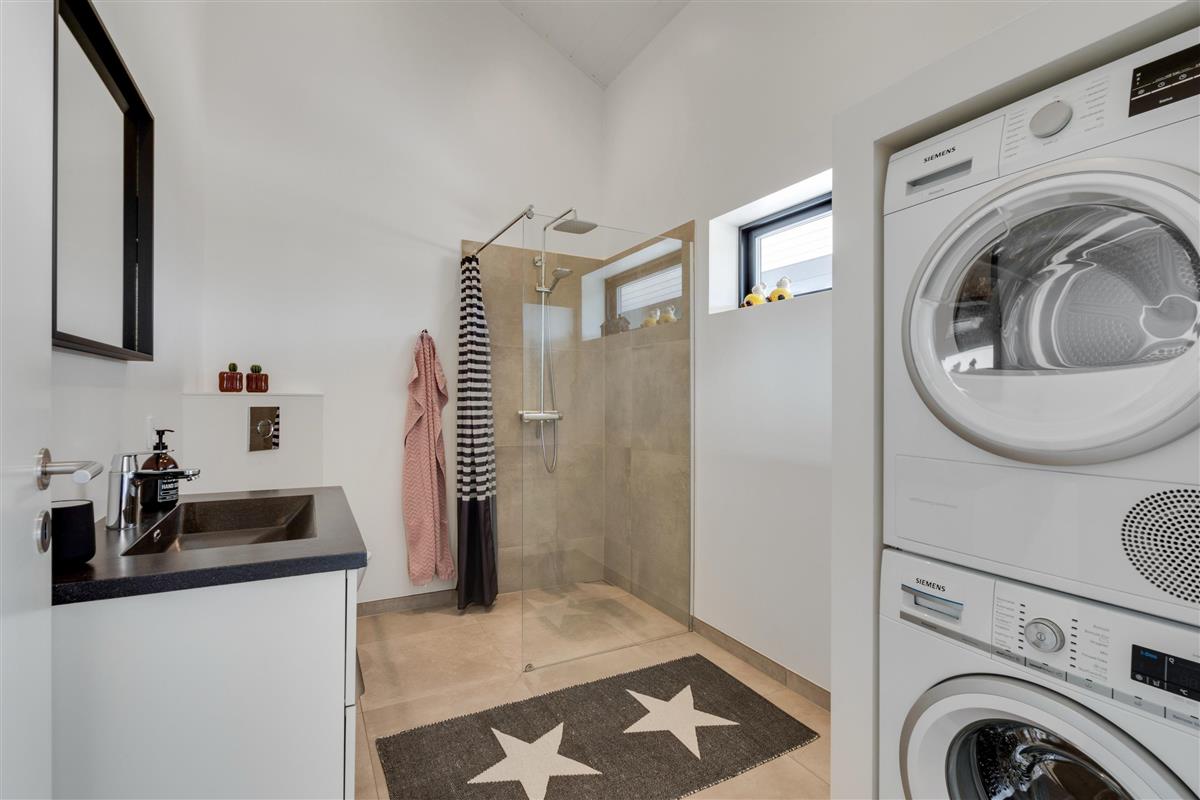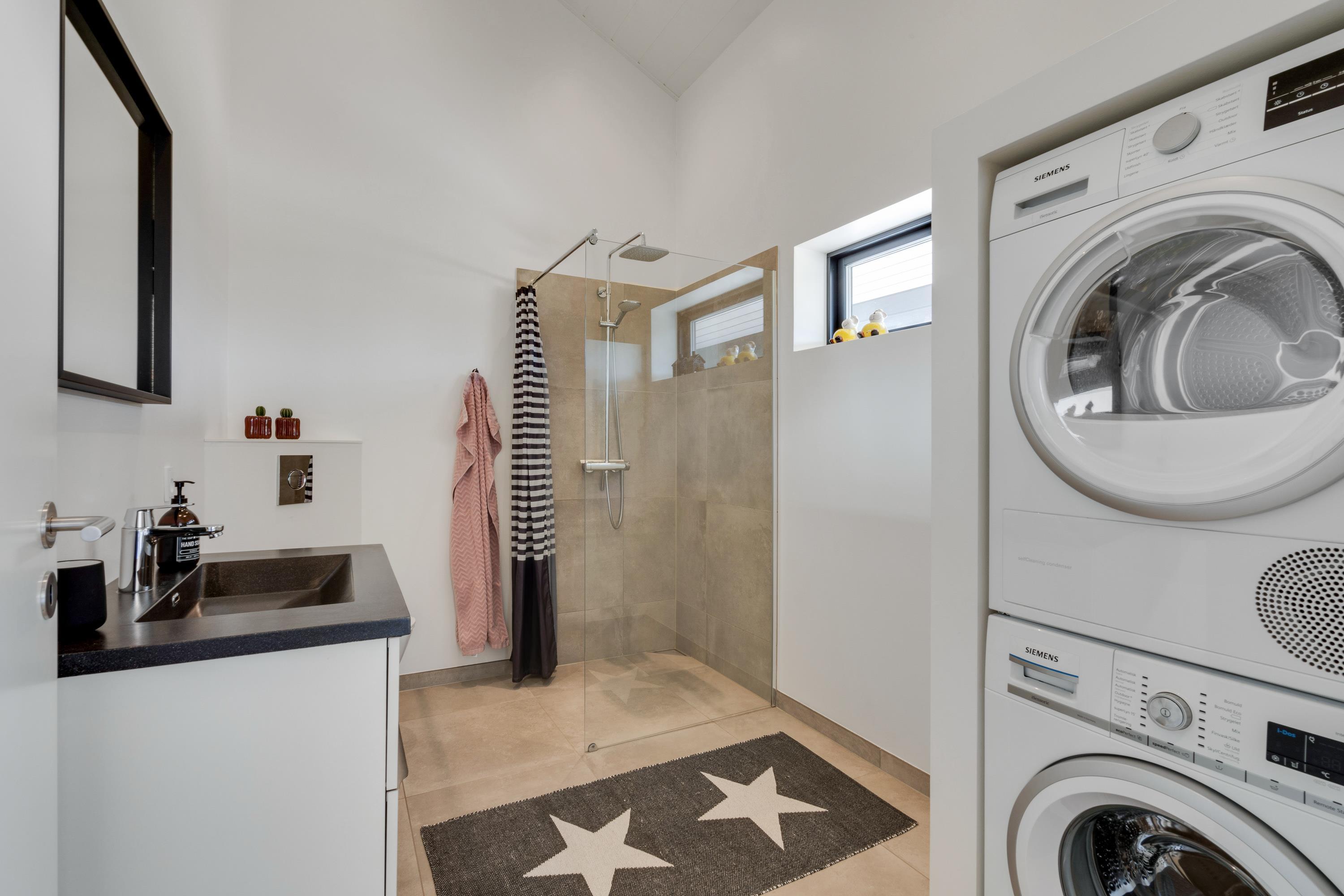 The holiday home features two bathrooms, both with underfloor heating, one equipped with a washing machine and tumble dryer. With two bathrooms, there's no morning queue for the facilities.