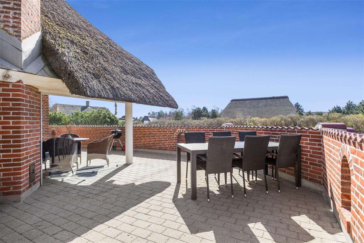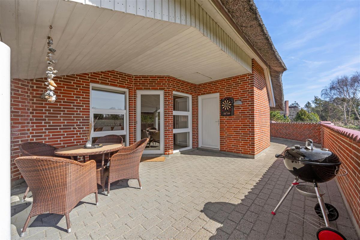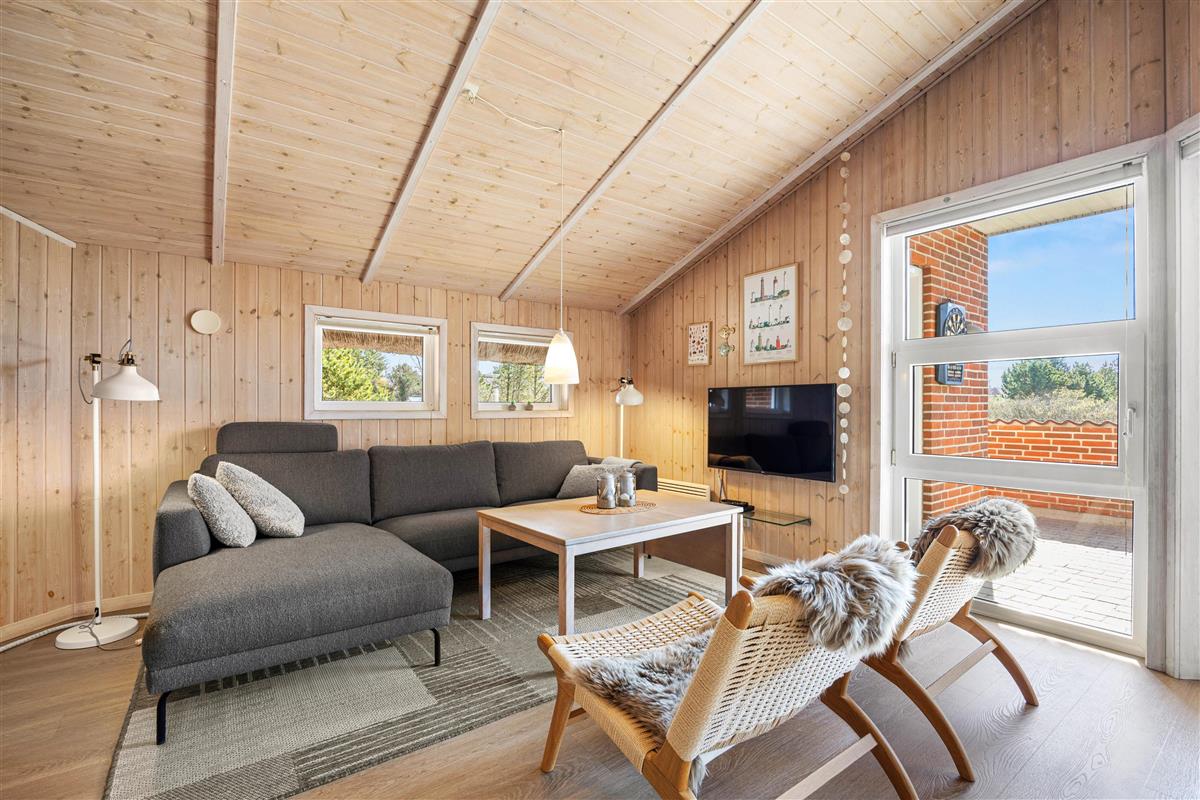 This Blåvand holiday home offers not only a beautiful Scandinavian-style interior but also a magnificent outdoor area that leaves nothing to be desired. The generous 1,856-square-metre lawn provides plenty of space for children to play, with a swing for added fun. Enjoy relaxed barbecue evenings on the covered and screened terrace, furnished with comfortable garden furniture.