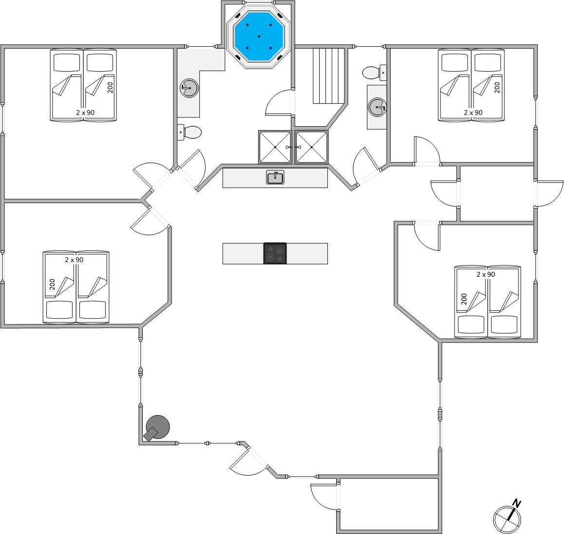 This welcoming holiday home in Blåvand accommodates up to eight guests, providing plenty of space for your family or friends. With four spacious bedrooms, featuring two double beds and four single beds, you'll sleep as comfortably as at home. Two modern bathrooms allow you to start your day refreshed or end it with a luxurious soak in the whirlpool.