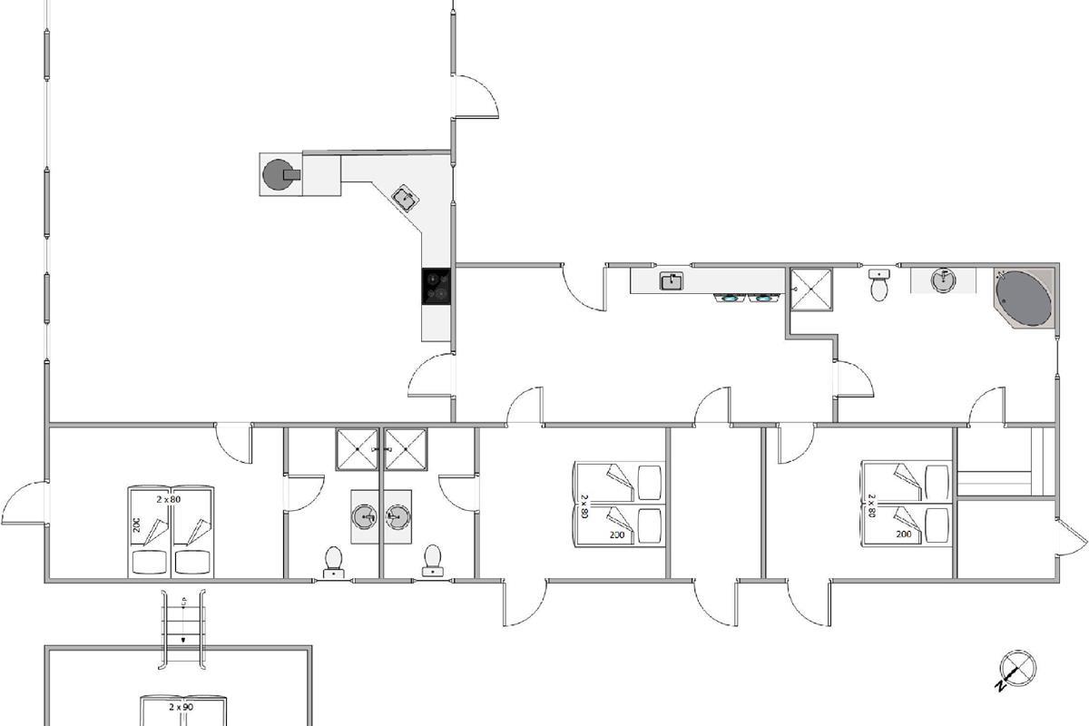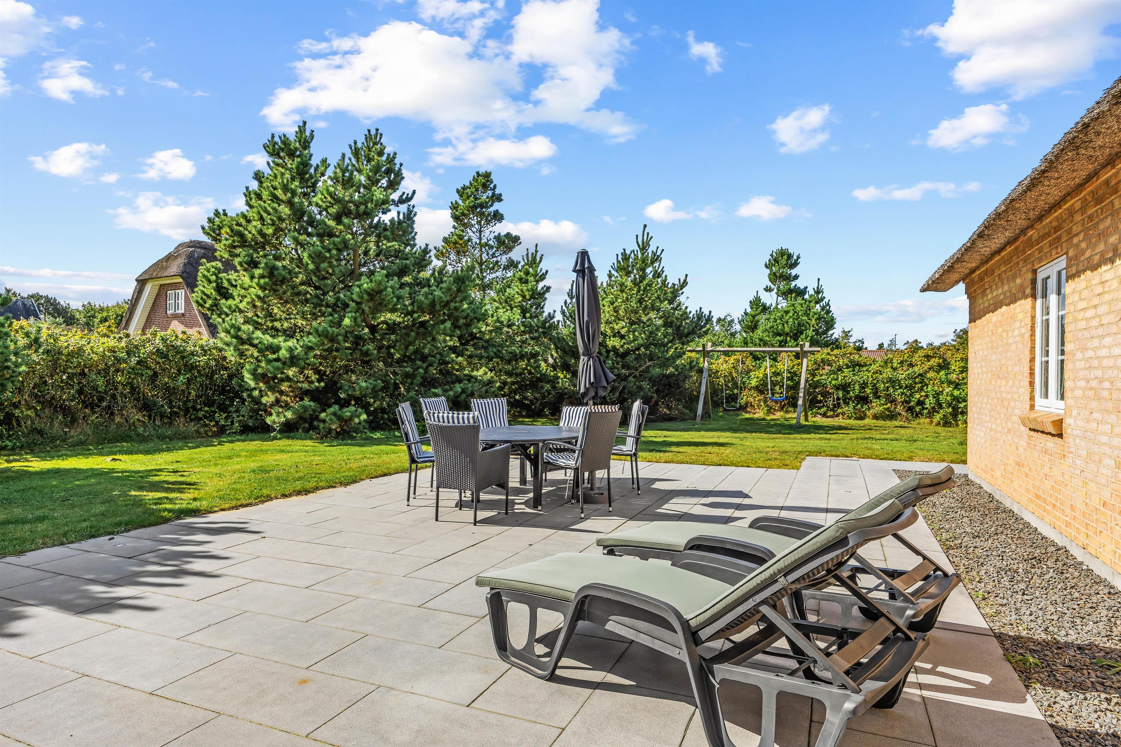 The house sits on a generous plot with plenty of space on the terrace for relaxation or games. The lawn offers ample room for little ones to play. Children will love the swing set and sandpit, where they can play whilst you relax and sunbathe on the terrace. During summer months from 1st April until 31st October, you can cool off under the outdoor shower.