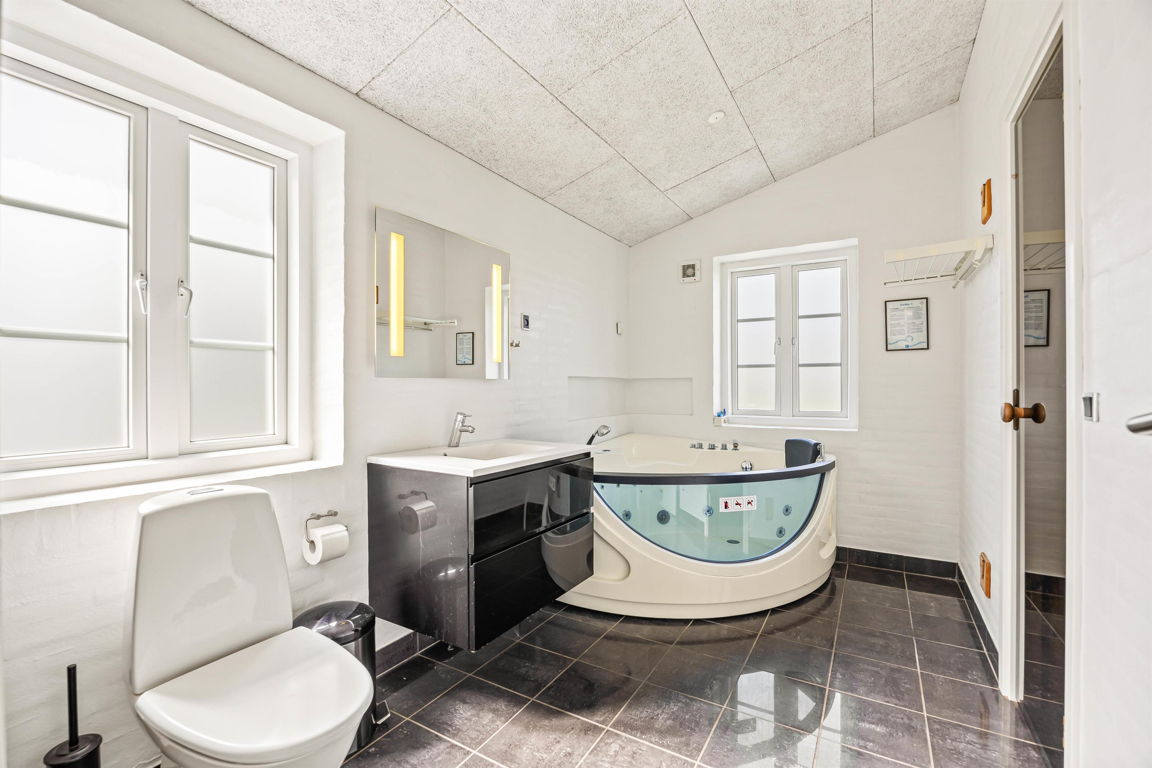 Inside, you'll find everything that makes a perfect holiday. This spacious holiday home features three bathrooms (two en-suite), which is particularly convenient in the mornings. The holiday home also includes a hot tub and sauna. Forget your everyday cares as you sink into the warm, bubbling water. For those seeking extra warmth, the house's own sauna provides the perfect retreat.