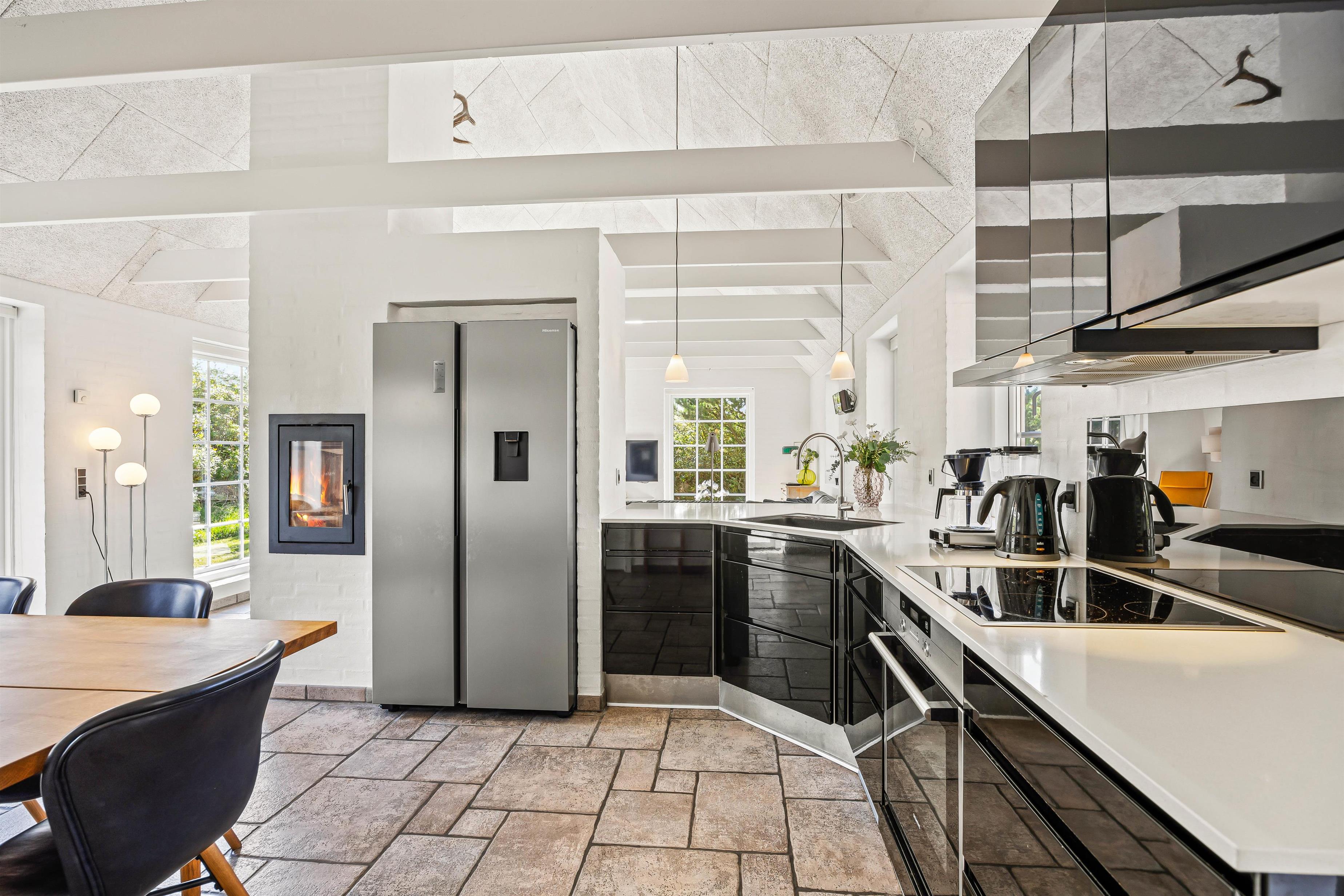 The wood-burning stove in the living room creates a cosy atmosphere and perfect holiday ambiance. Especially during cooler days and the winter season, it's wonderful to end the day with crackling flames filling the room with warmth.