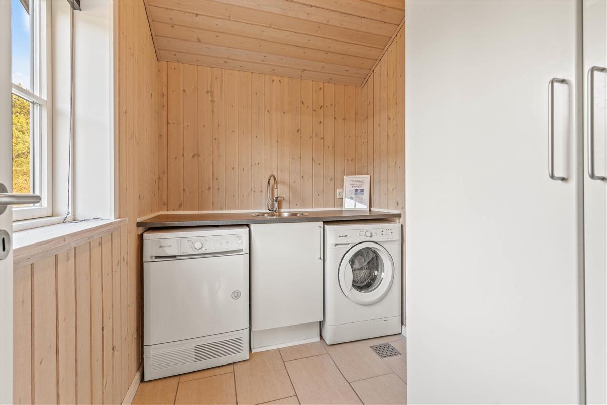 The holiday home at Sønder Vasevej 39 has two bathrooms, ensuring no long queues during morning routines. Both bathrooms have underfloor heating. One bathroom is part of the wellness area, where you can enjoy undisturbed sauna sessions or relax in the bubbling warmth of the whirlpool - pure relaxation at its finest.