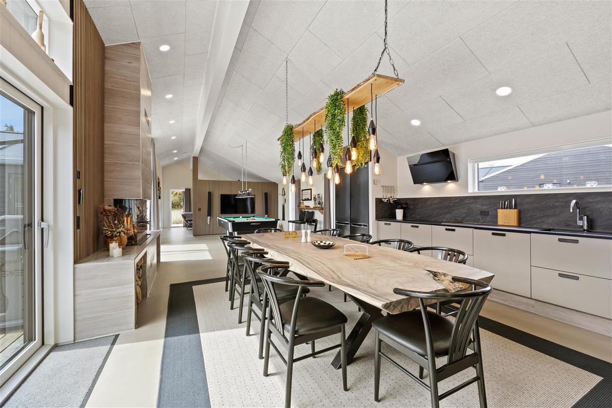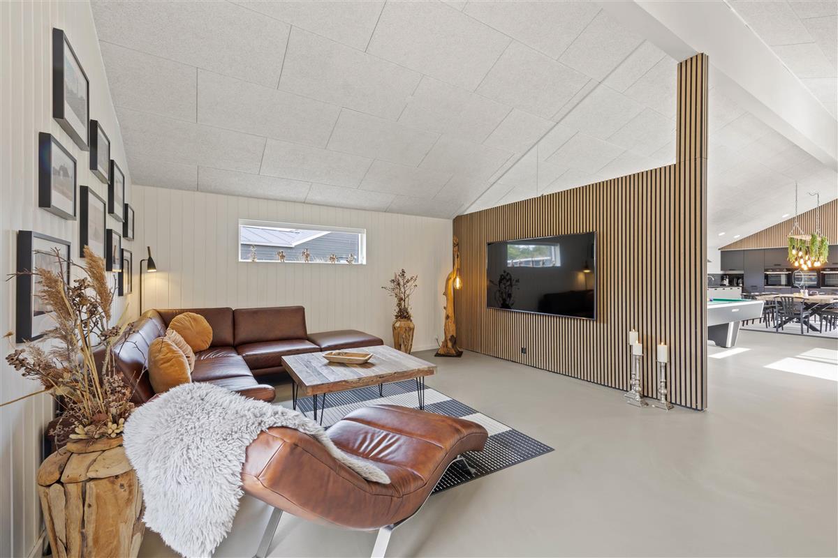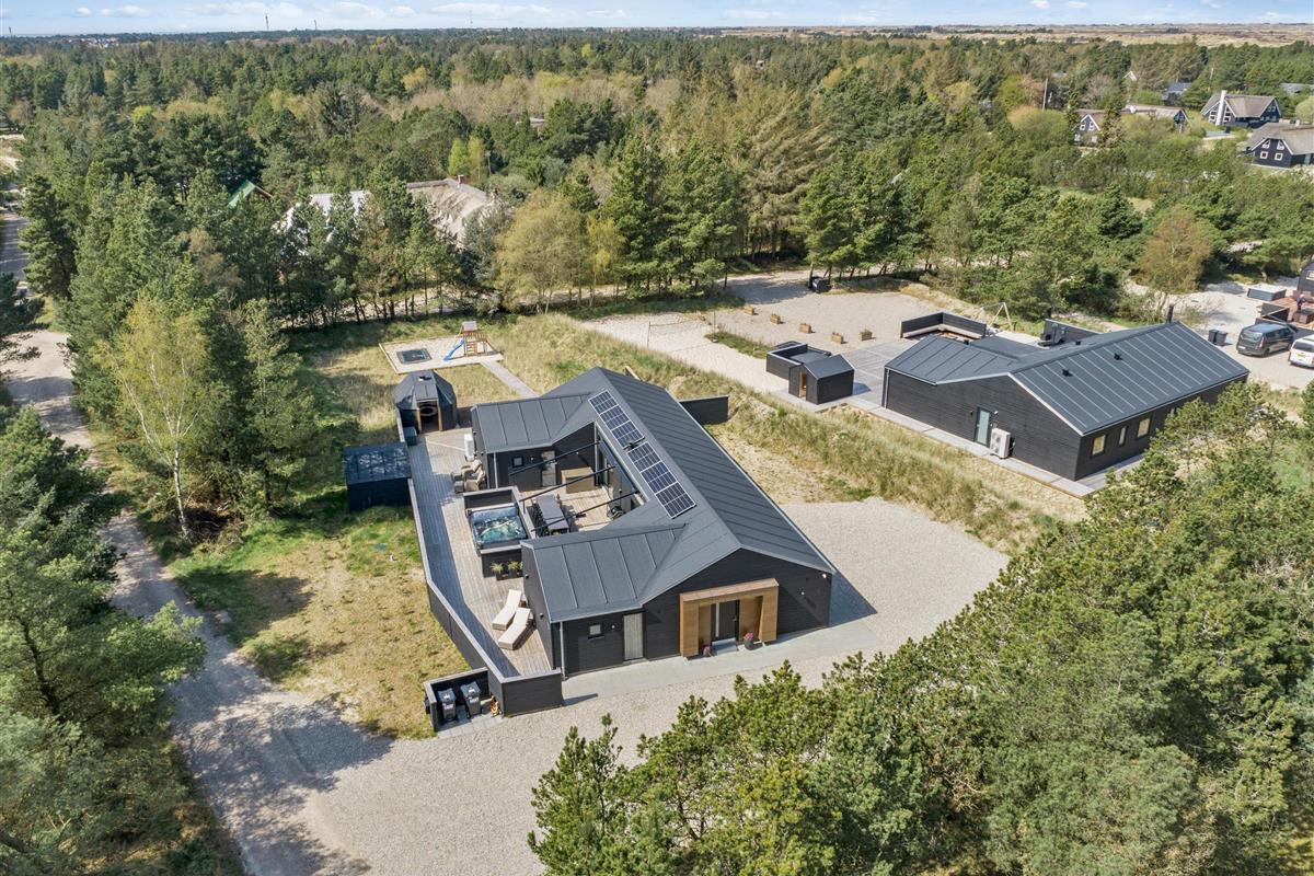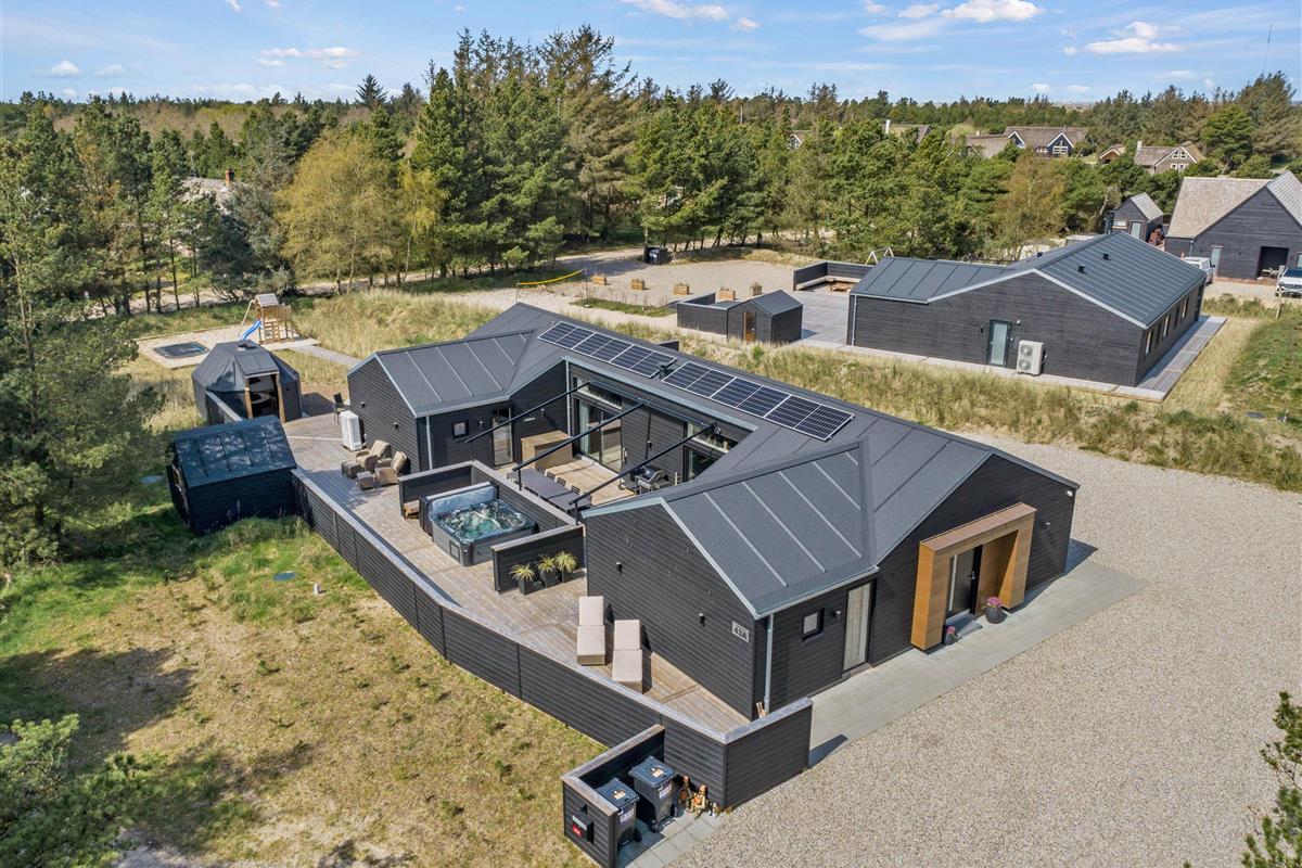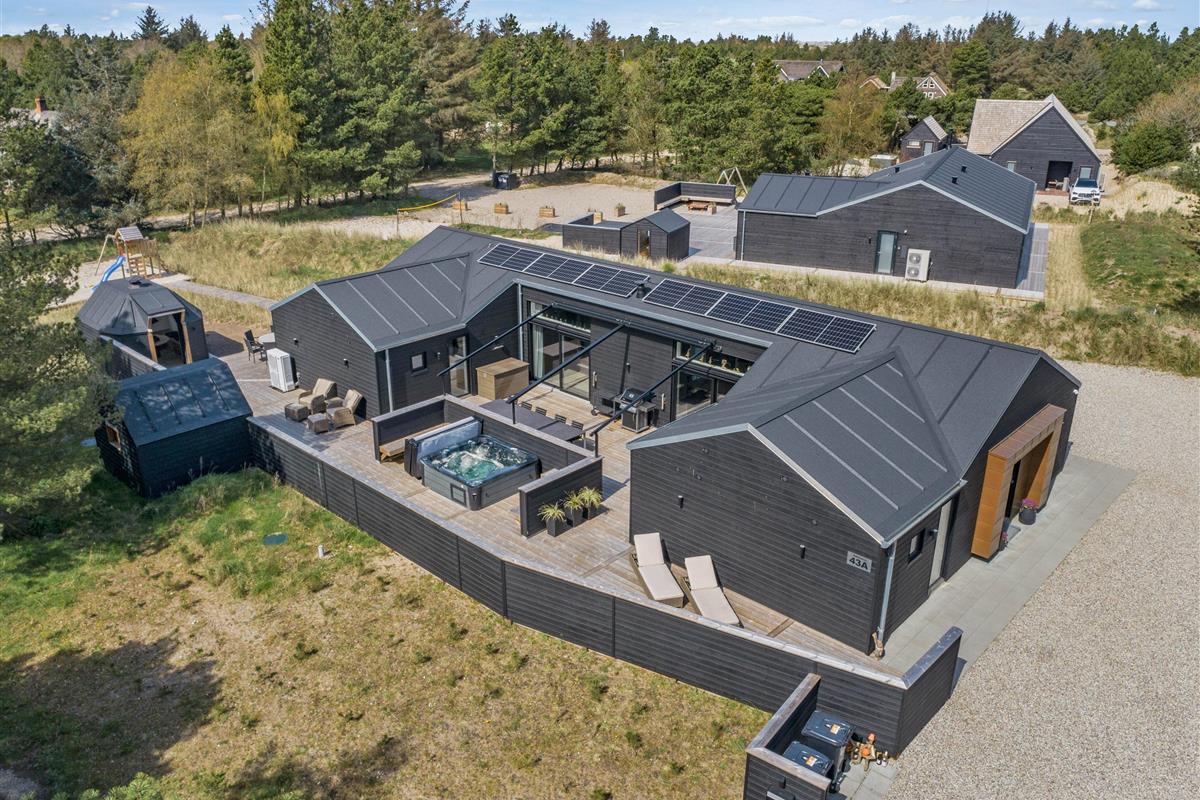 The holiday home features an outdoor hot tub and sauna, pool table, underfloor heating throughout, six bathrooms, and an electric car charging point - to name just a few highlights. Built in 2022, this 200-square-metre holiday home comfortably accommodates up to 10 people for an unforgettable holiday. The installed solar panels ensure energy efficiency and low consumption.