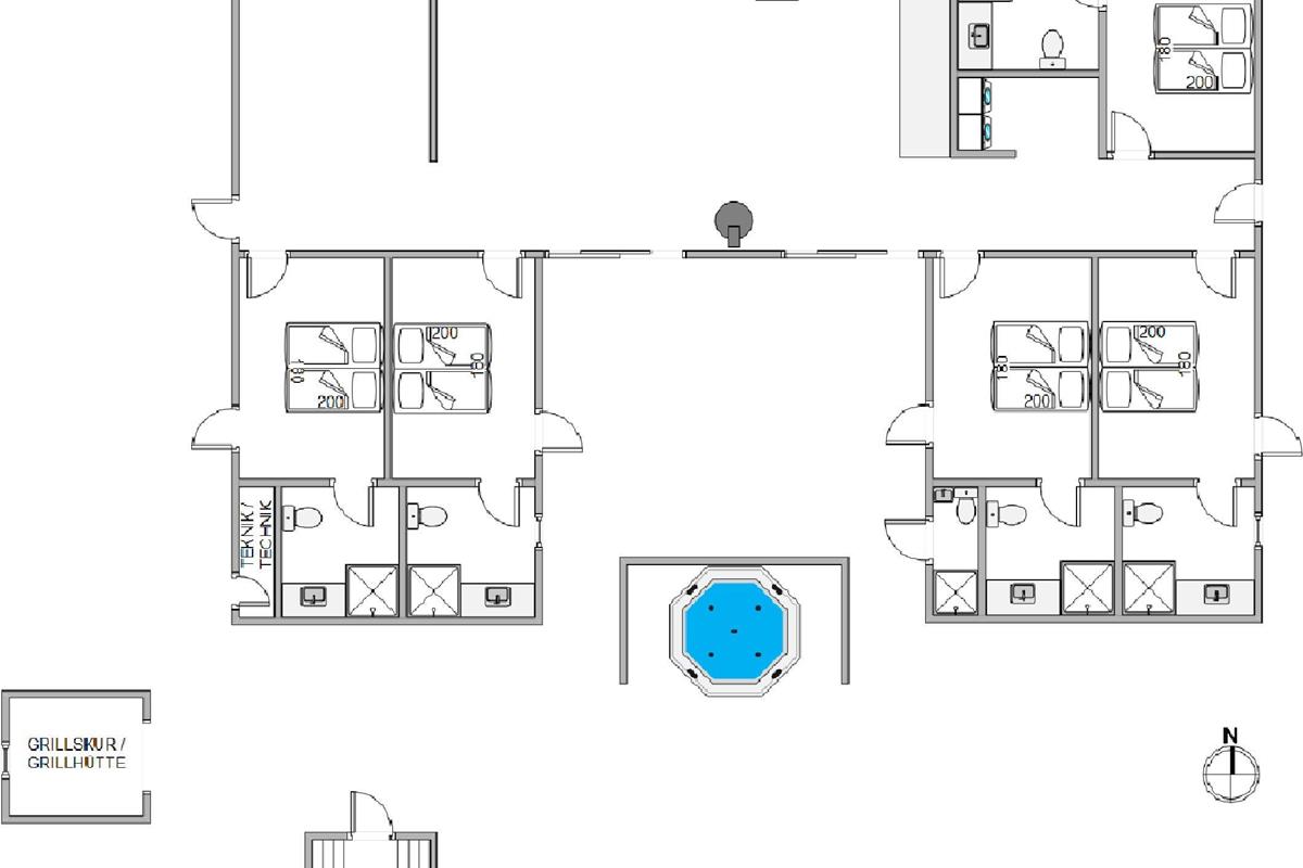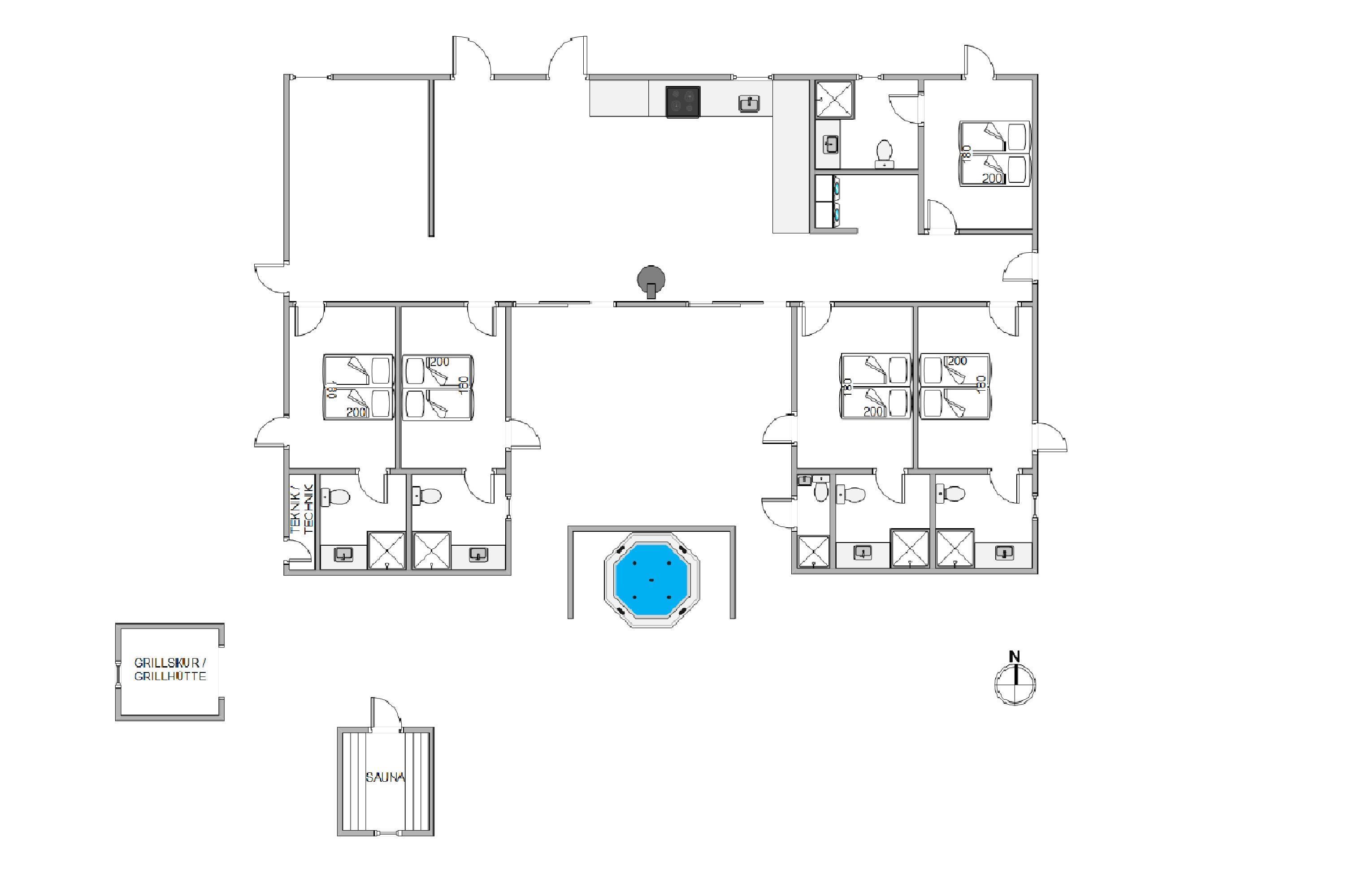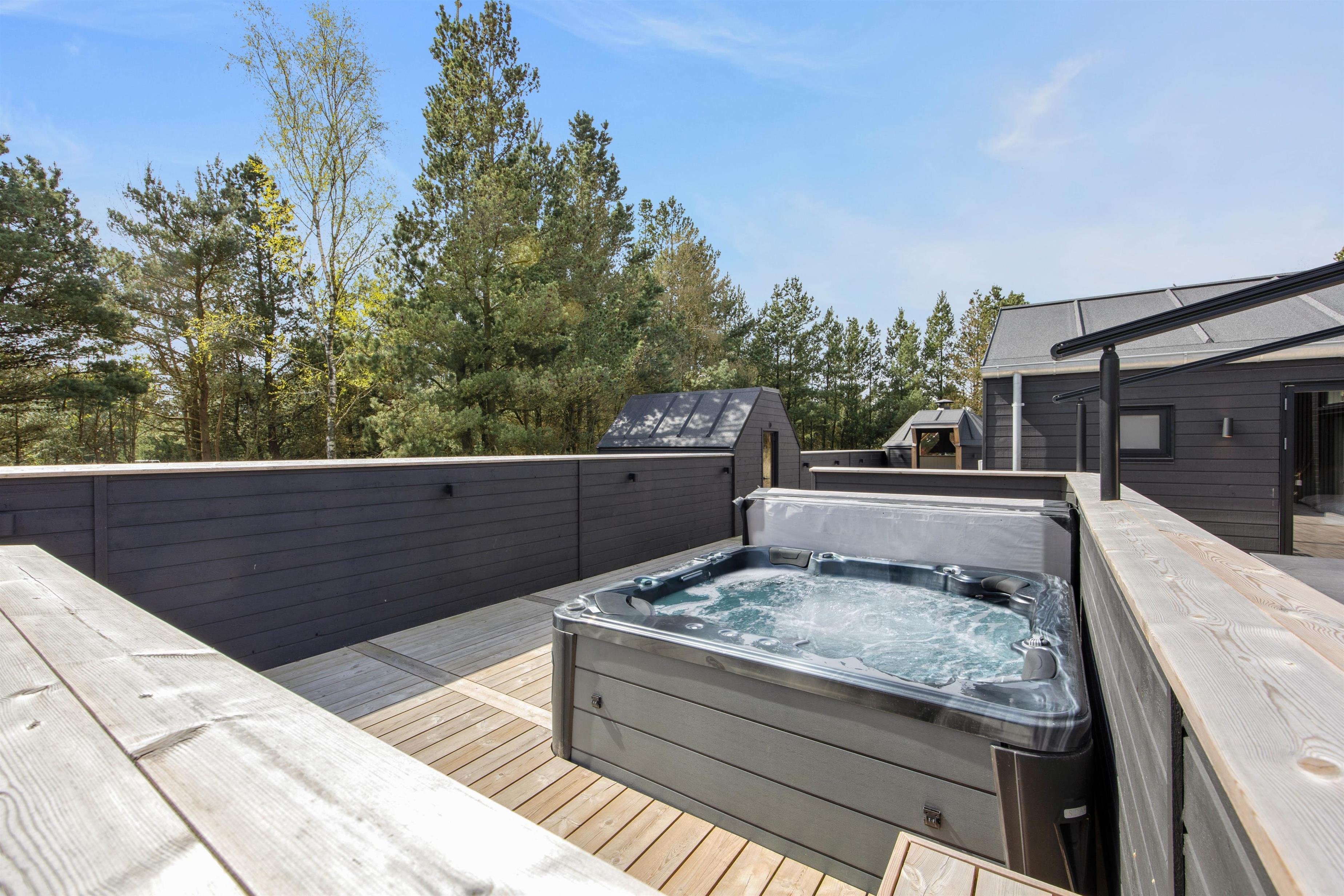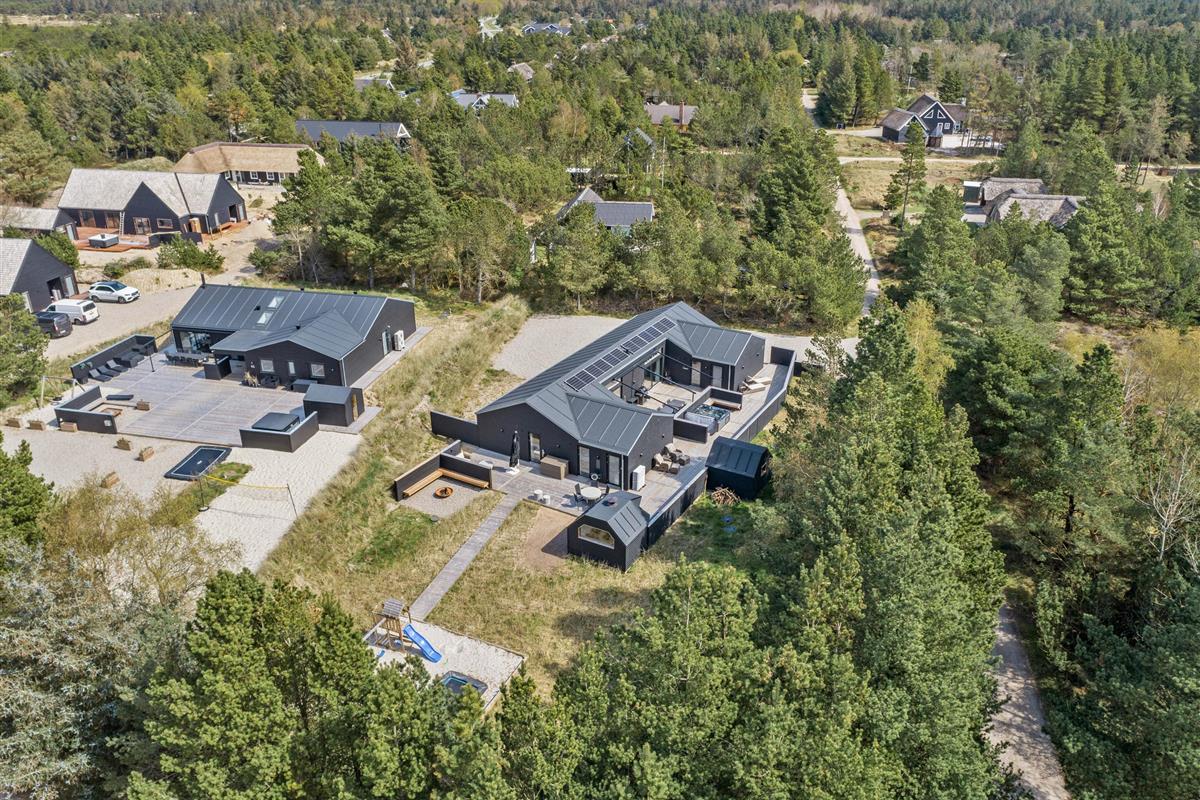 The holiday home features an outdoor hot tub and sauna, pool table, underfloor heating throughout, six bathrooms, and an electric car charging point - to name just a few highlights. Built in 2022, this 200-square-metre holiday home comfortably accommodates up to 10 people for an unforgettable holiday. The installed solar panels ensure energy efficiency and low consumption.