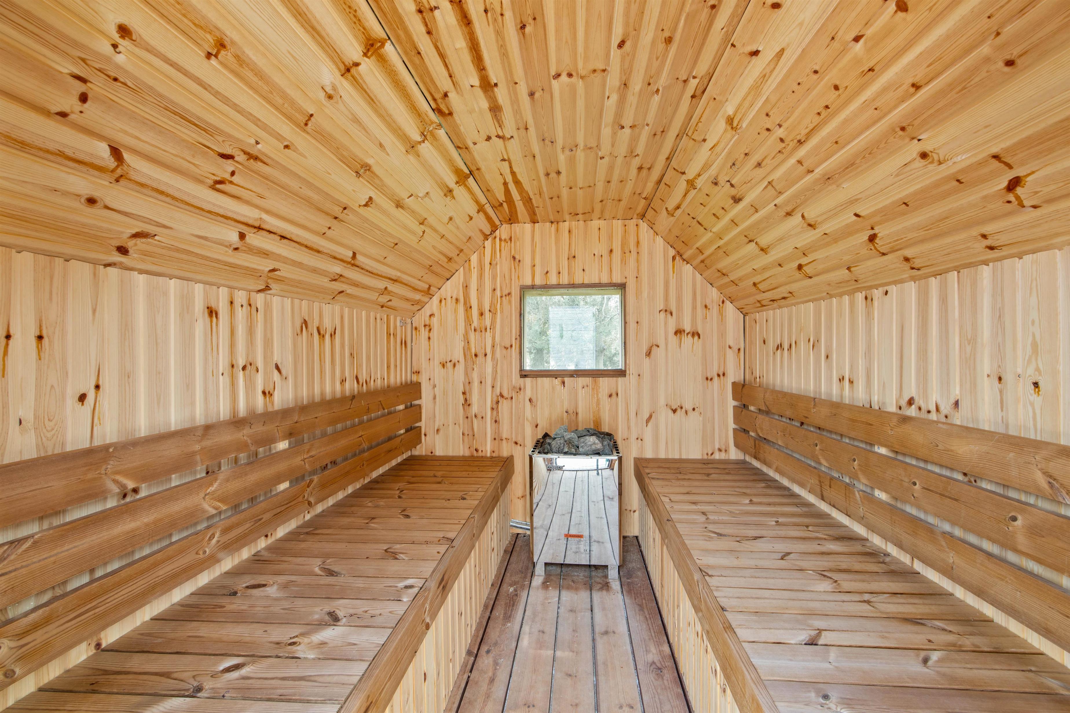 The large natural plot features a lovely wooden terrace, accessible from the living area. Centrally positioned is the hot tub, where you can relax in the warm water. Afterwards, enjoy a thorough session in the sauna - perfect for forgetting everyday stress. Sun loungers, a practical awning, and a gas barbecue are also provided. Choose between sunbathing or enjoying a cool drink in the shade. Children can play in the sandpit, on the swings, slide, or trampoline.