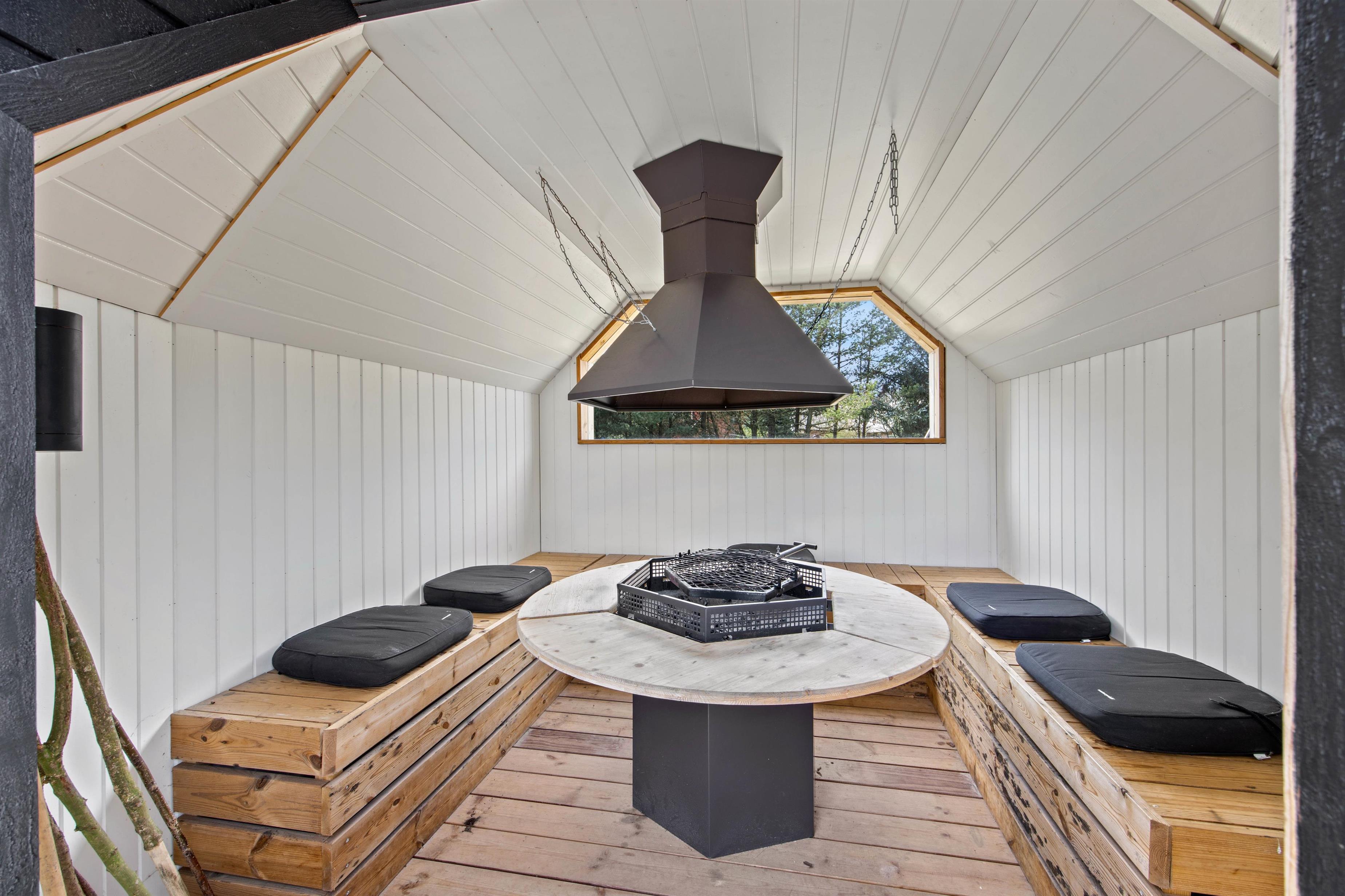 The cosy separate barbecue hut offers a sheltered gathering spot regardless of the weather.