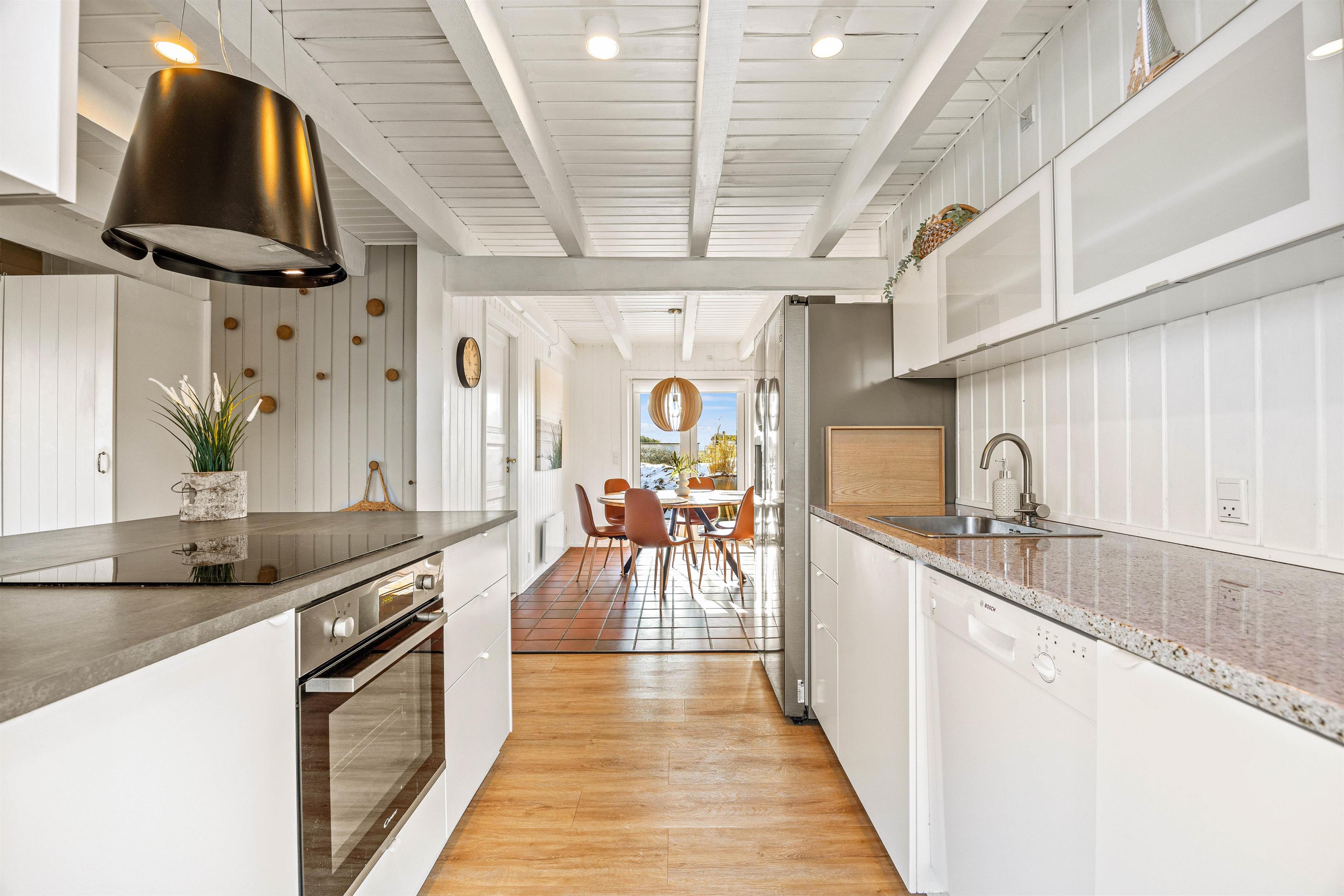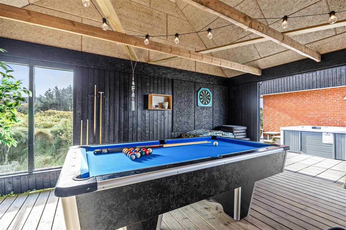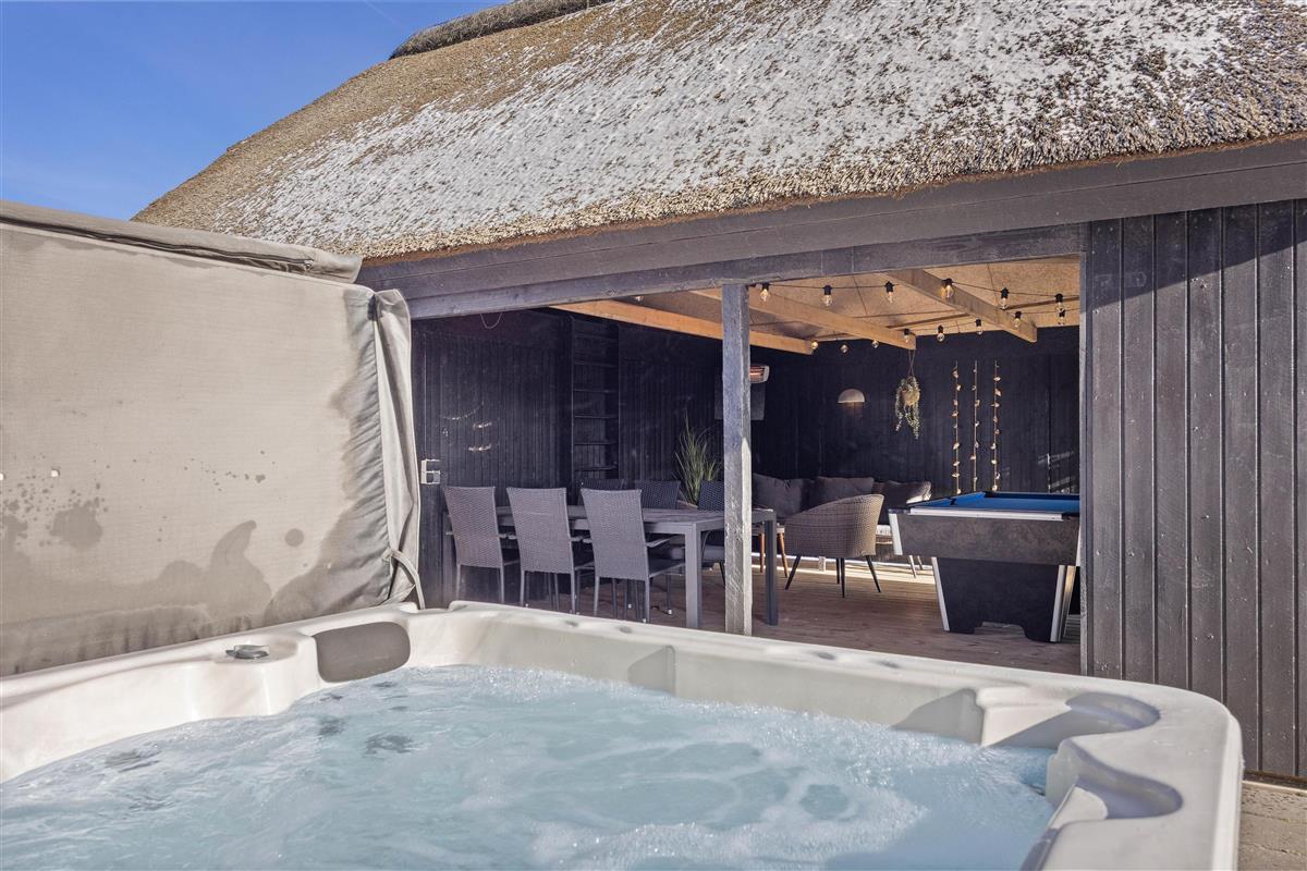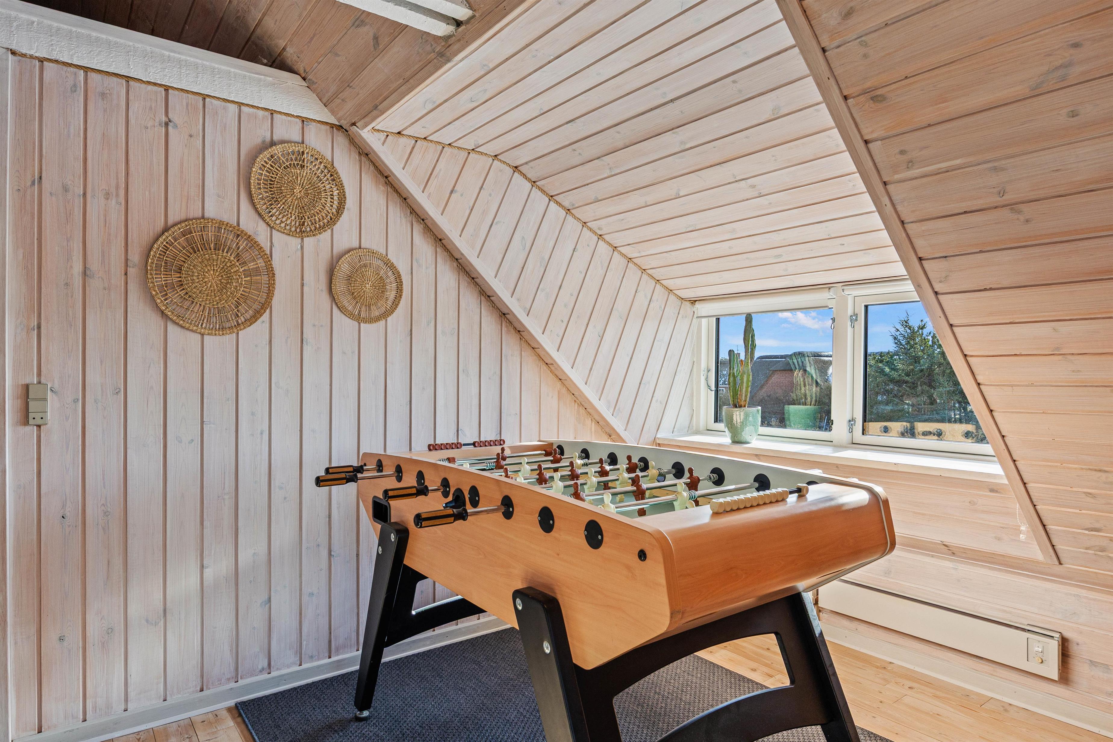 This thatched holiday home at Ingridsvej 1 offers ample space across two floors for up to 8 people. The floors are connected by an internal staircase. Two bedrooms, a cosy seating area with wonderful views, and an additional bathroom on the upper floor are ideal if you're travelling with friends or teenagers, who appreciate their own space. For football enthusiasts there is a table football table on the first floor, where you can hold a tournament or two, as well as in an annex a pool table, which can be used all year round.