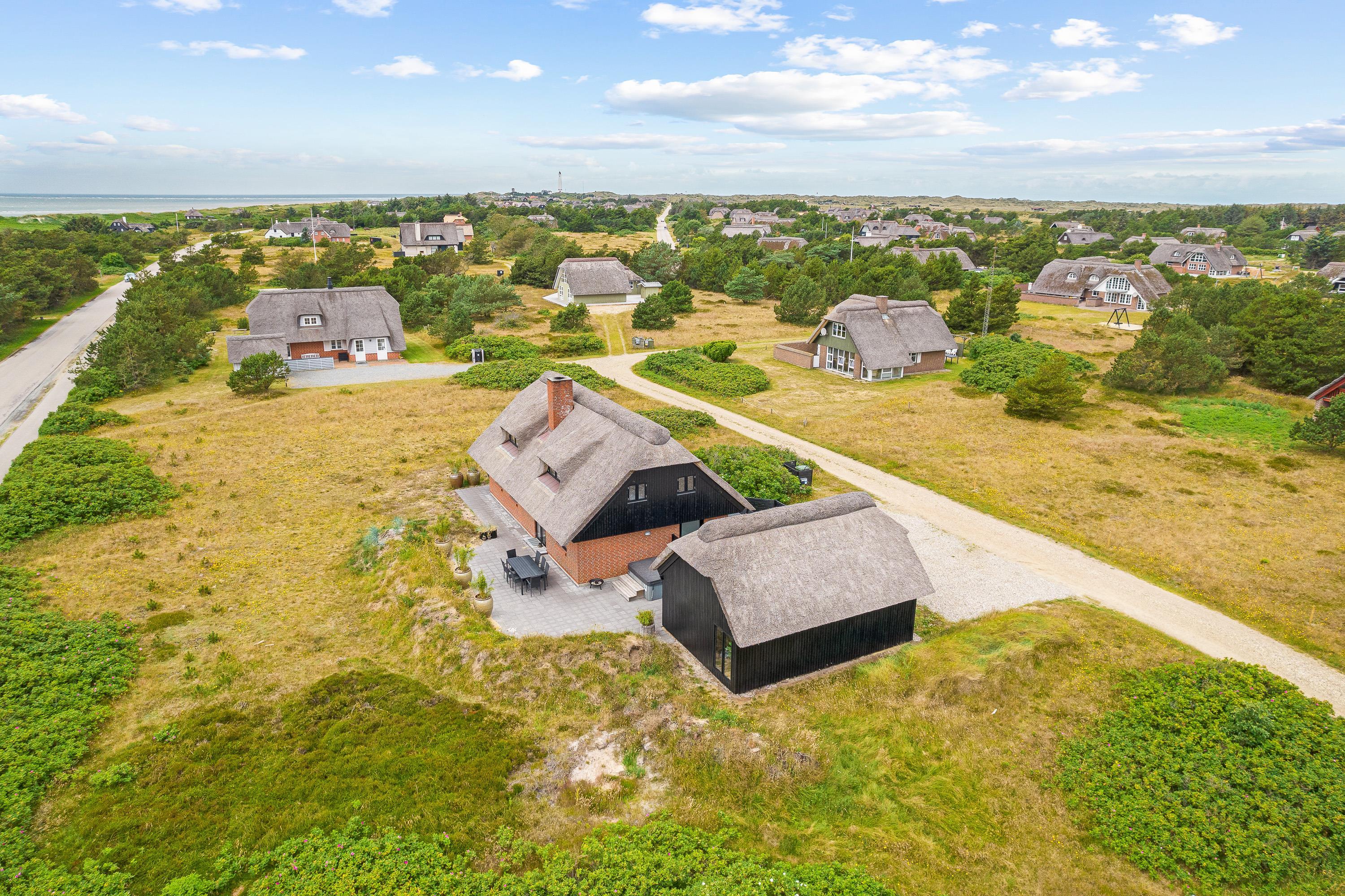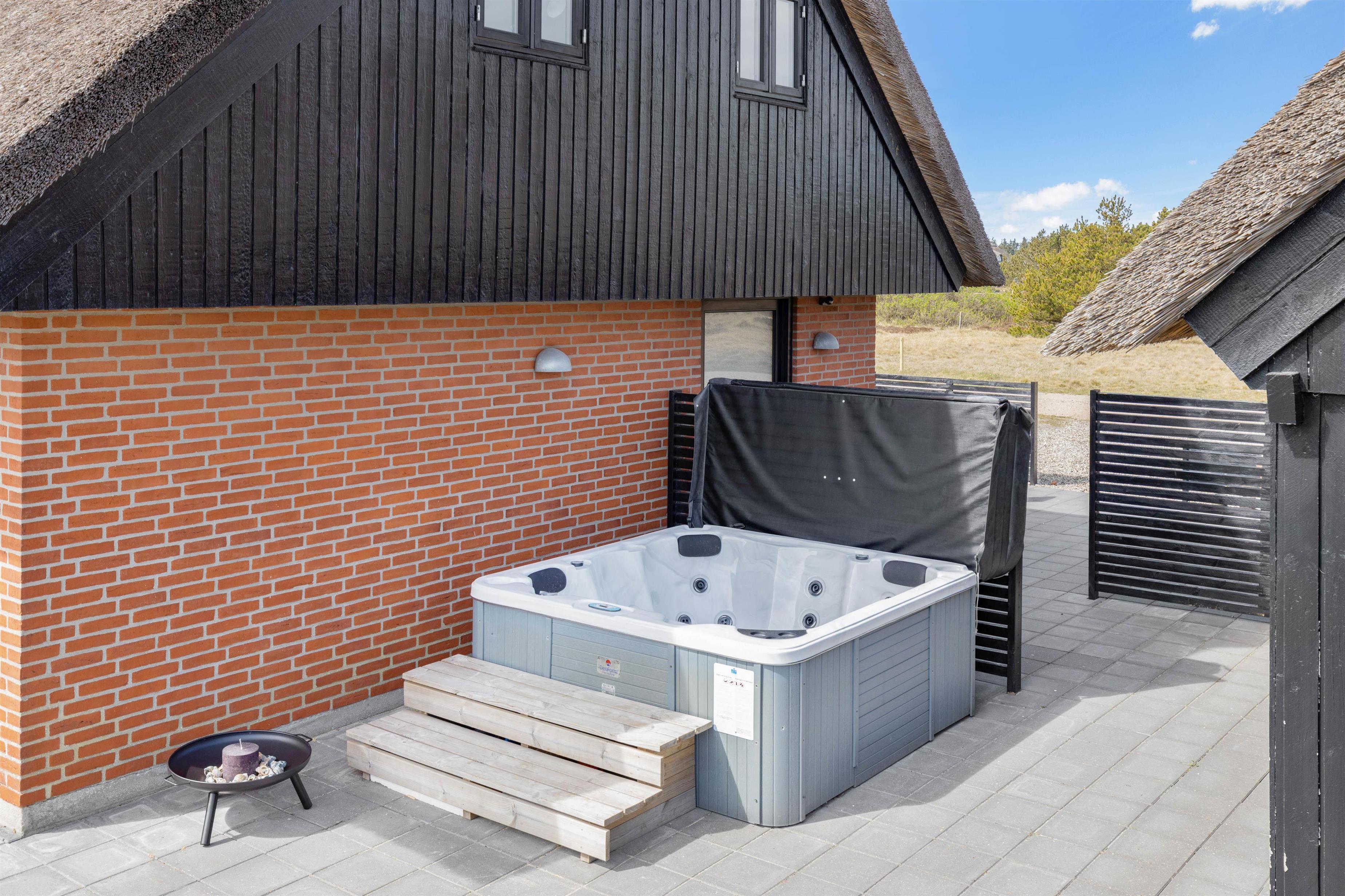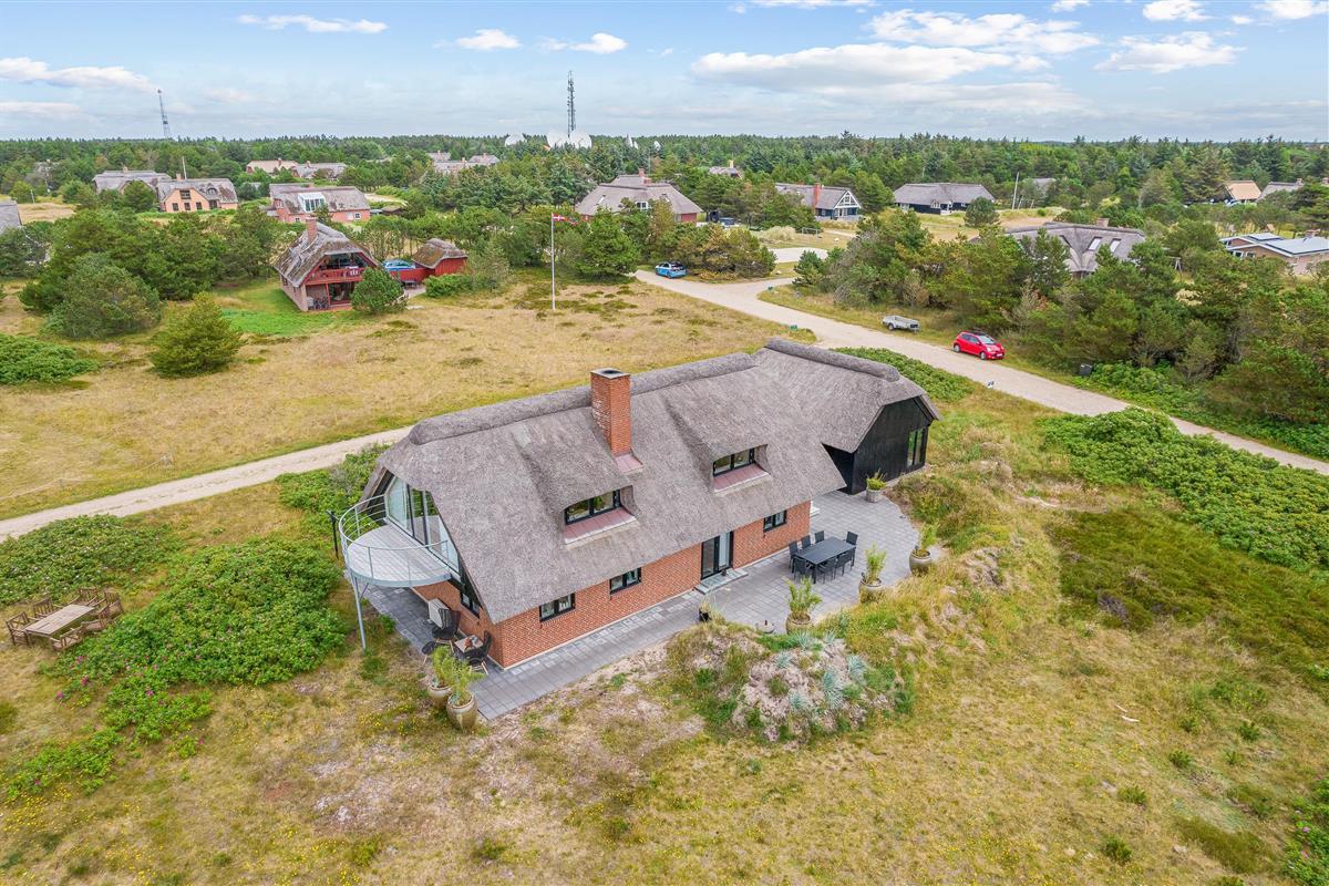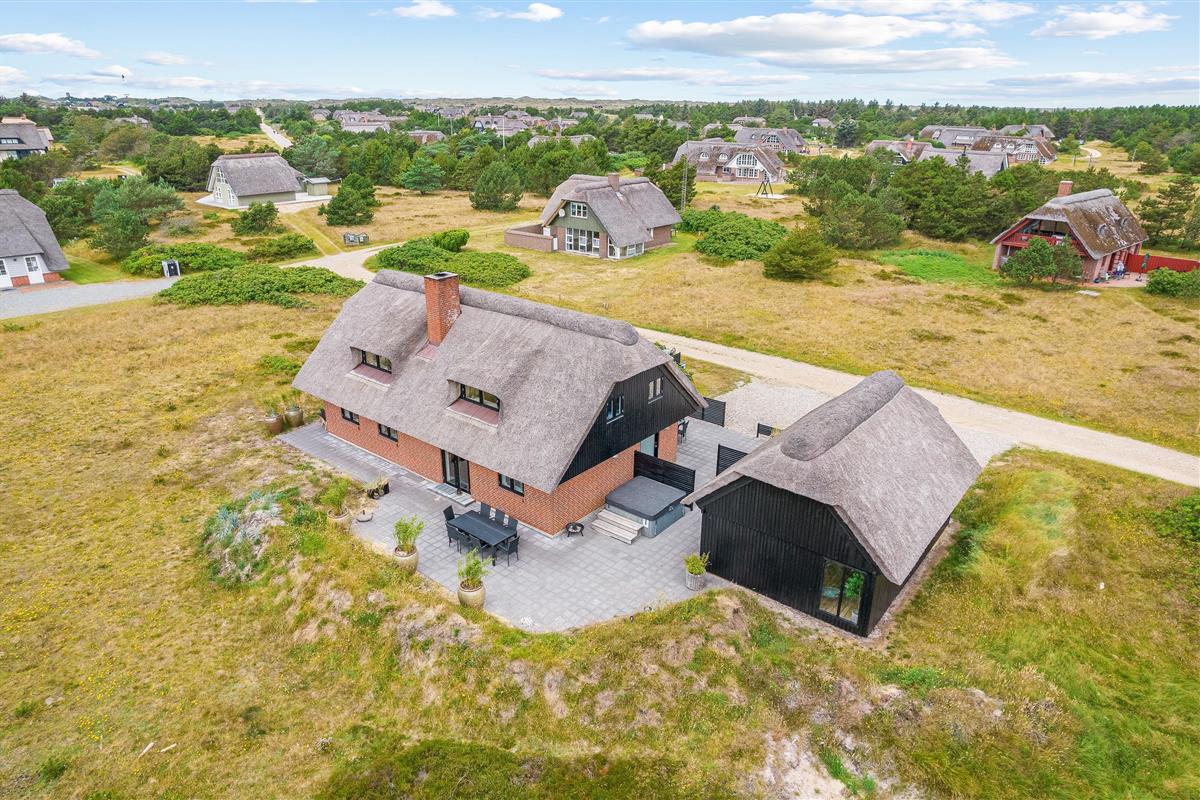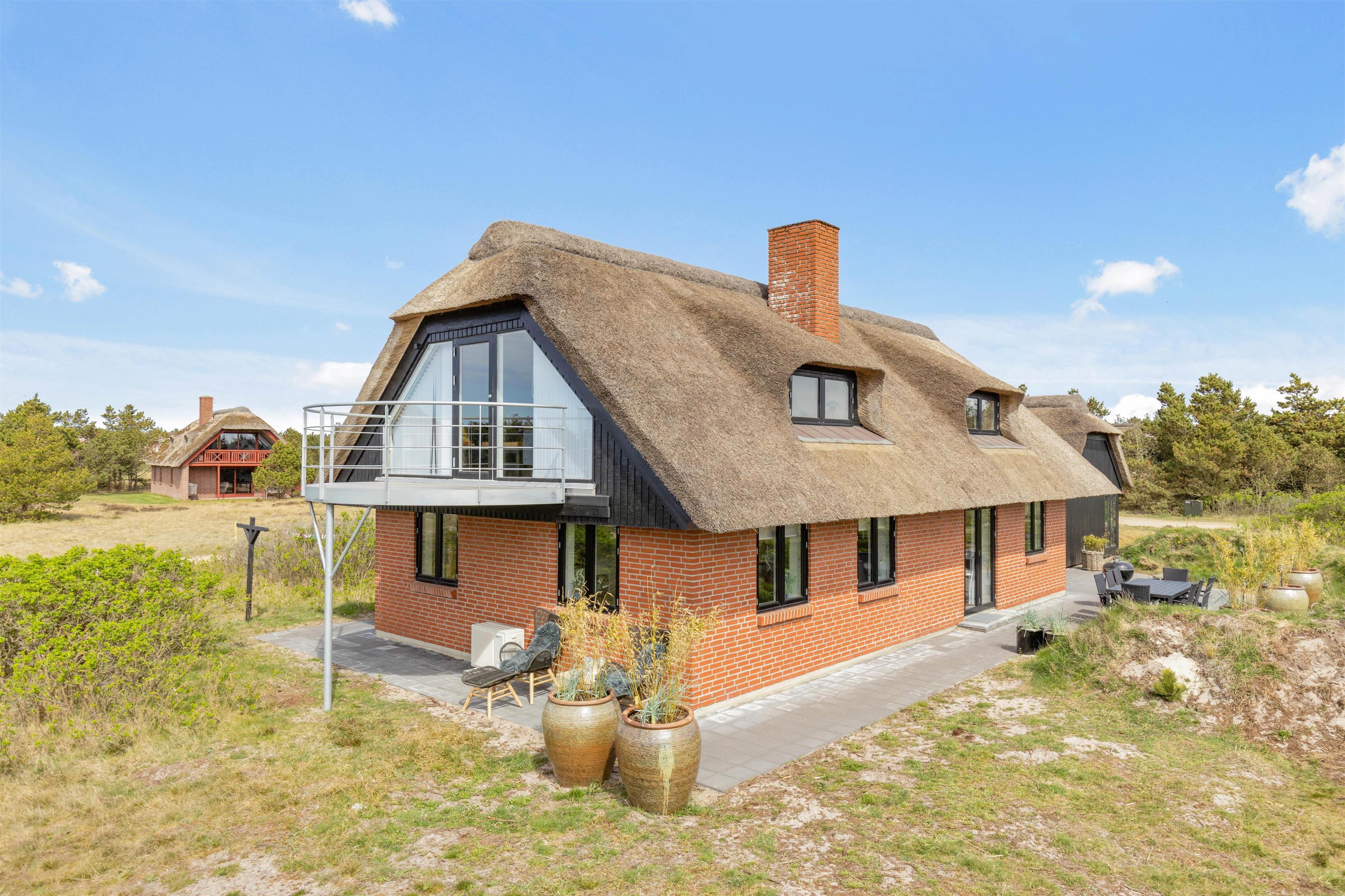 Just 300 metres from Blåvand's white sandy beach, this lovely thatched roof house, renovated and modernised in 2020, awaits you. The comfortable décor exudes classic holiday home charm - featuring a wood-burning stove, sauna, sheltered terrace and balcony with surrounding views. The holiday home accommodates up to 8 people and welcomes dogs. From 2021, you can enjoy a new outdoor hot tub and a fantastic covered terrace.