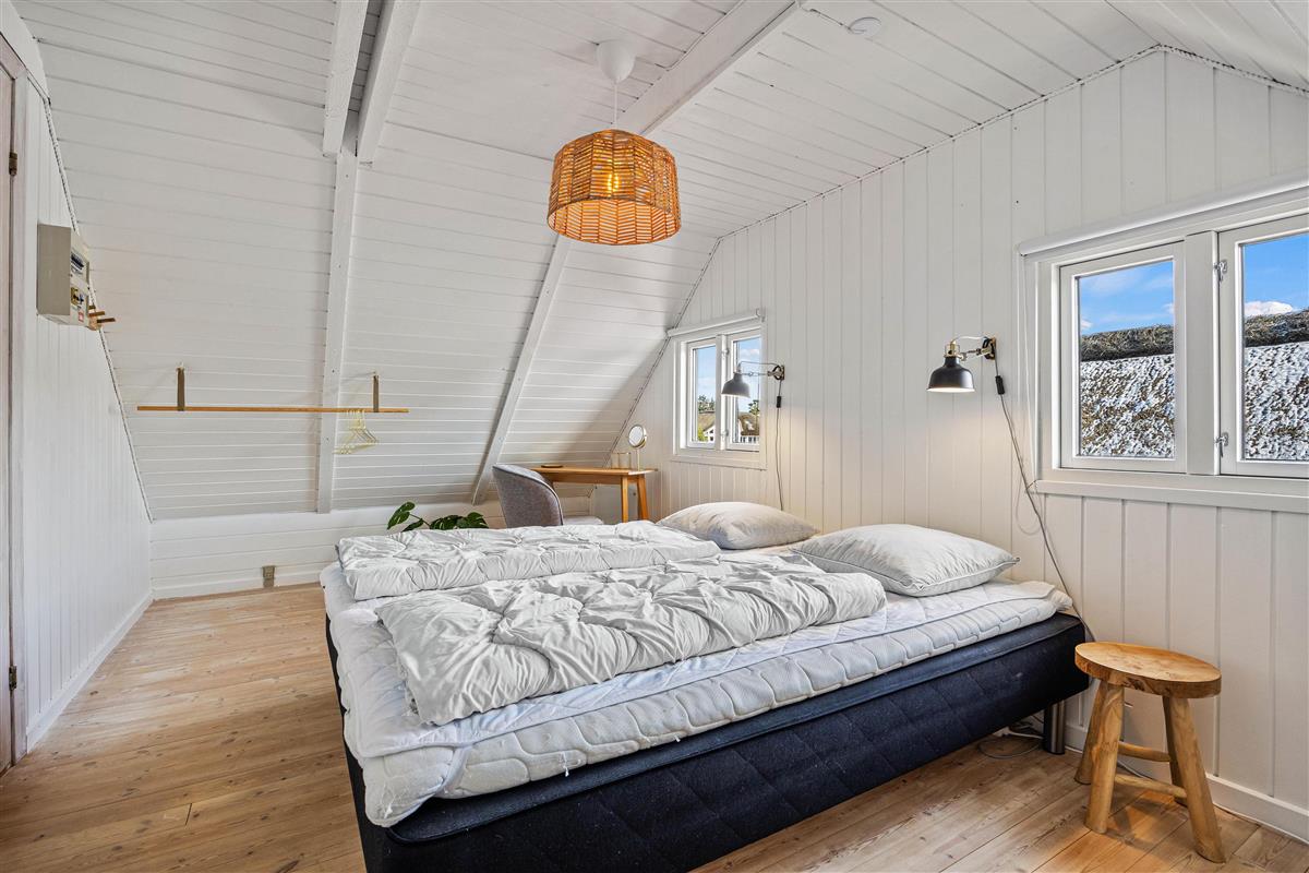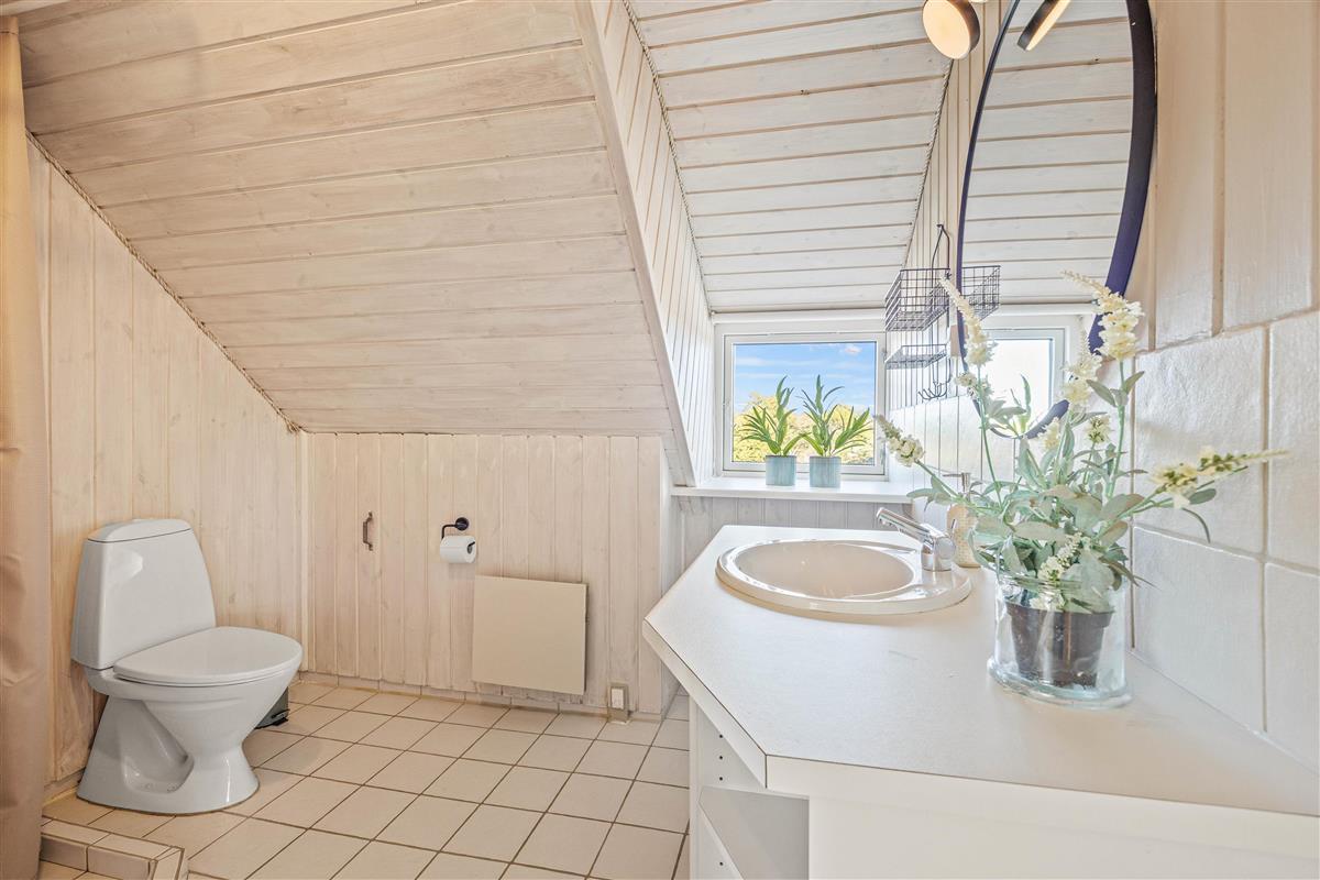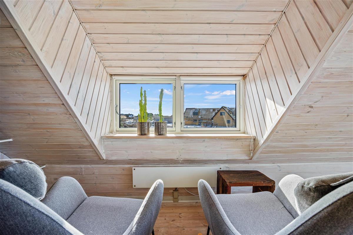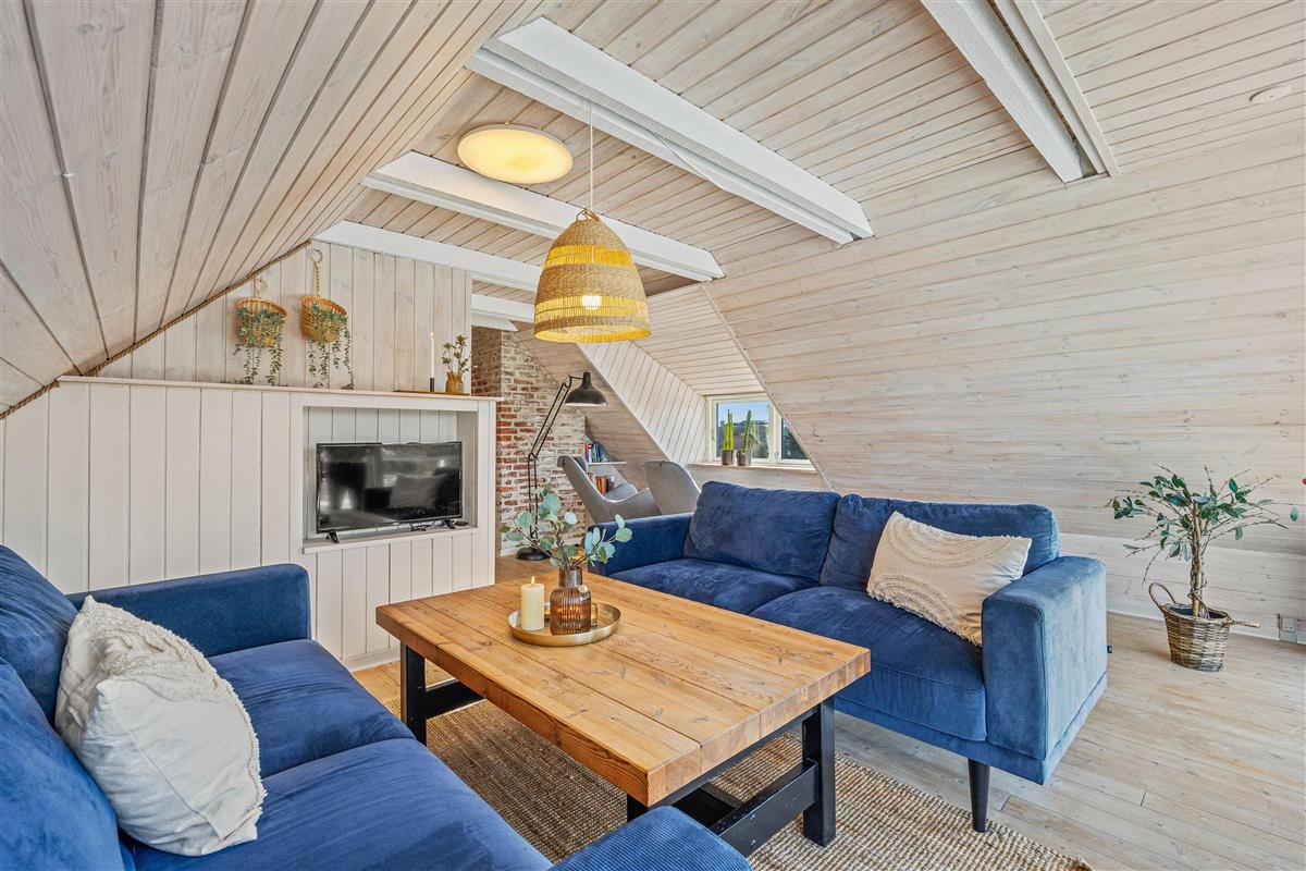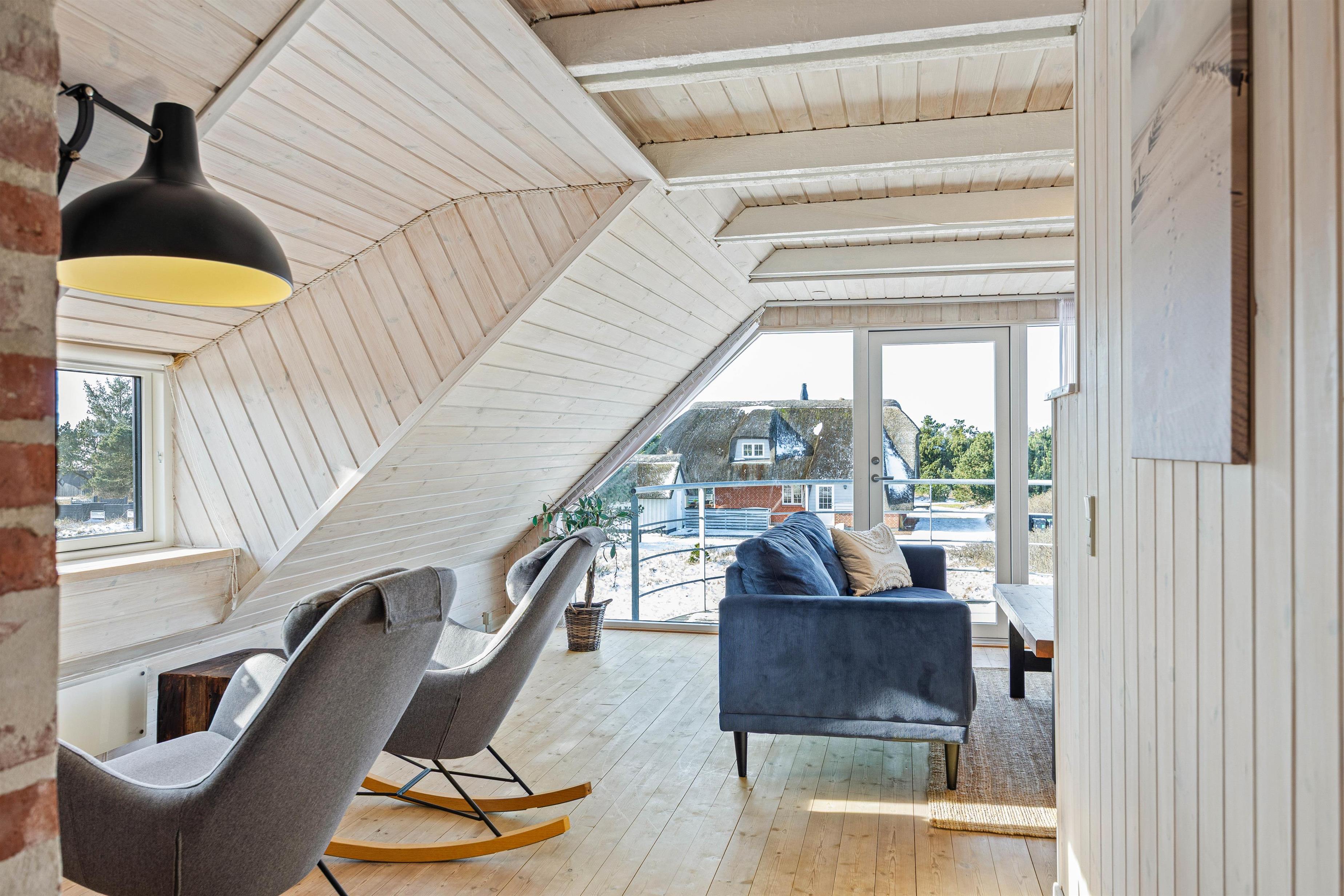 Both floors feature shower rooms, with the ground floor bathroom also including a sauna. From the ground floor living room, you have access to a large, sheltered terrace where you can enjoy sunny days. The top floor offers access to a lovely balcony with splendid views of the Blåvandshuk lighthouse.