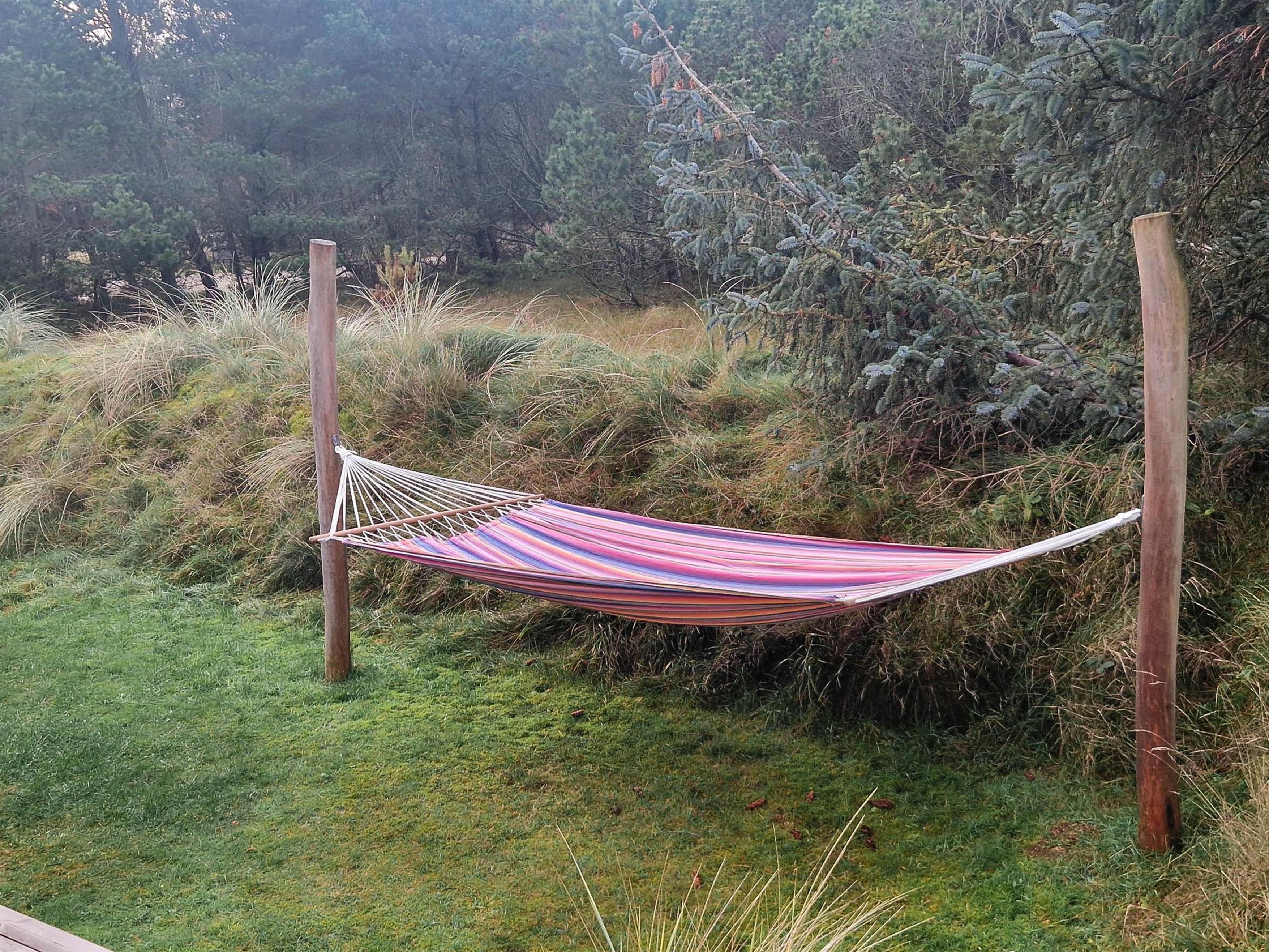Ein großzügiges Naturgrundstück umgibt das Ferienhaus, auf dem du mit den zur Verfügung stehenden Gartenmöbeln und einem Grill unvergessliche Momente im Freien erleben kannst.