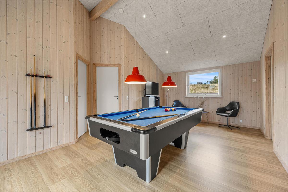 Located at the end of the quiet cul-de-sac Poul Thøstesesvej 16, this beautiful holiday home in Blåvand accommodates up to 8 people. The holiday home is immaculately maintained and features modern furnishings. With high ceilings and excellent amenities - including a fireplace, whirlpool, sauna and games room with pool table and darts - plus a large, partially covered and screened terrace, it's just a short walk from both Blåvand's charming town centre and the North Sea.