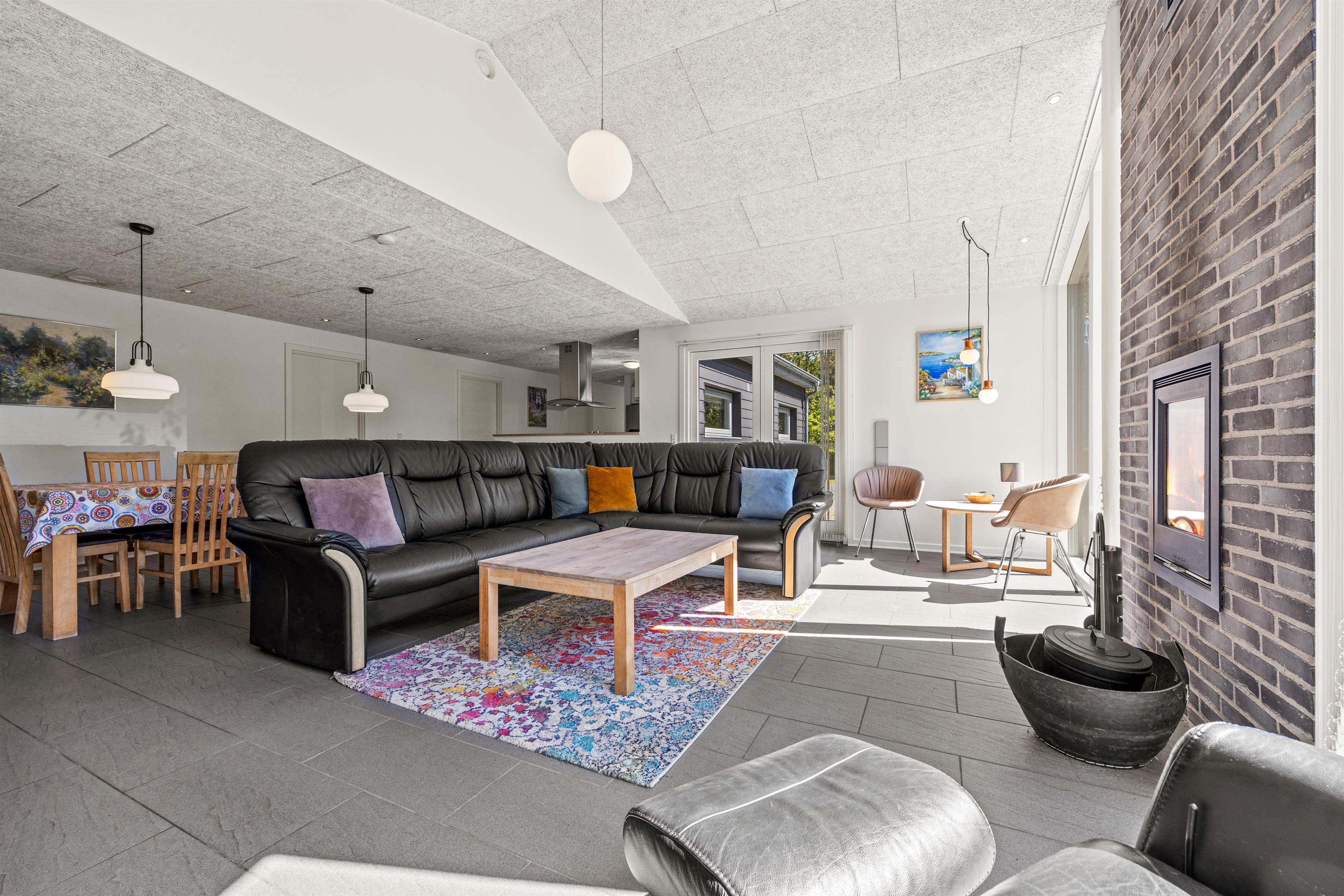 With 189 square metres of space, there's plenty of room even when travelling with multiple families - everyone will find their own cosy corner. Five bedrooms with both double and single beds, plus two bathrooms with underfloor heating, accommodate up to 10 guests.