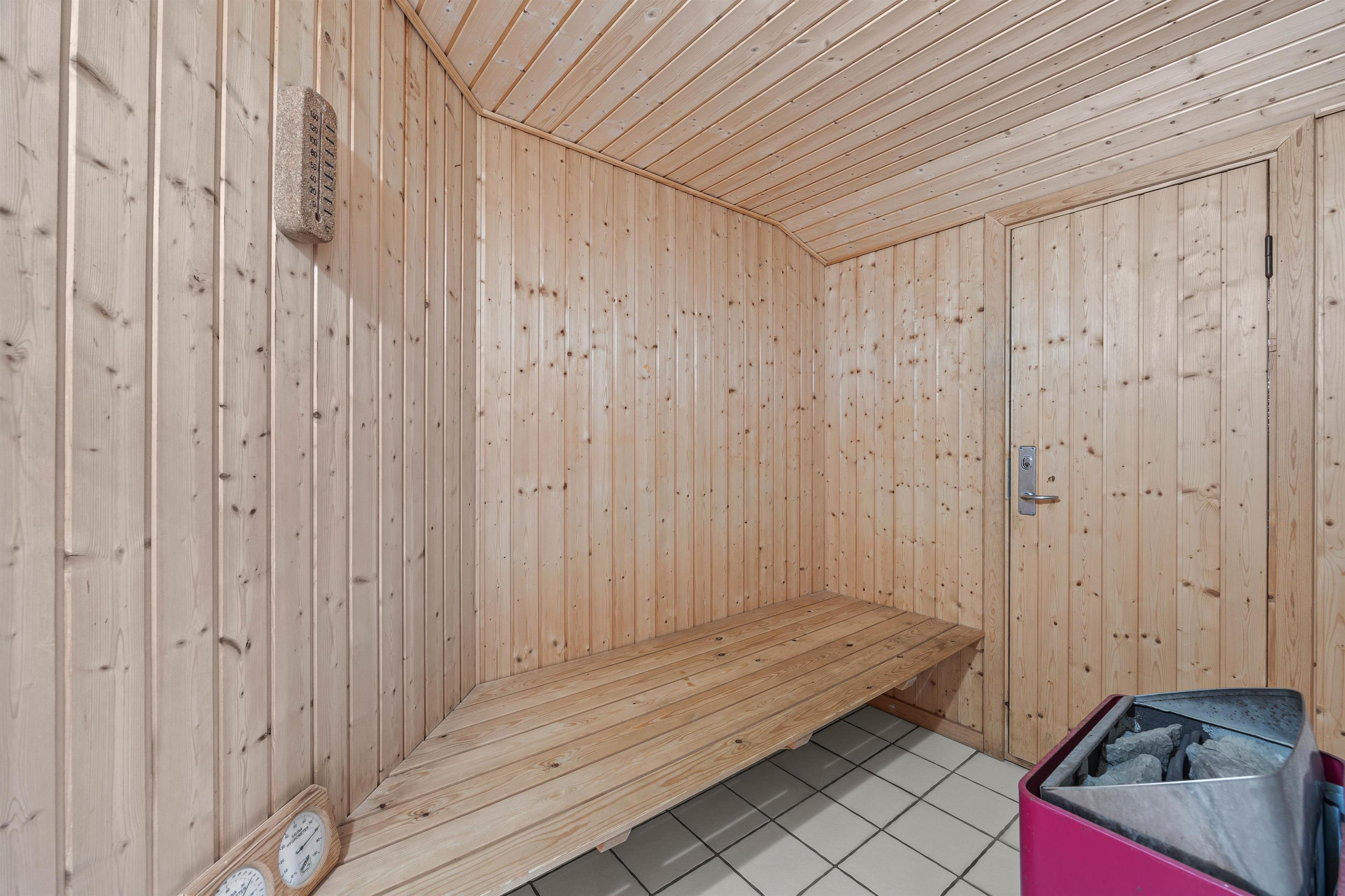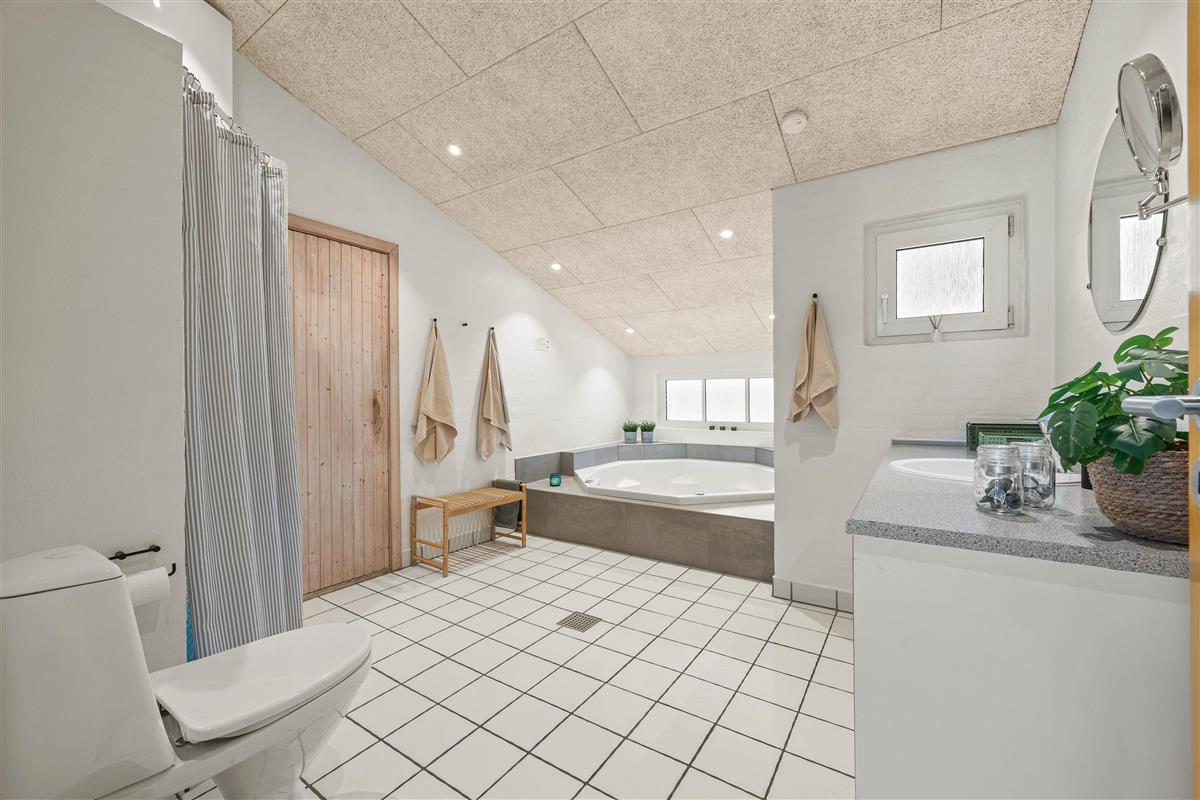 The holiday home at Kallesensvej 18 is comfortably equipped with a dishwasher, washing machine, tumble dryer, a wood-burning stove in the living room, plus a sauna and permanent whirlpool in the main bathroom. You'll feel right at home here from the moment you arrive.