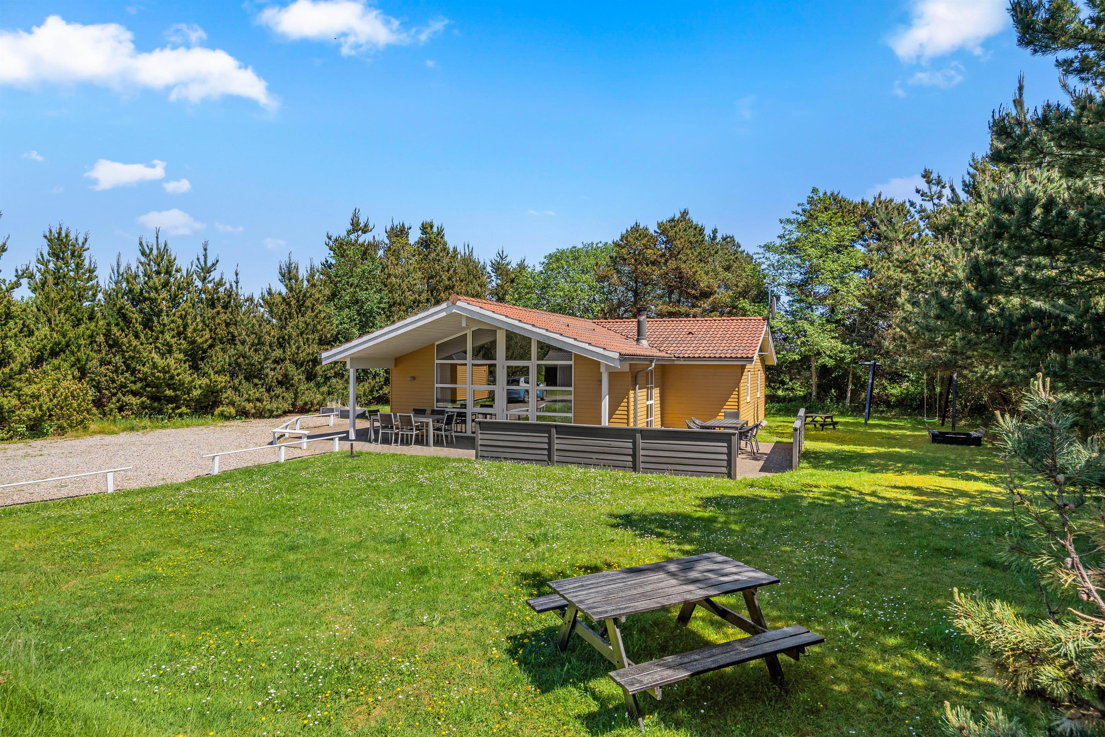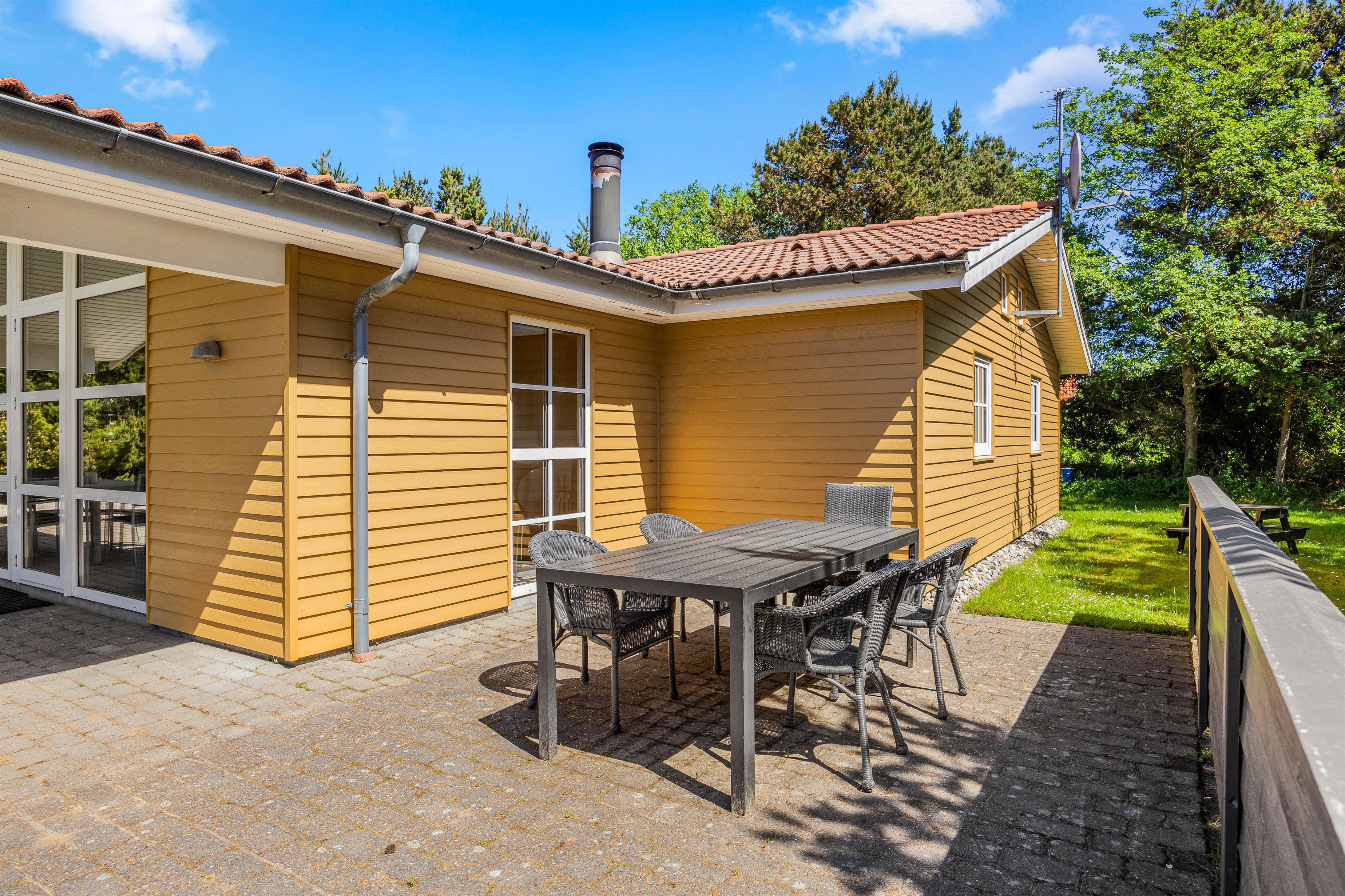This beautiful, well-maintained holiday home sits in a peaceful yet central location in Blåvand, surrounded by trees and shrubs on a secluded plot. The beach is just 800 metres away, and the nearest shopping facilities are only 300 metres from your door. Up to 8 people can enjoy a wonderful holiday here on Denmark's North Sea coast. A permanent whirlpool and sauna provide perfect relaxation opportunities!