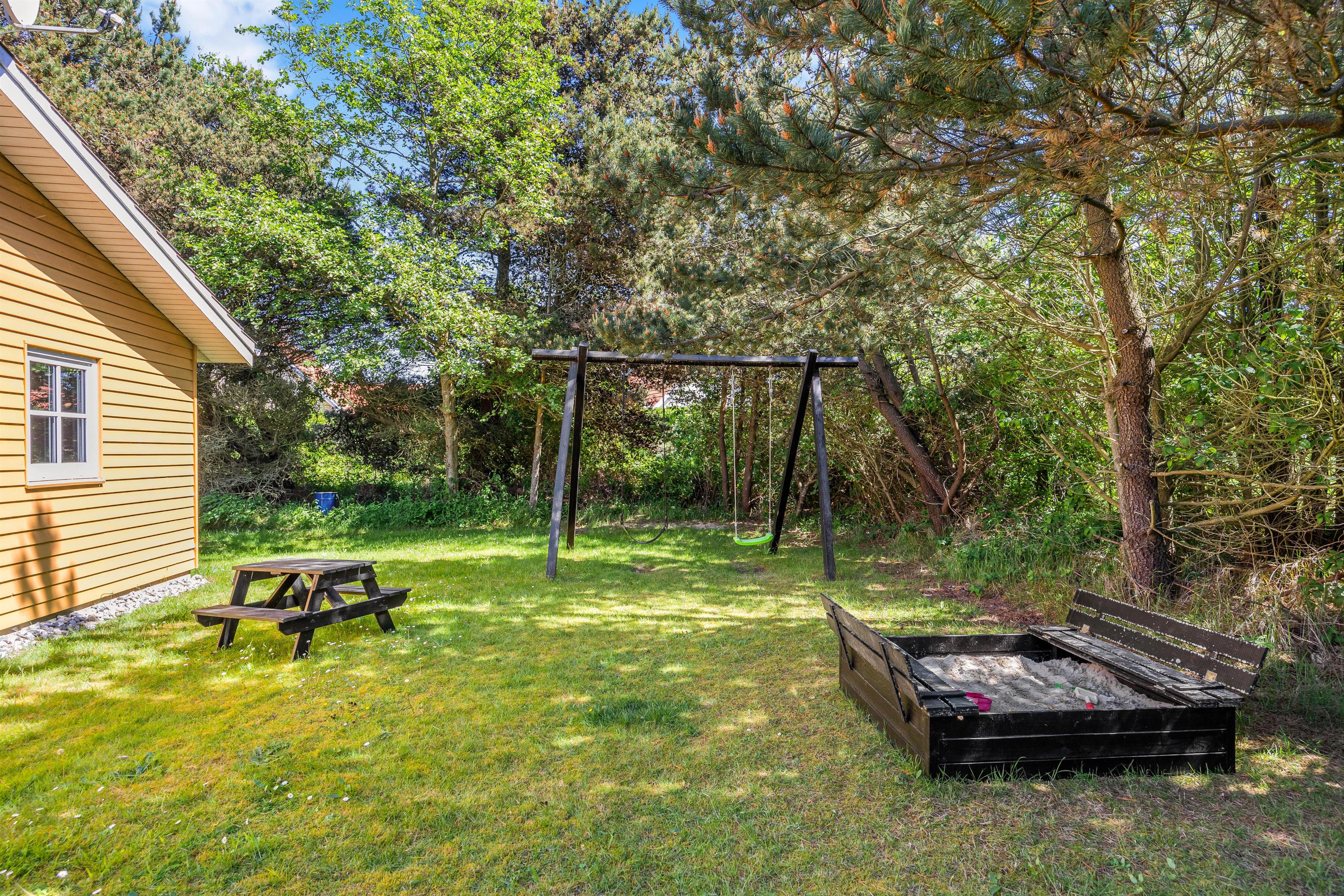 While the children run around in the garden, play ball games or swing high into the sky on the swing set, you can relax in a sheltered, sunny spot and listen to the wind in the trees. Seagulls often soar overhead, reminding you of your proximity to the sea.