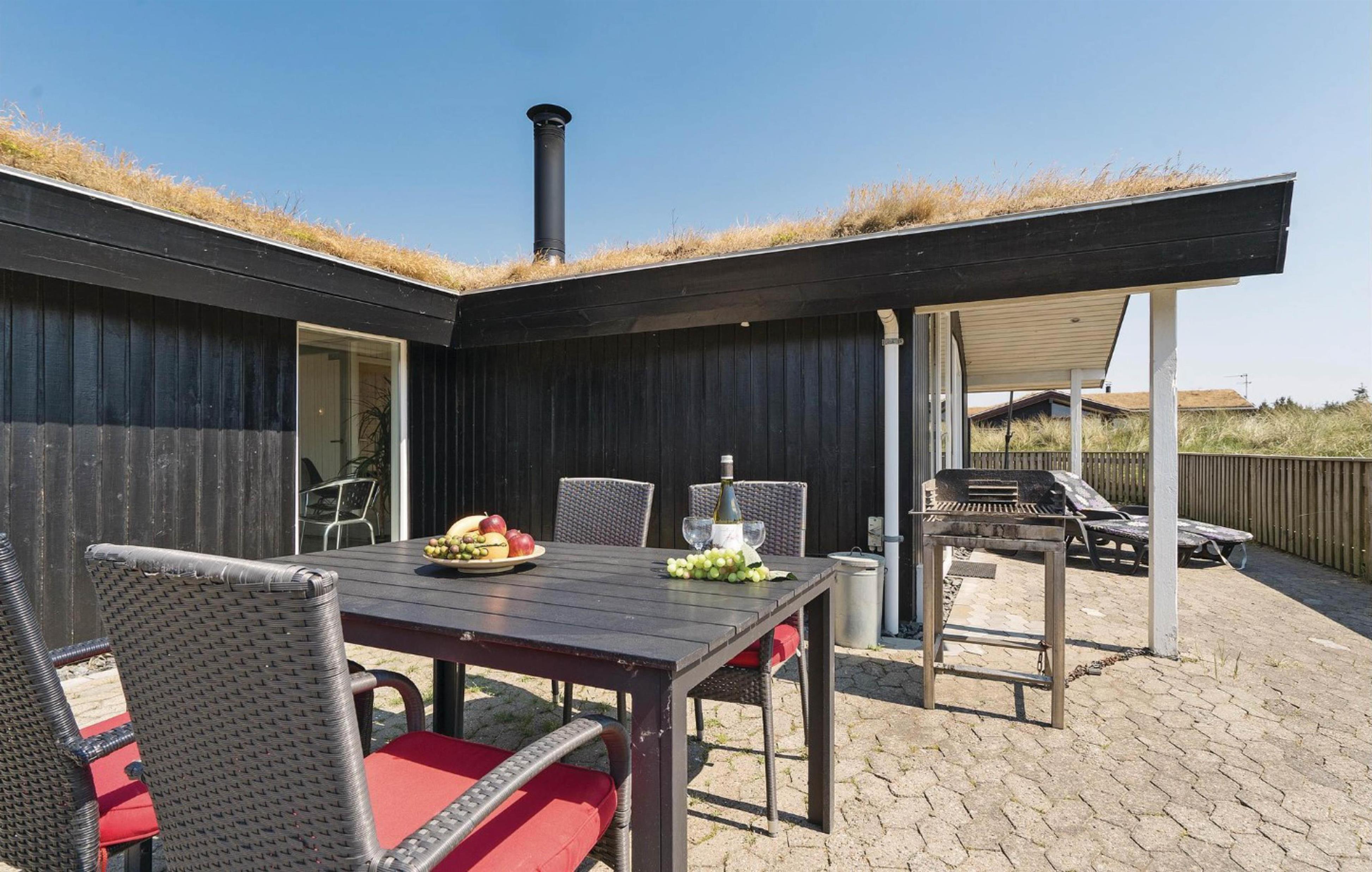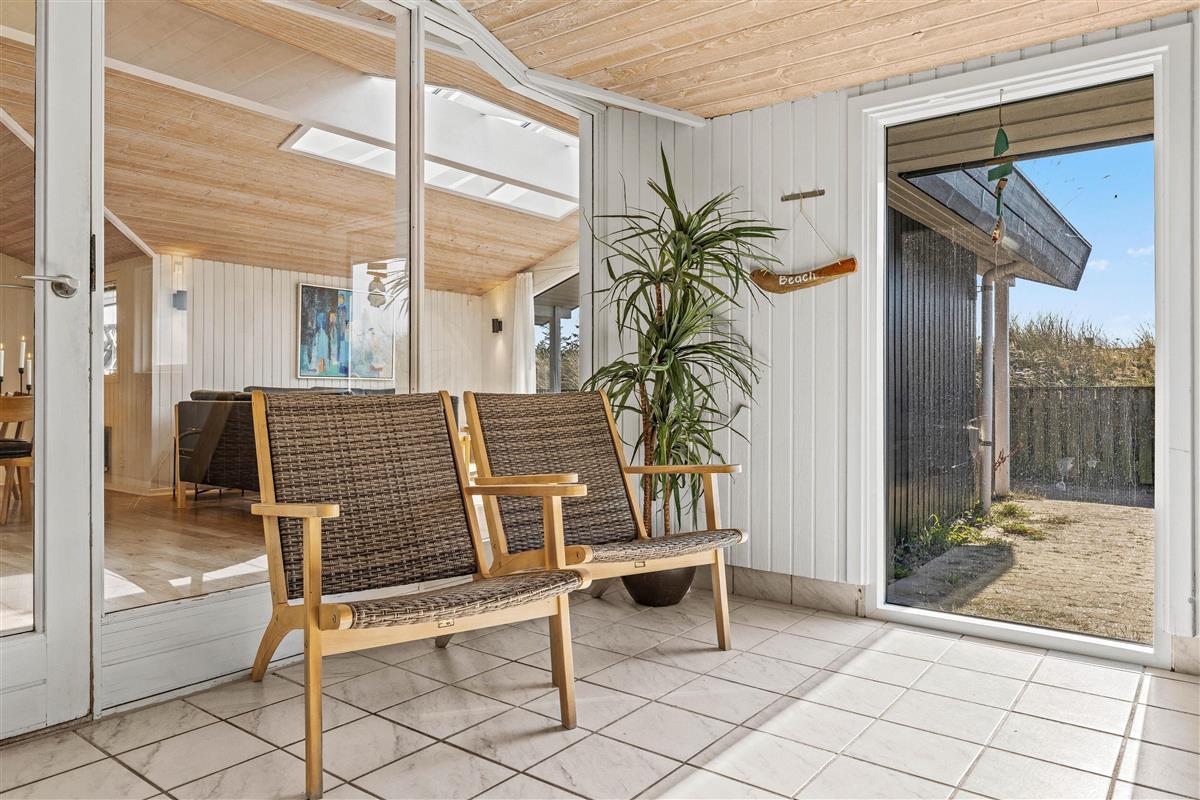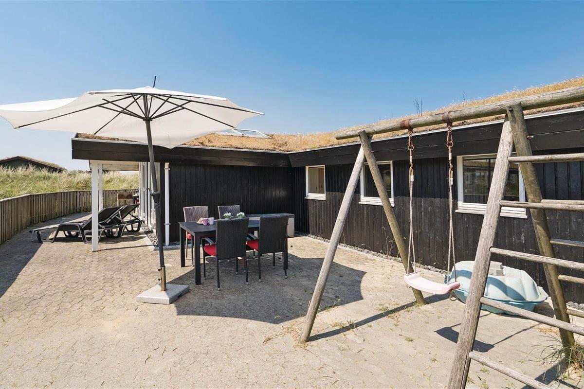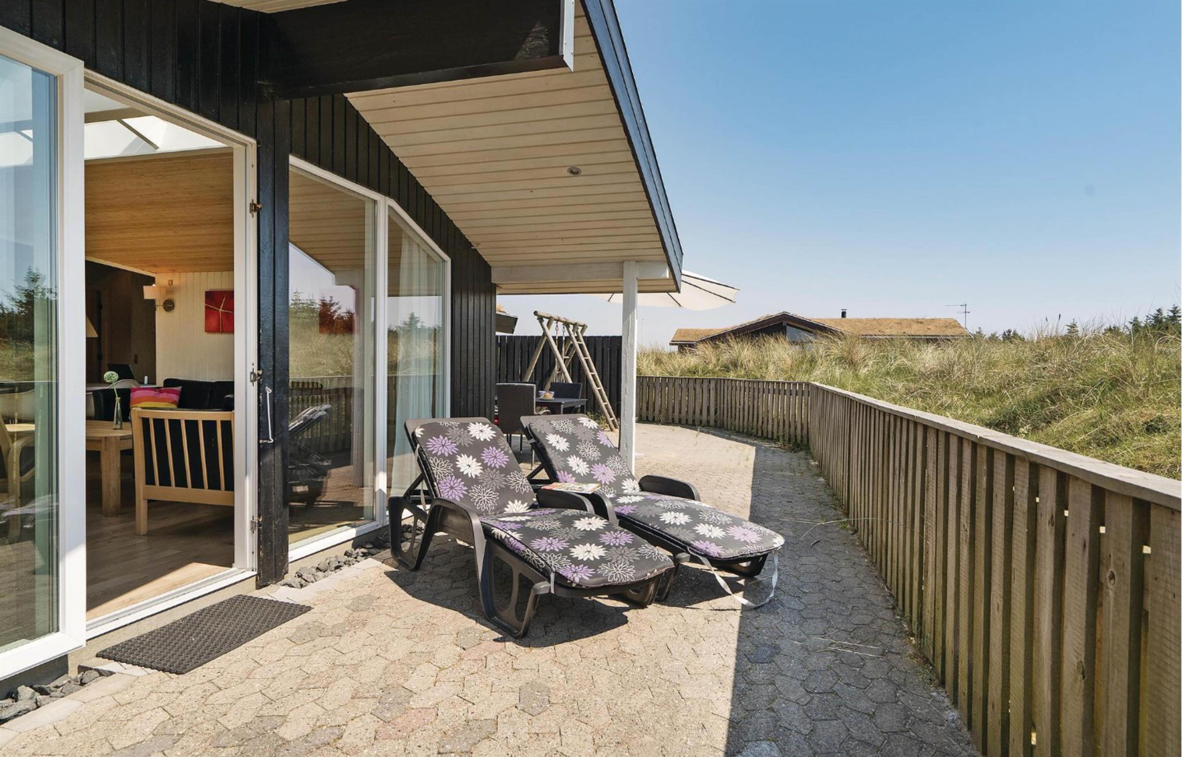 The holiday home is situated in a quiet holiday area, surrounded by West Jutland's beautiful countryside. To the northwest, there's a lovely tiled terrace where you can spend hours enjoying the sunshine and balmy summer evenings with a barbecue. Settle down with a good book on the garden furniture, let the children play and the dogs run free - perfect holiday relaxation. For little ones, there's a small sandpit and swing.