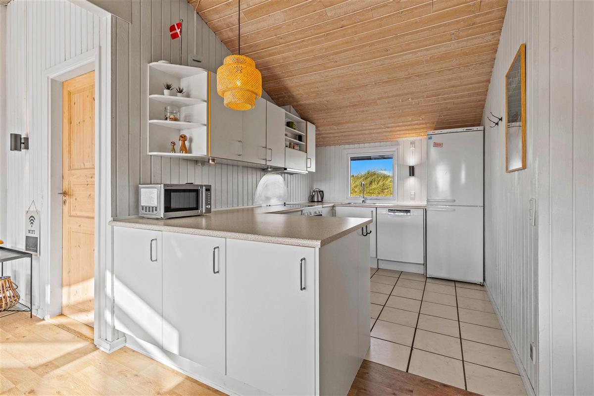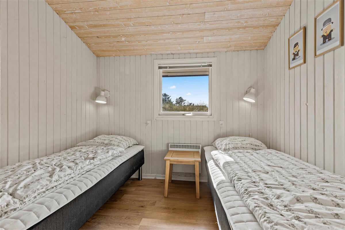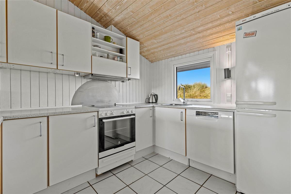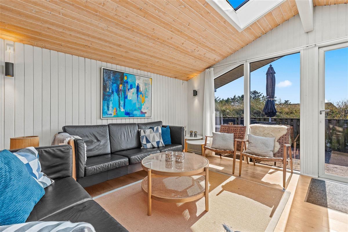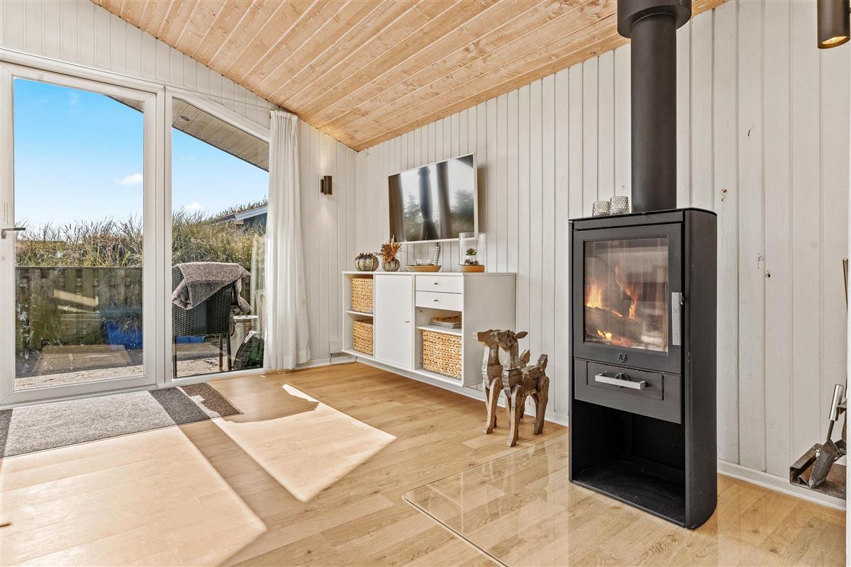The holiday home is situated in a quiet holiday area, surrounded by West Jutland's beautiful countryside. To the northwest, there's a lovely tiled terrace where you can spend hours enjoying the sunshine and balmy summer evenings with a barbecue. Settle down with a good book on the garden furniture, let the children play and the dogs run free - perfect holiday relaxation. For little ones, there's a small sandpit and swing.