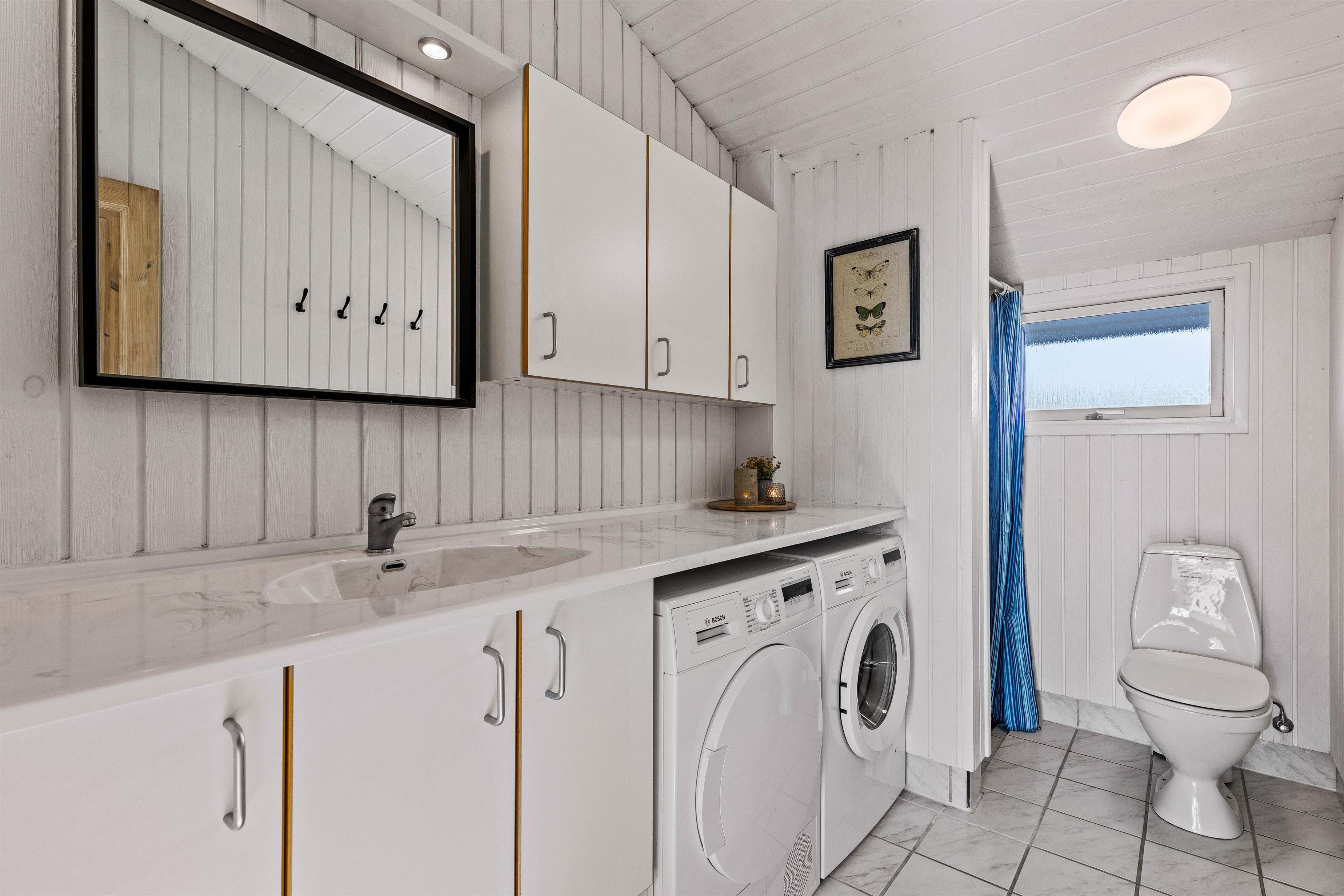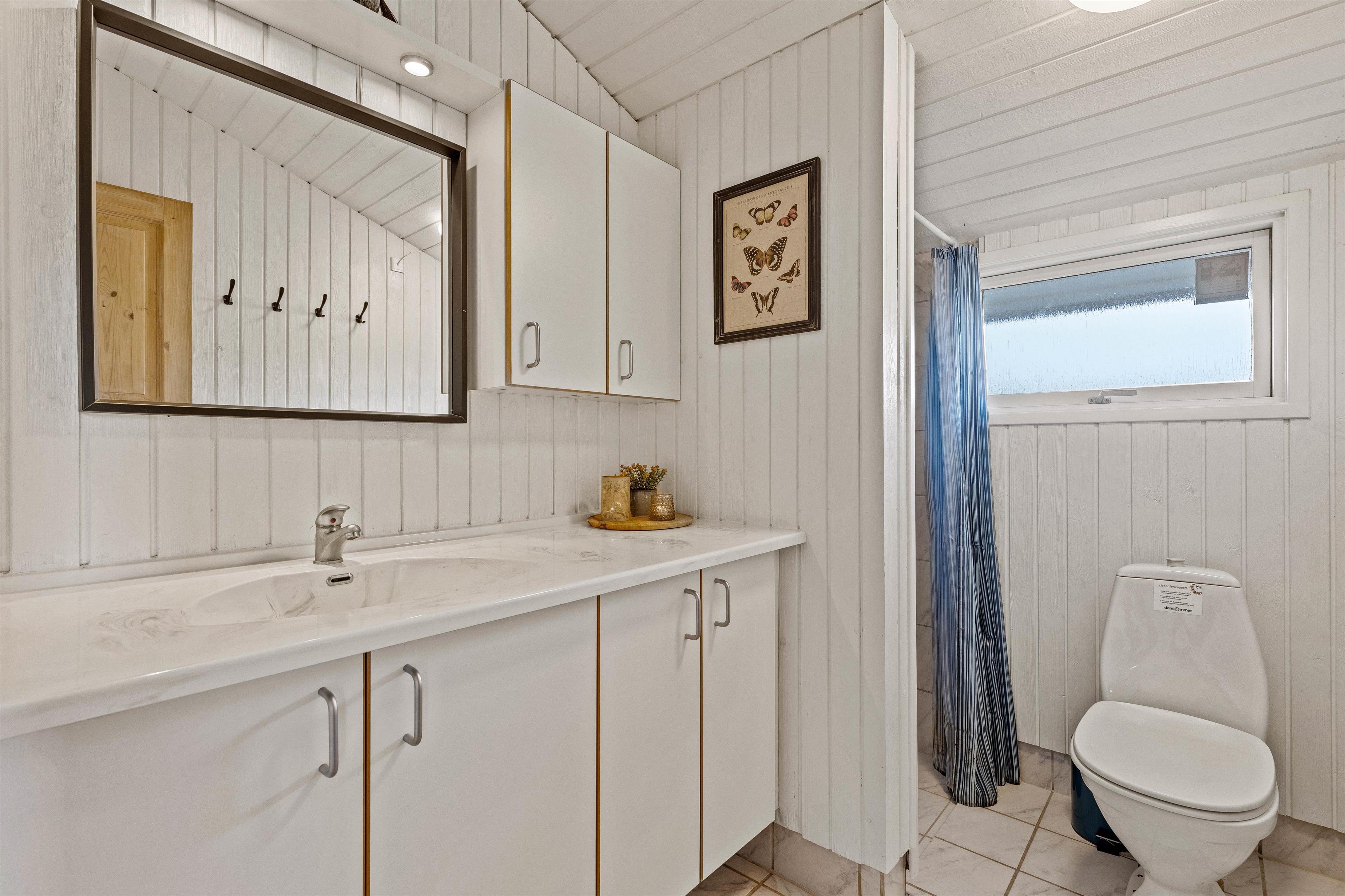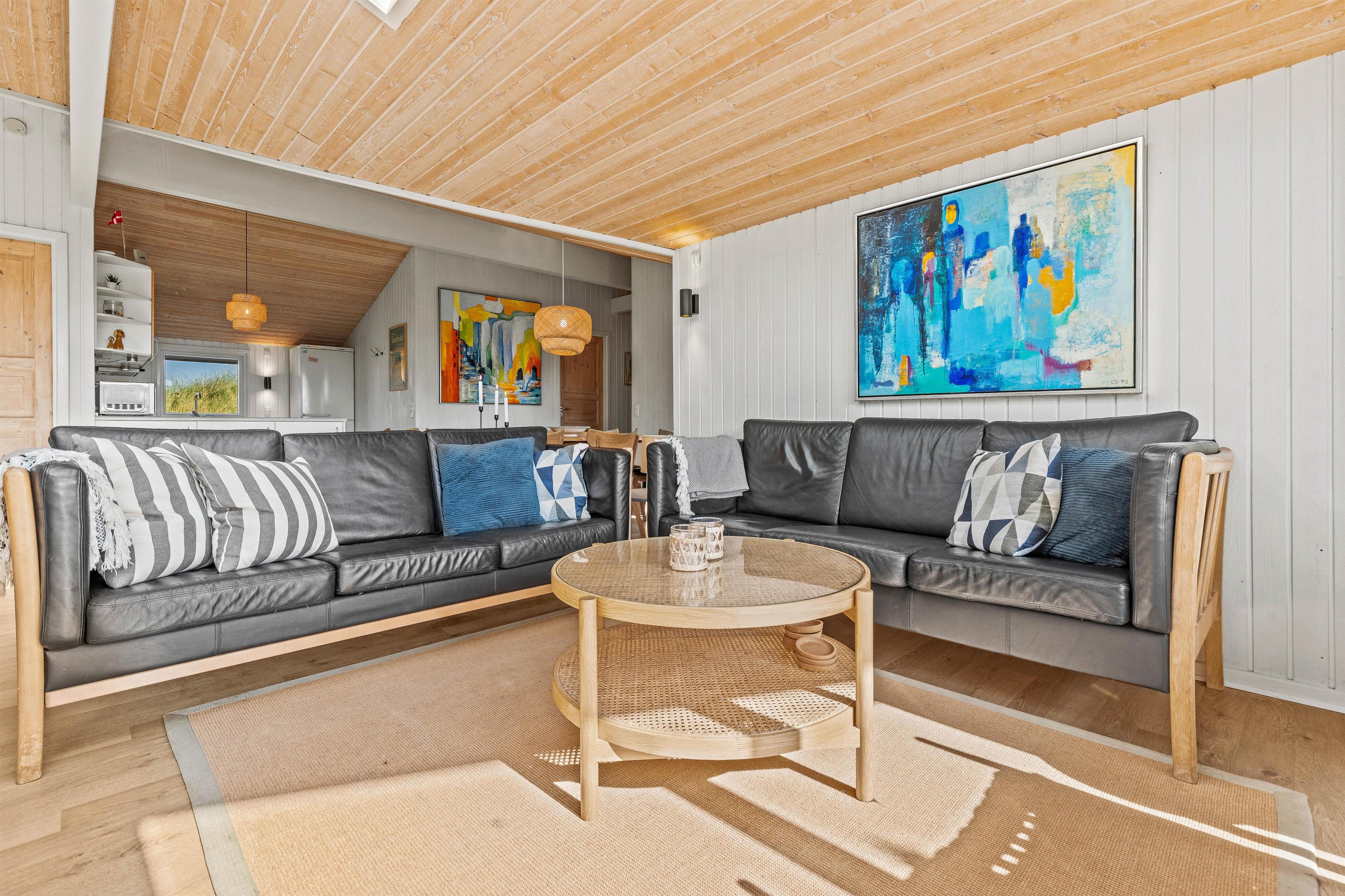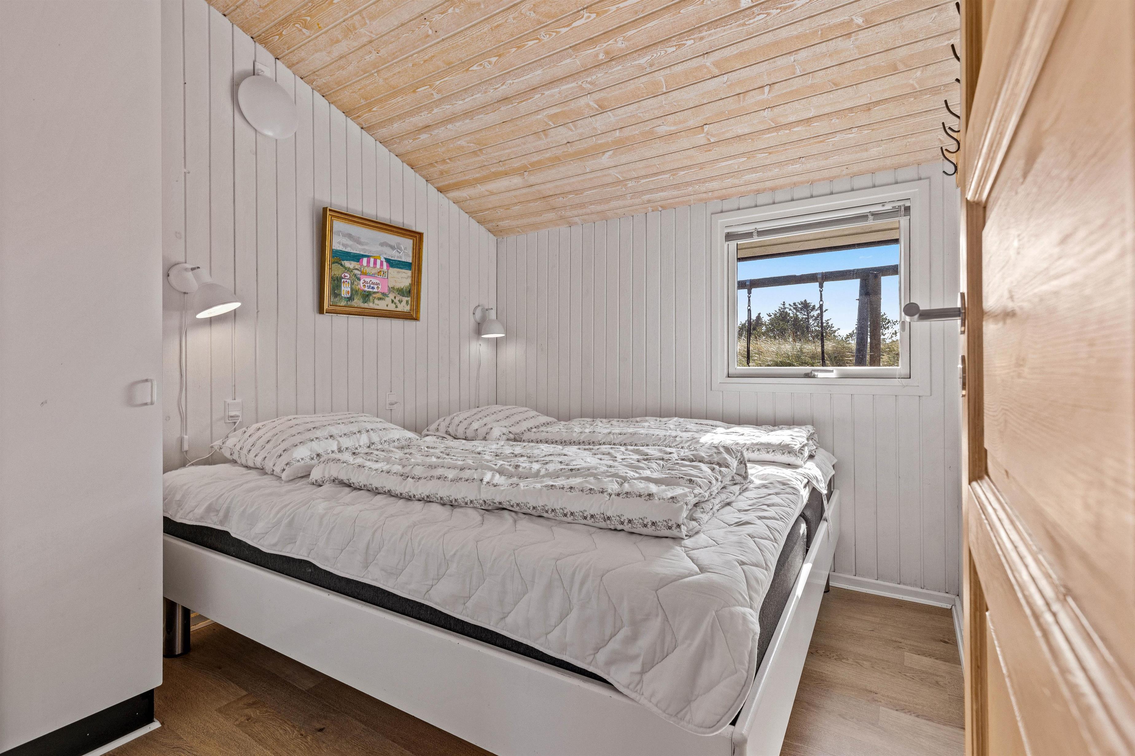 The holiday home is situated in a quiet holiday area, surrounded by West Jutland's beautiful countryside. To the northwest, there's a lovely tiled terrace where you can spend hours enjoying the sunshine and balmy summer evenings with a barbecue. Settle down with a good book on the garden furniture, let the children play and the dogs run free - perfect holiday relaxation. For little ones, there's a small sandpit and swing.