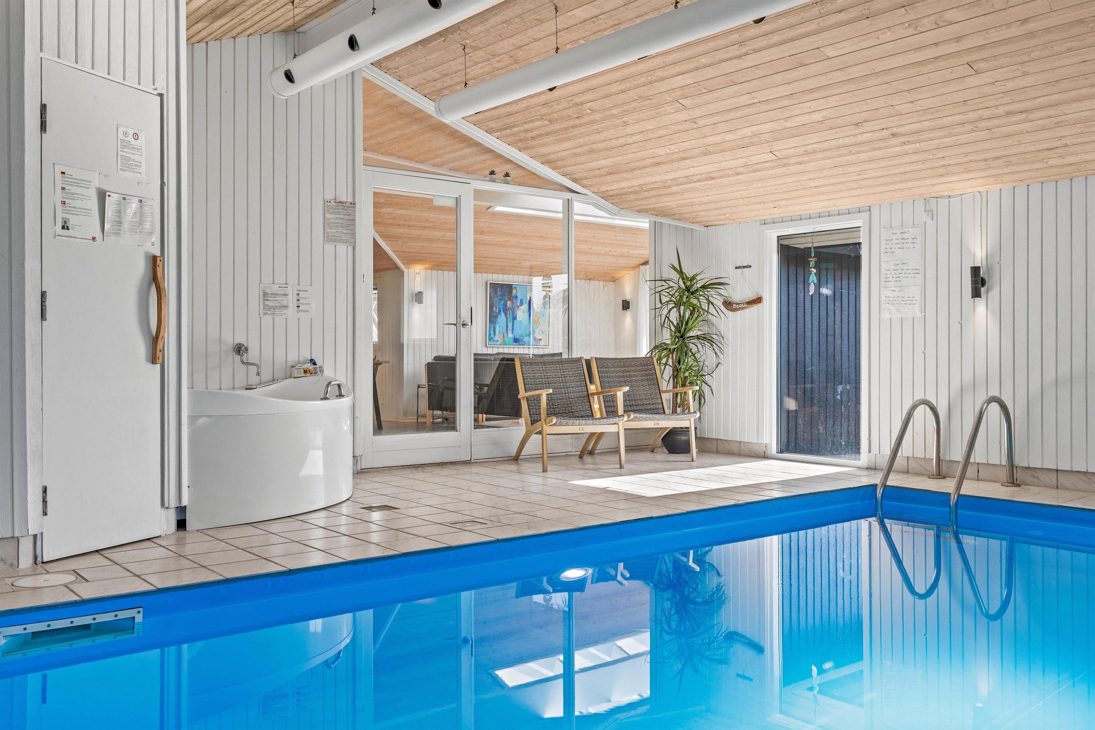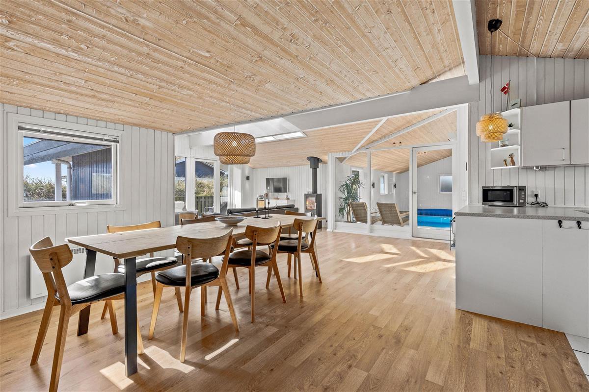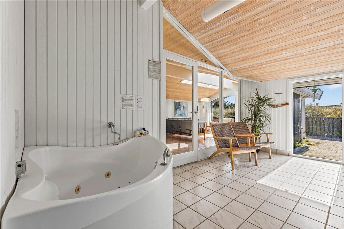 Welcome to this beautiful holiday home in Sydslugen 19, a bright and spacious 165-square-metre holiday home where you can spend many enjoyable hours in the pool room. It's almost like having your own small wellness centre. The 15-square-metre pool is large enough for water games. The house also features a large whirlpool and sauna - ensuring both adults and children will be thoroughly entertained. There's plenty to do even on rainy days.